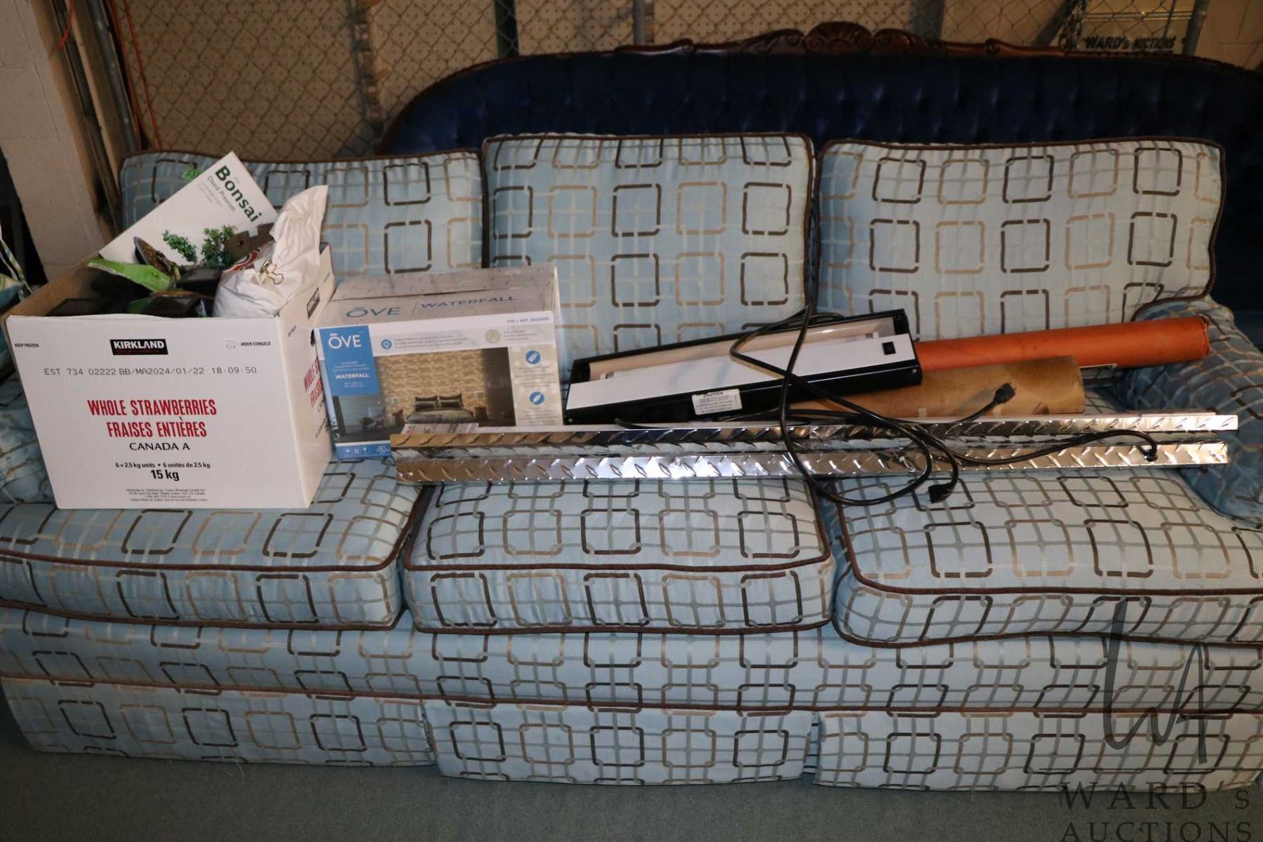 New in box Ove Waterfall string light set plus four battery operated candles and a leather pouch containing Bonsai tree tools plus gravel, dish and handbook plus two florescent lamps, one 4' and one 18" etc. Note: Not available for shipping. Local pickup only