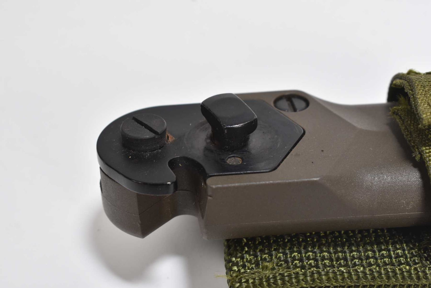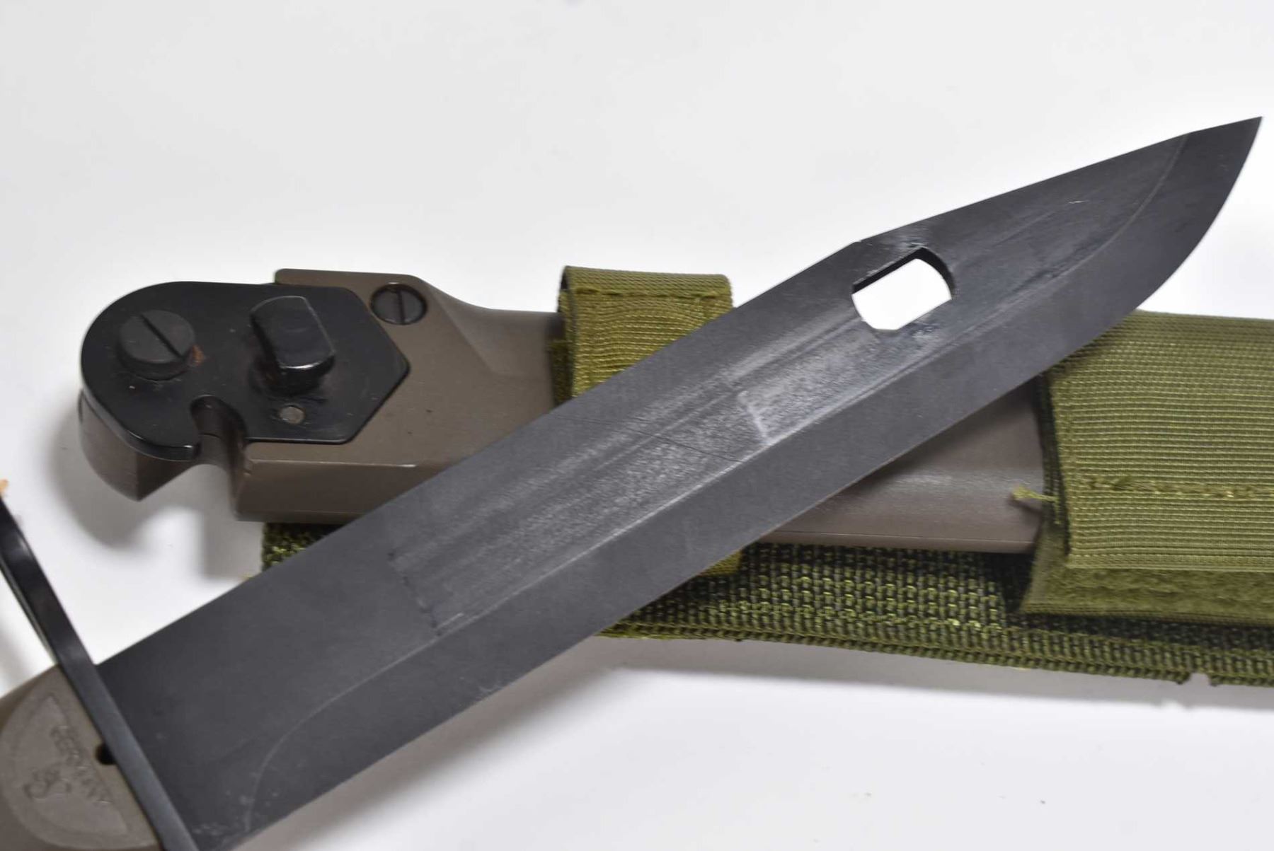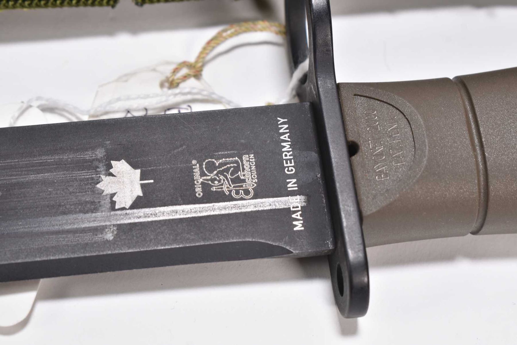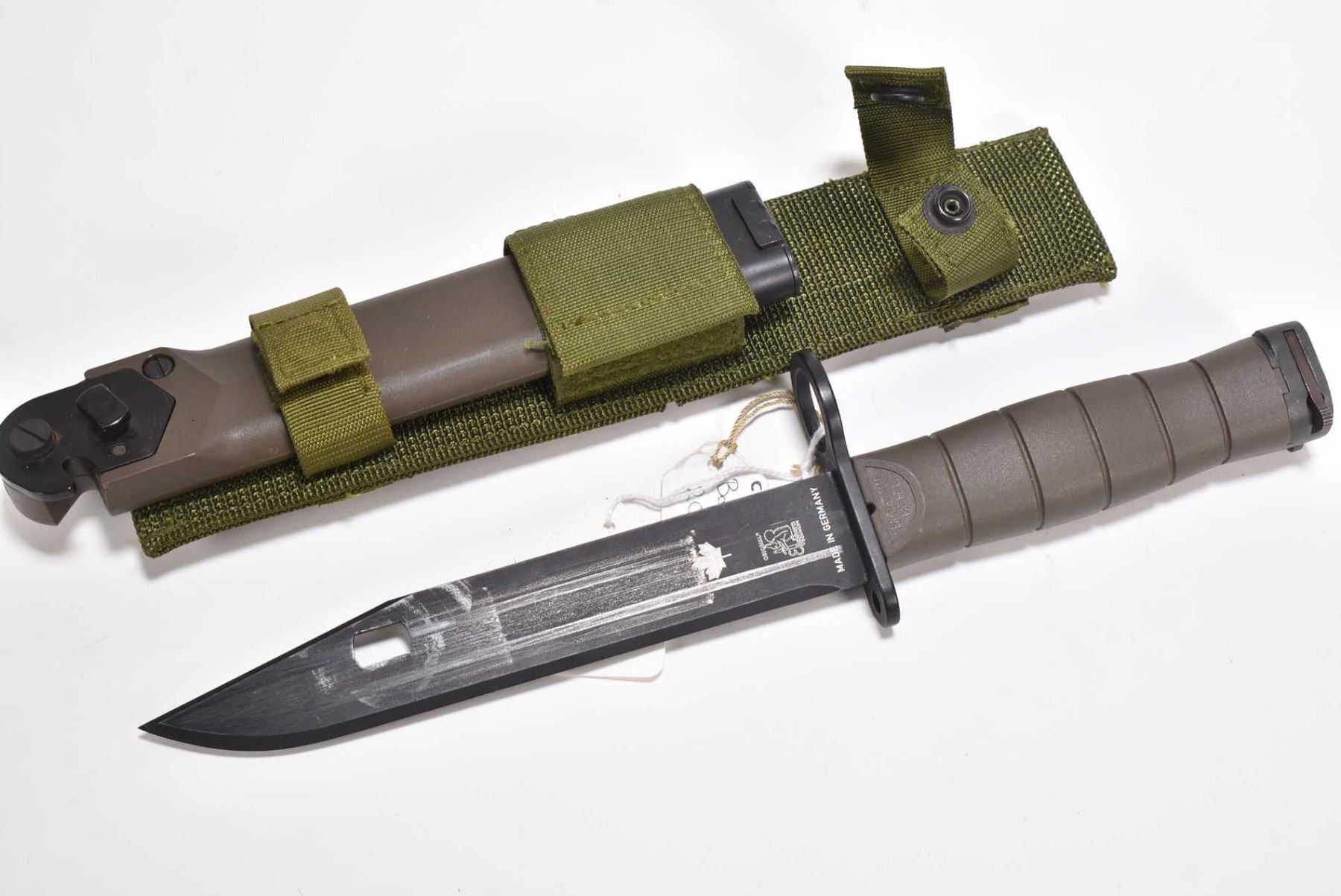 New military surplus bayonet with scabbard labeled by consignor "CF issue 2000" marked on blade "Made in Germany Original Eickhorn Solingen"