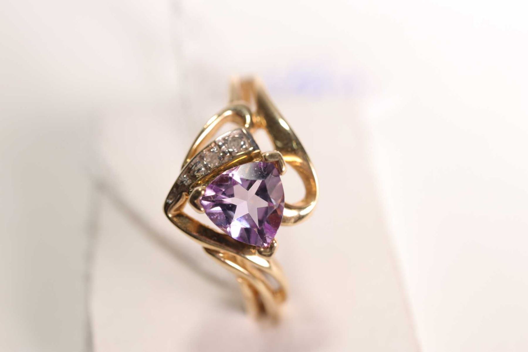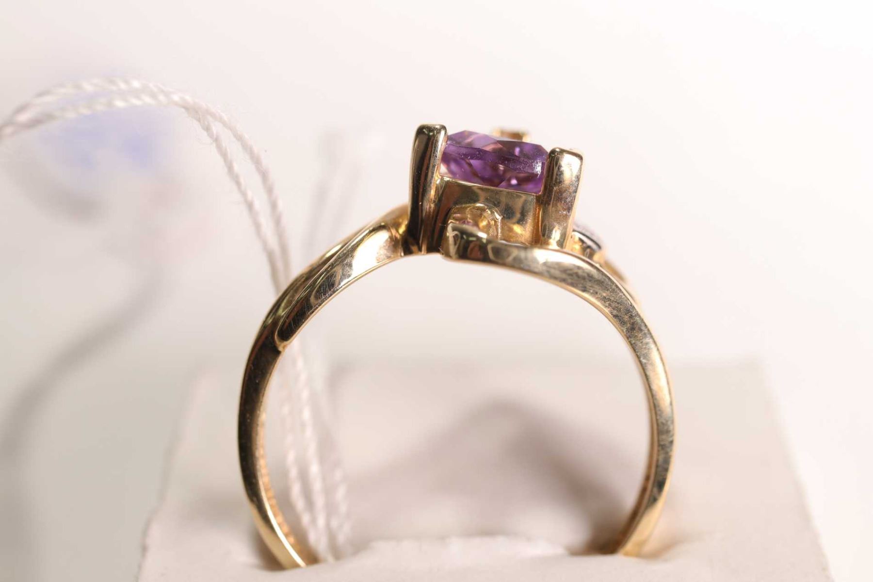 New old stock 10kt yellow gold, amethyst and diamond ring