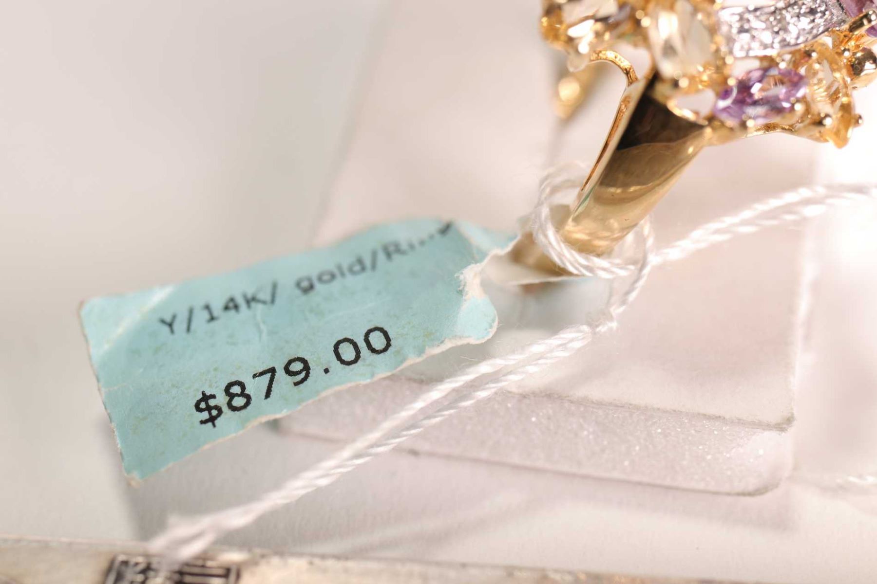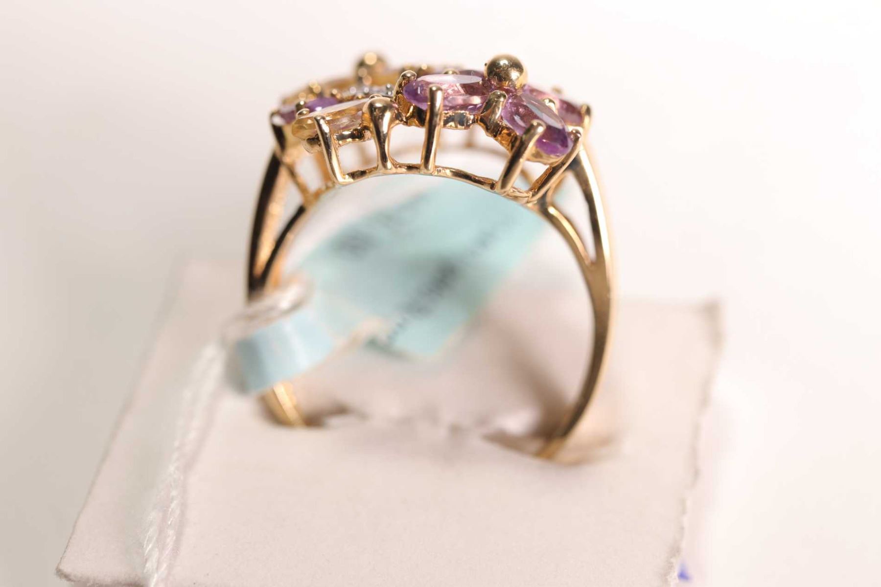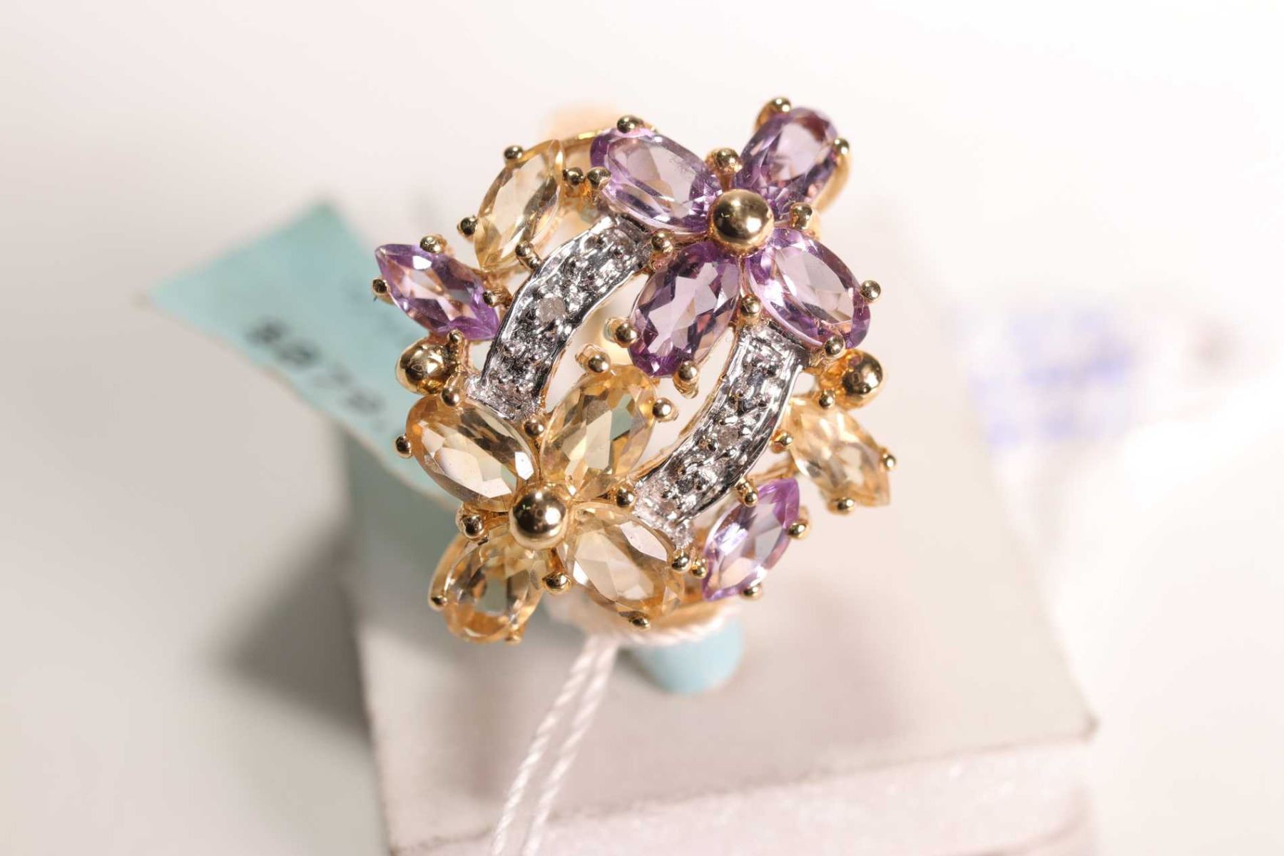 New old stock 14kt amethyst, citrine and diamond gemstone ring
