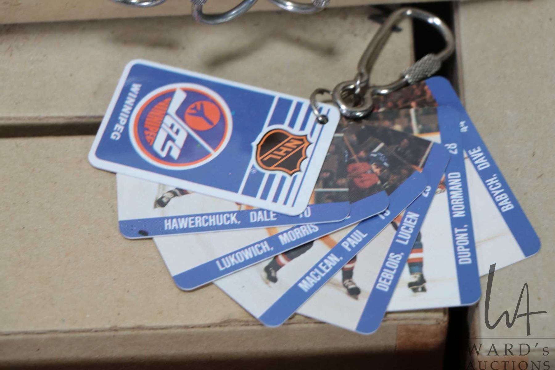 New old stock NHL (NHLPA) key chains circa 1983 including four package of 60 Winnipeg Jets and four