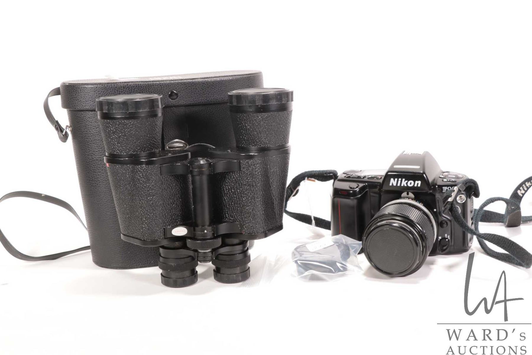Nikon F90 camera, serial no. 2164623 and a pair of Hoya binoculars Field 7X50