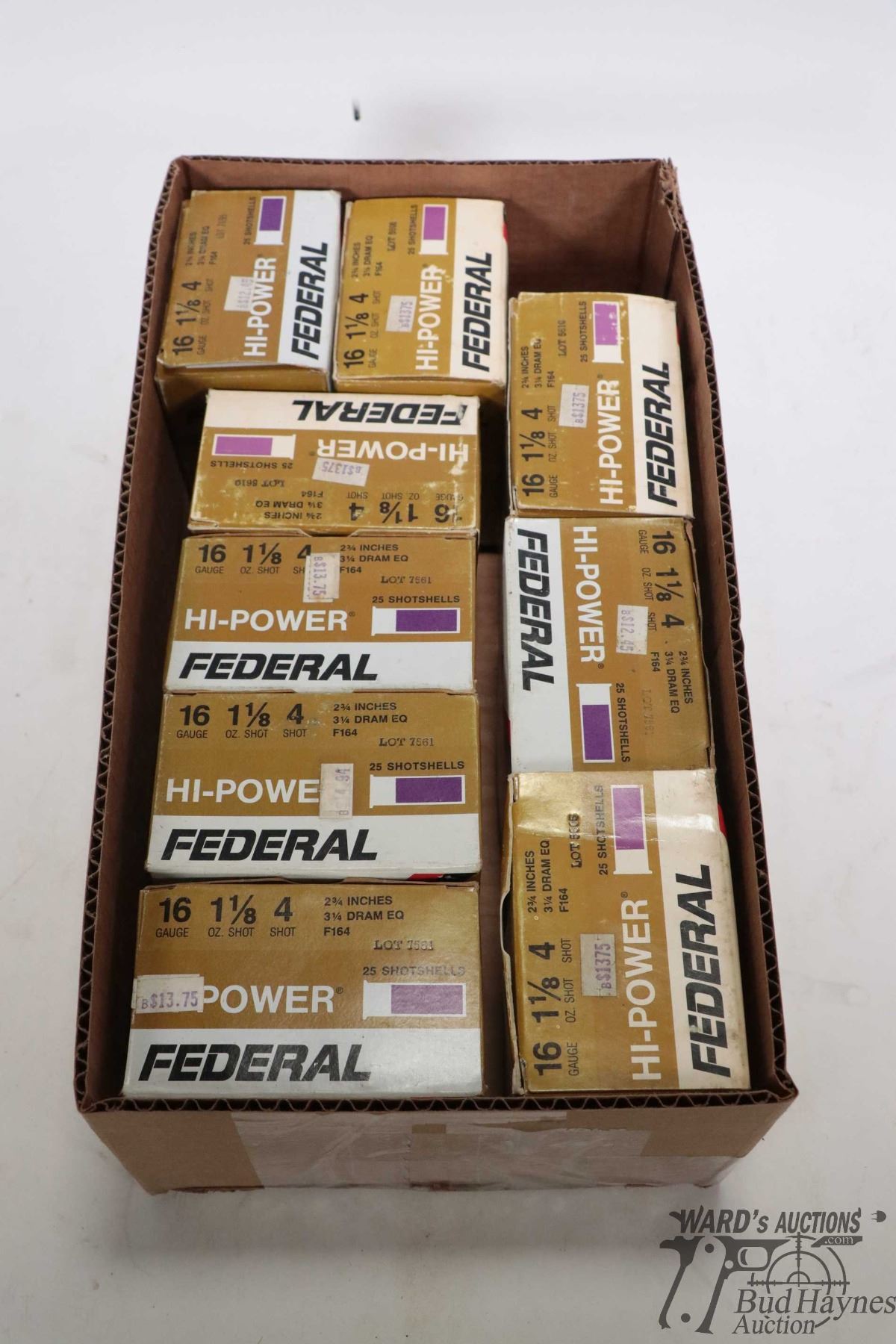 Nine 25 count boxes of Federal 16 gauge #4 shot shells