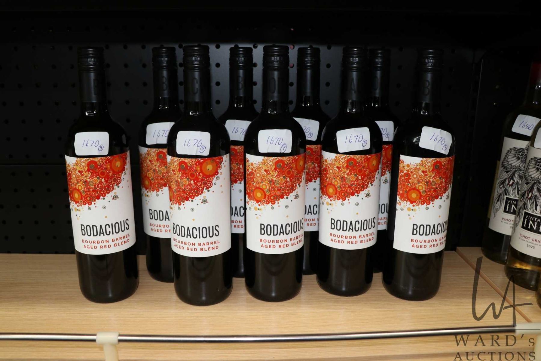 Nine bottles of Bodacious Bourbon Barrel Aged Red Blend / 750ml / 12.0% ABV Note: Alcohol cannot be insured by any courier in Canada. Local pick up is recommended. Canadian bidders only