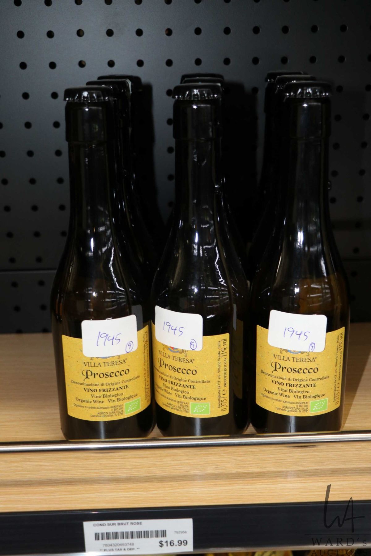 Nine bottles of Villa Teresa Prosecco organic wine 375ml / 11% ABV Note: Alcohol cannot be insured by any courier in Canada. Local pick up is recommended. Canadian bidders only