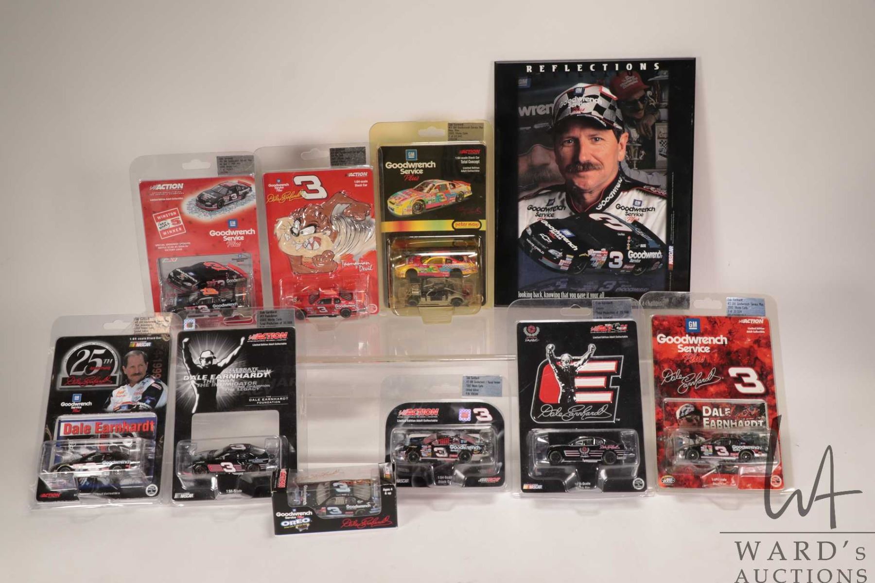 Nine limited edition Action 1: 64 scale Dale Earnhardt collectible cars and a photograph plaque