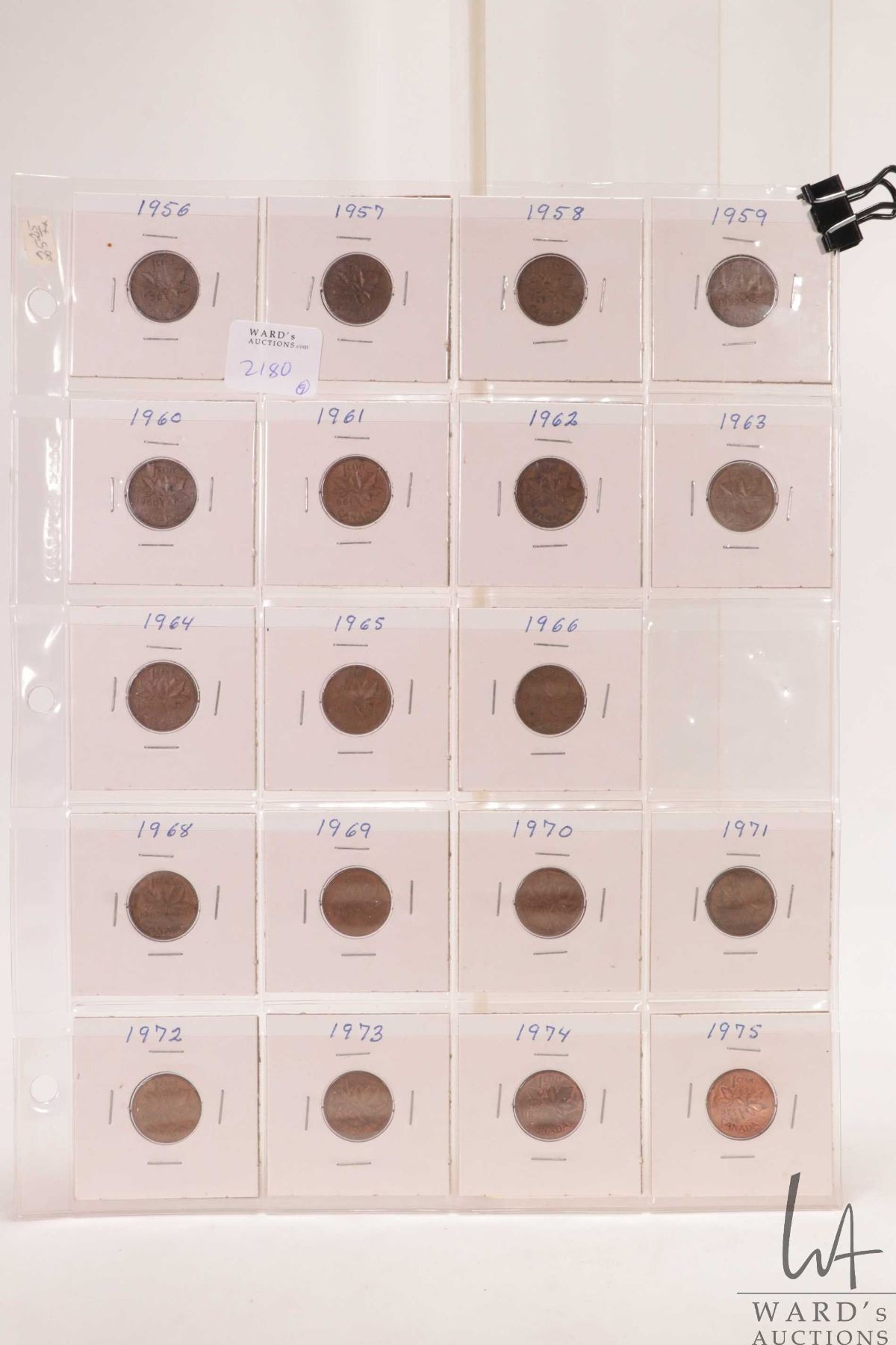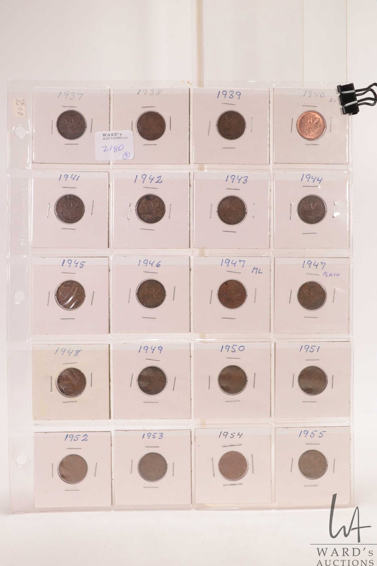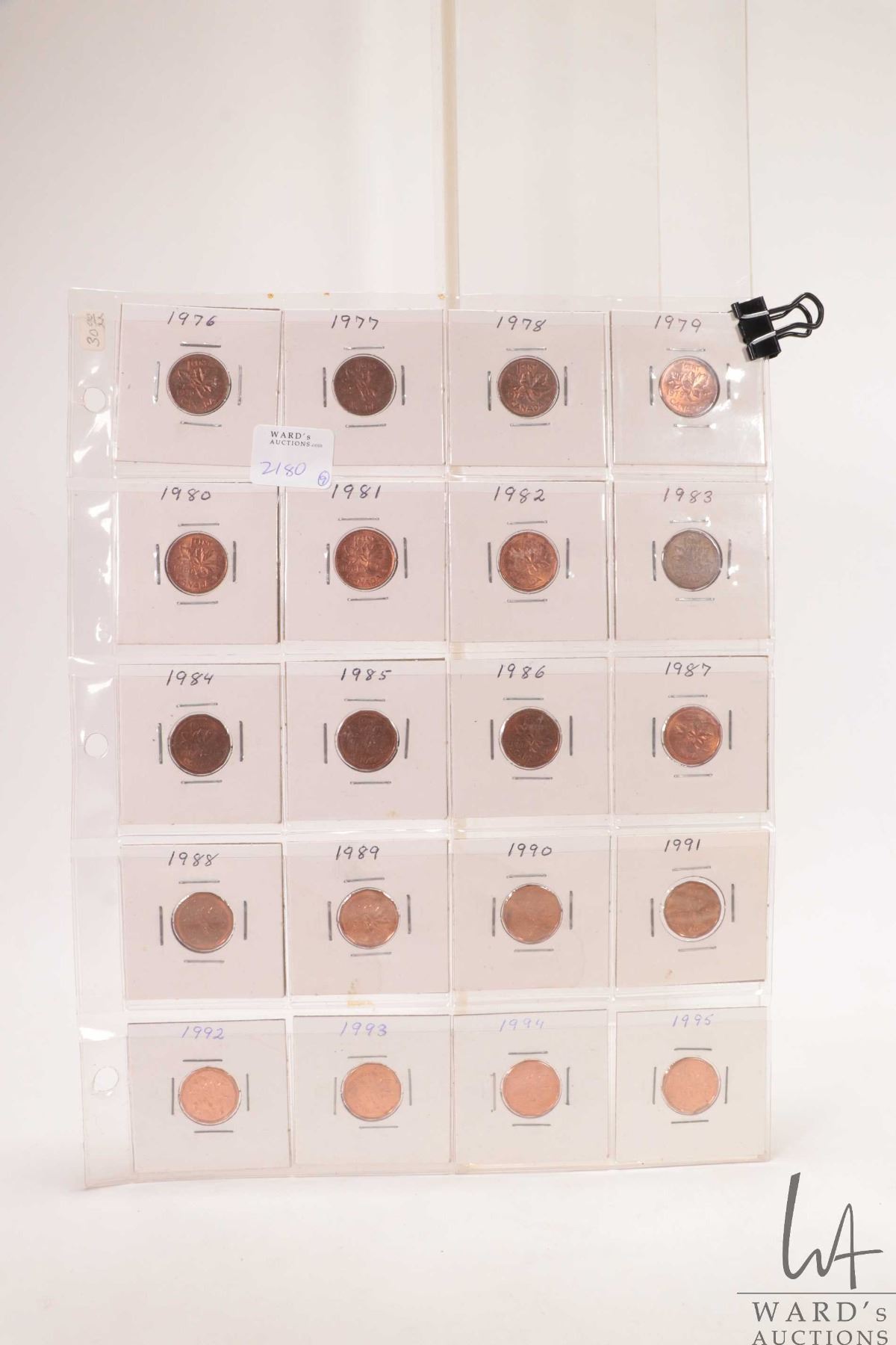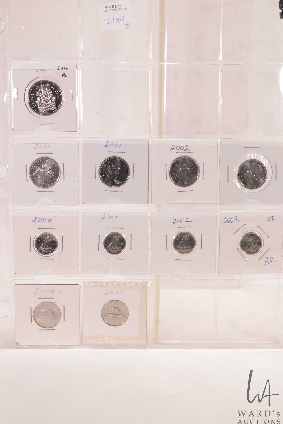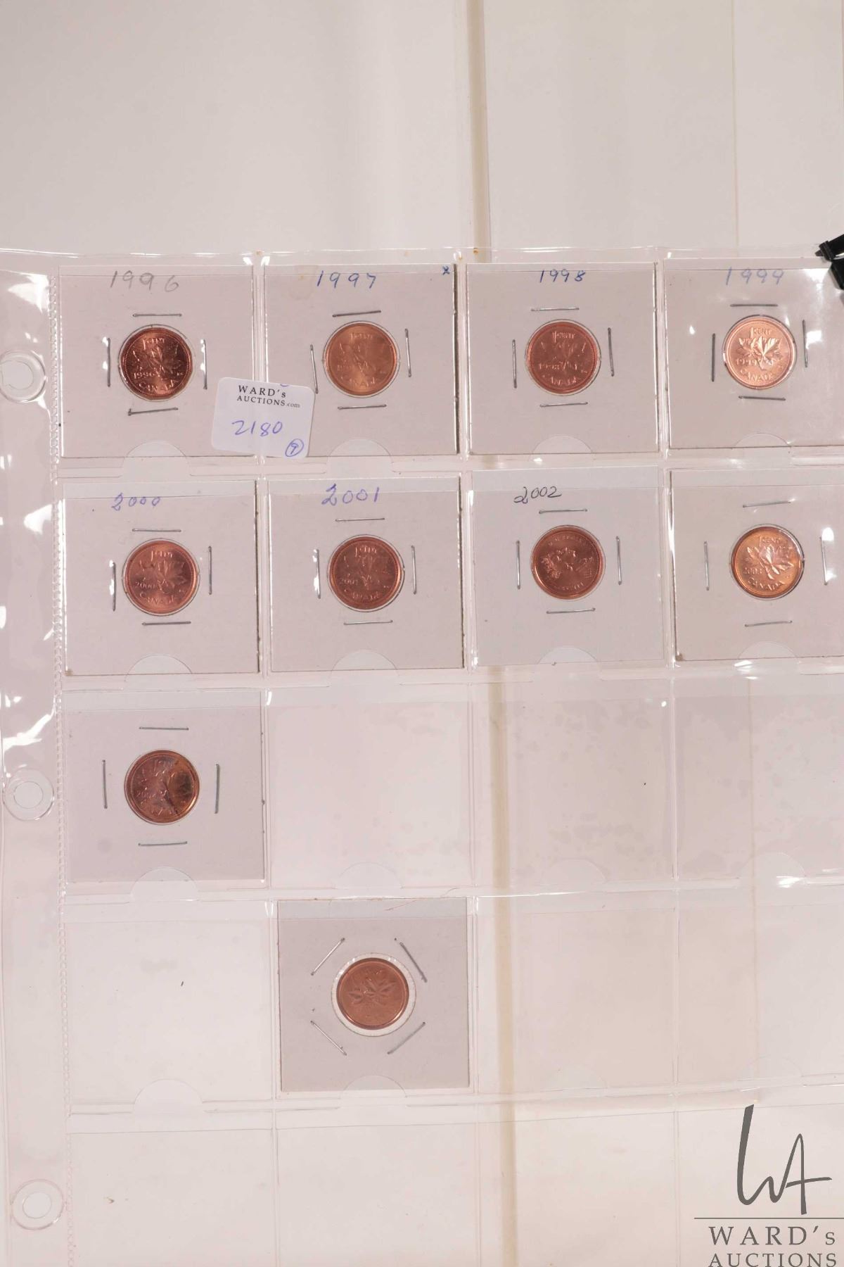 Nine sheets of Canadian coins including specialty quarters, selection of pennies, early loonies and twoonies etc. various dates