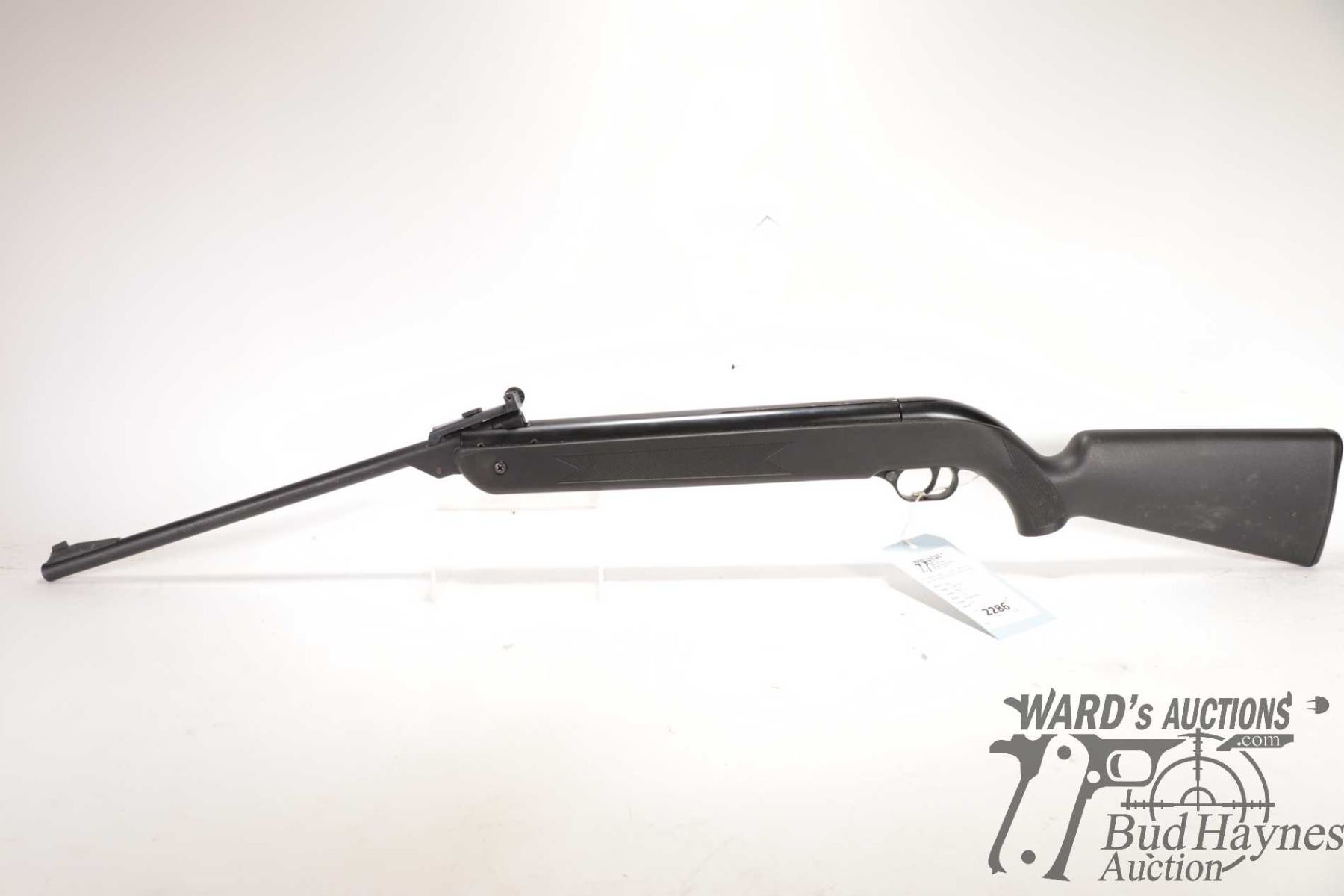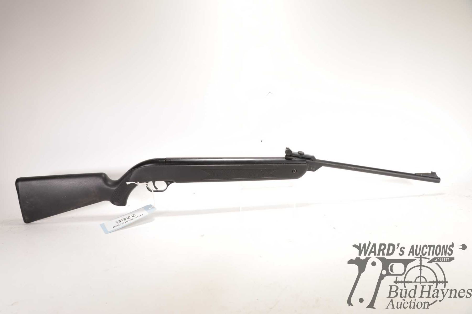 Non-Restricted air rifle Crosman model 795, .177 Single shot hinge break, w/ bbl length 16" [Matte black finish. Fixed front and adjustable rear sights. Black synthetic stock. Mechanically needs work. Clip that hold barrel in alignment is broken. Wear in use and handling areas and other use, handling and storage marks.] serial # 898903254, PAL required