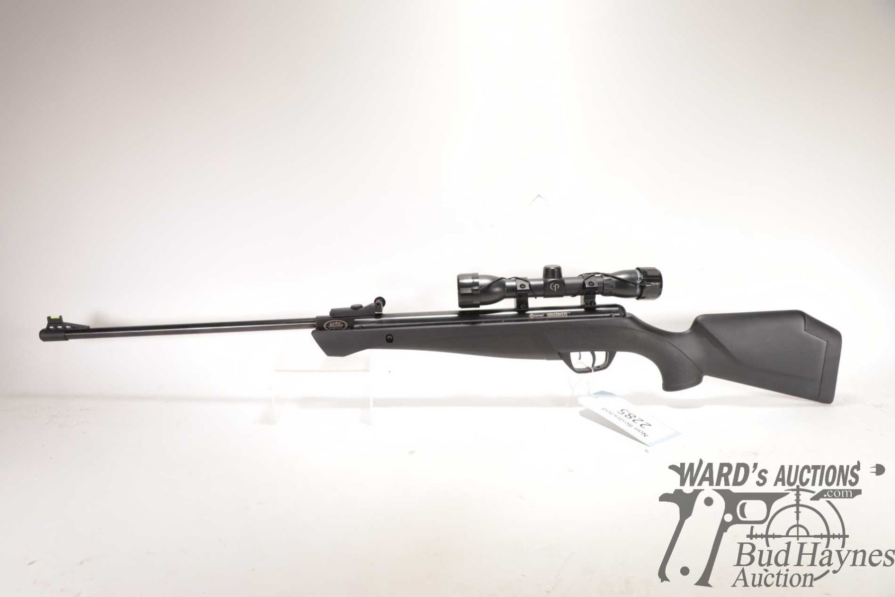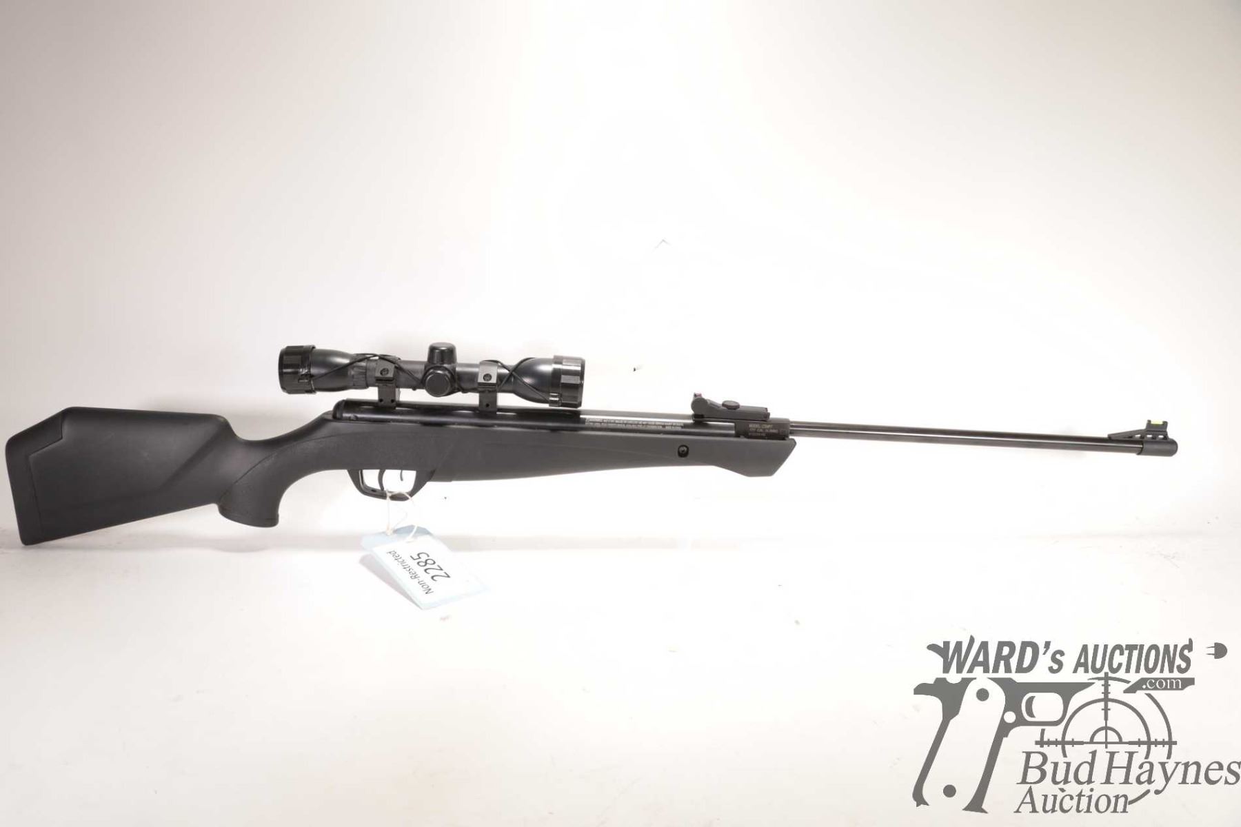 Non-Restricted air rifle Crosman model Shotwave, .177 cal Single shot hinge break, w/ bbl length 18 1/2" [Blued finish. Fixed front and adjustable rear sights, both with fiber optic inserts. Fitted with Center Point 4X32 scope. Black synthetic stock with recoil pad. Mechanically and aesthetically appear near excellent with only minor use, handling and storage marks.] serial # N16X04149, PAL required