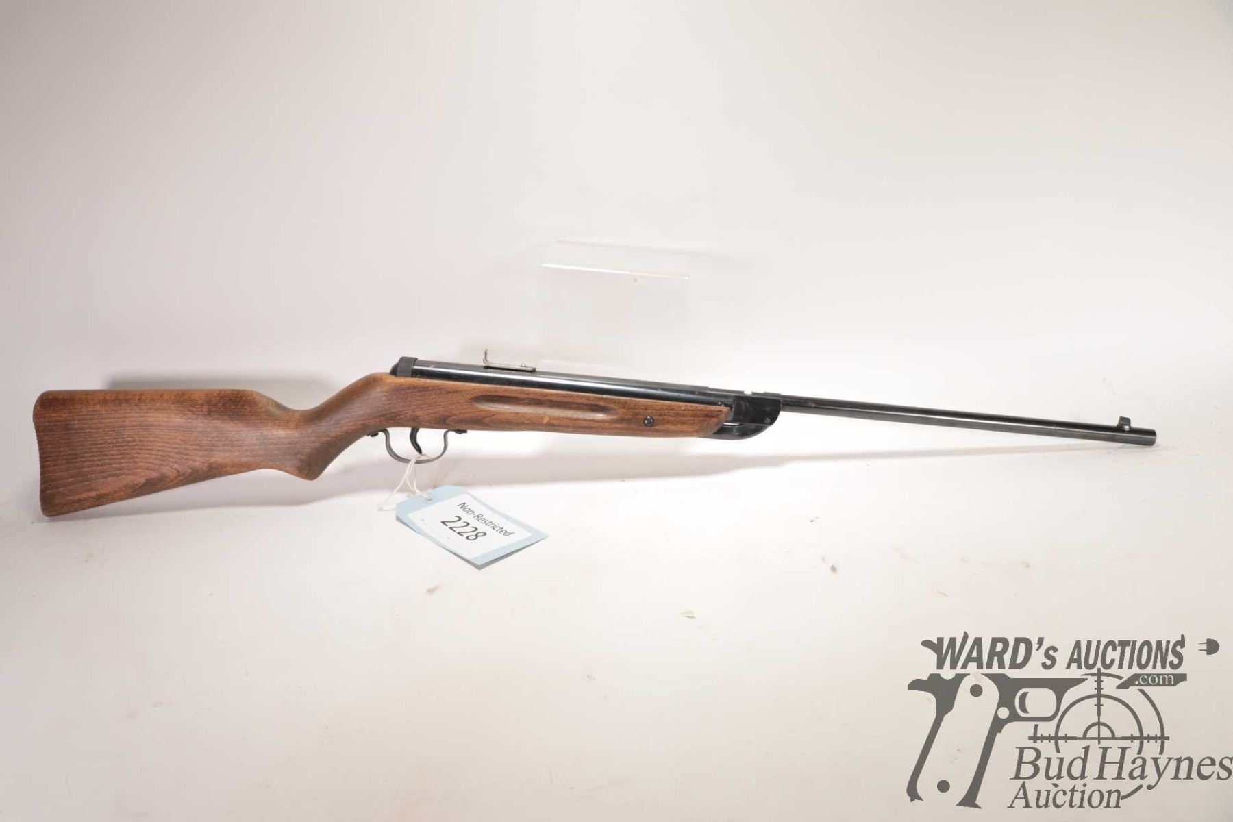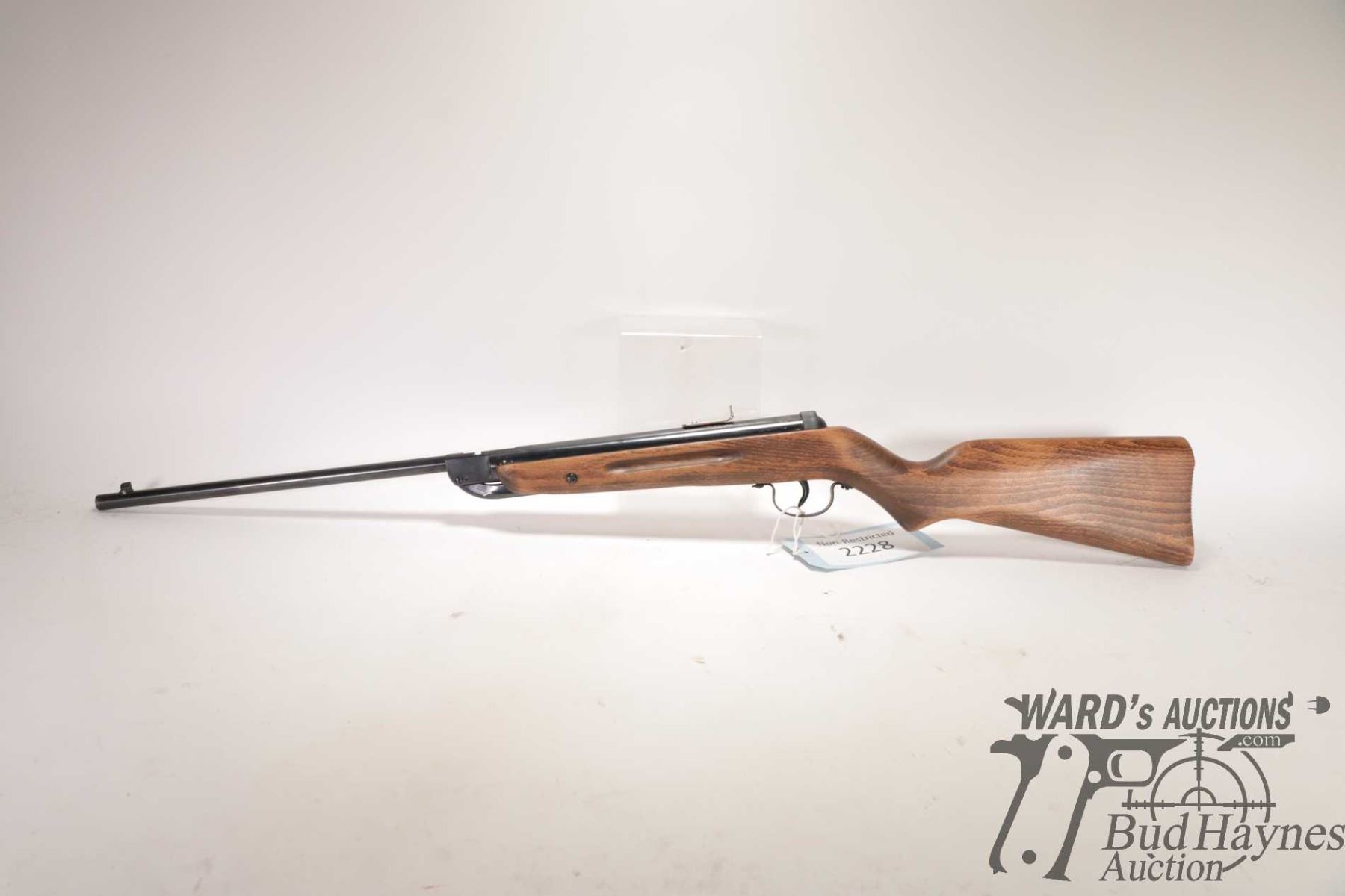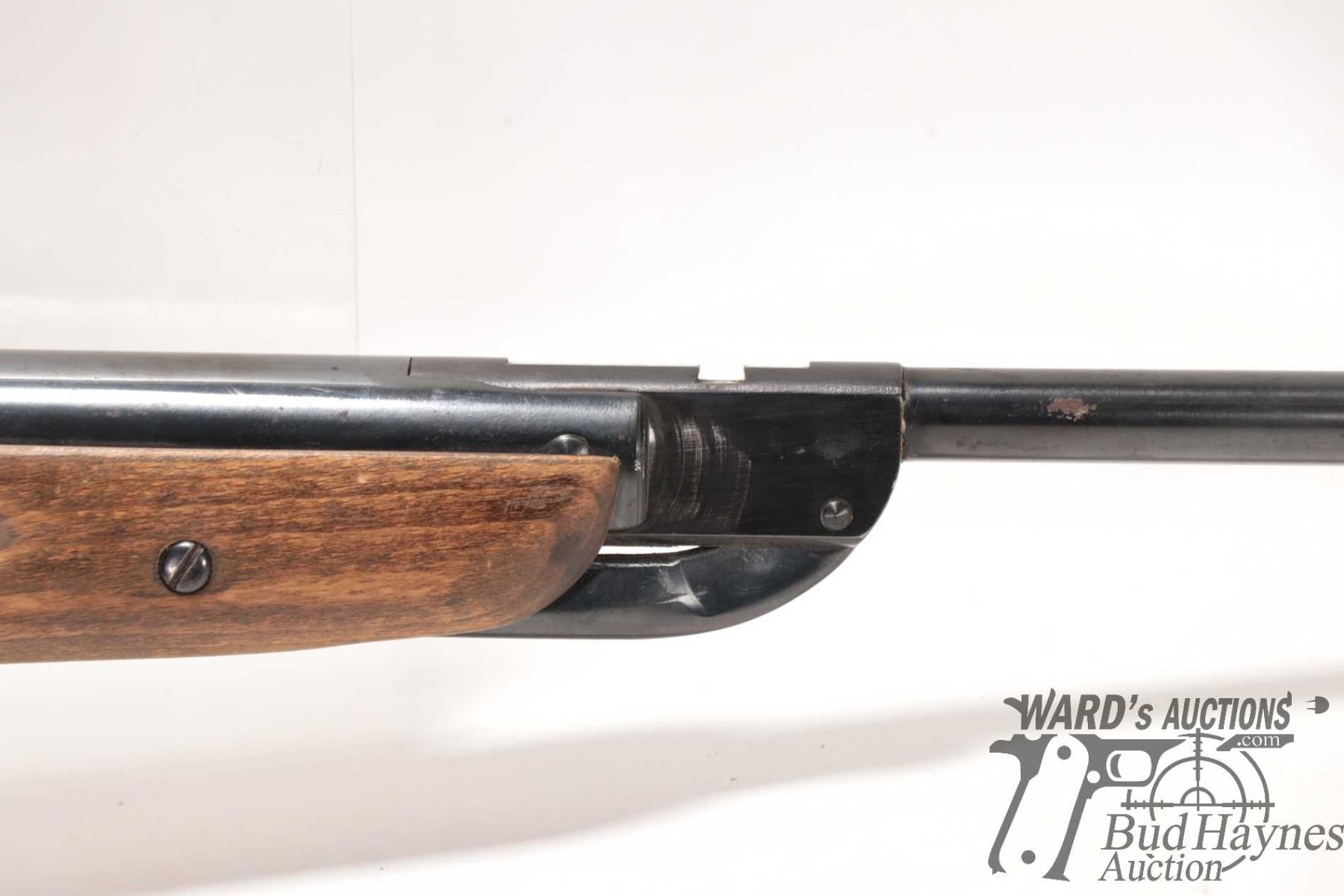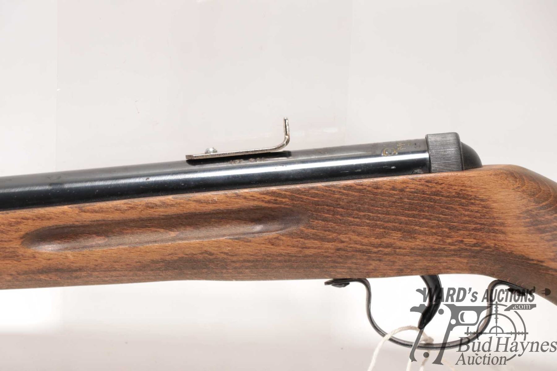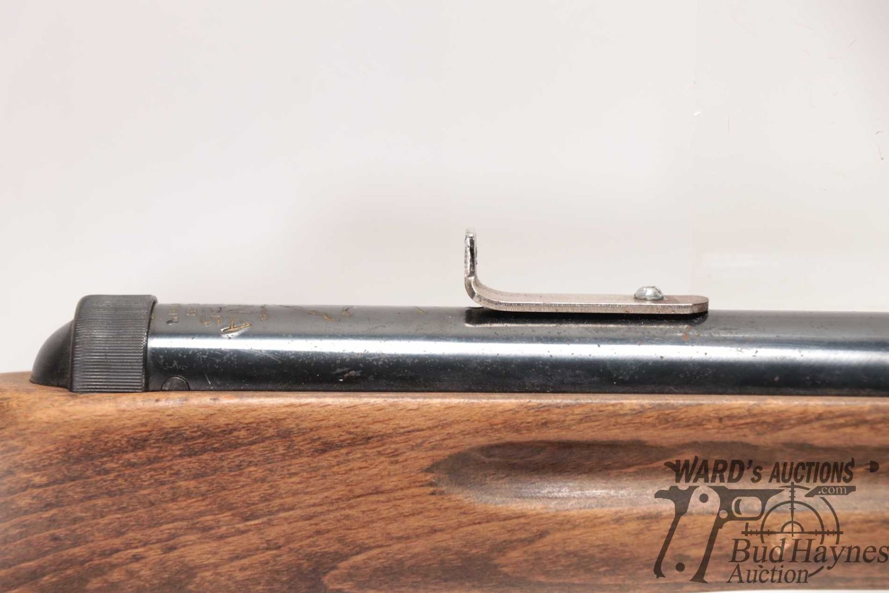 Non-Restricted air rifle Diana model 25, .177 cal Single shot hinge break, w/ bbl length 16" [Blued finish. Fixed front sight. Original rear sight is missing and fitted with shop made rear peep sight. Smooth wooden stock with integral butt plate. Mechanically appears to function reasonably well. Use, handling and storage marks on wood and metal.] serial # 253188, PAL required