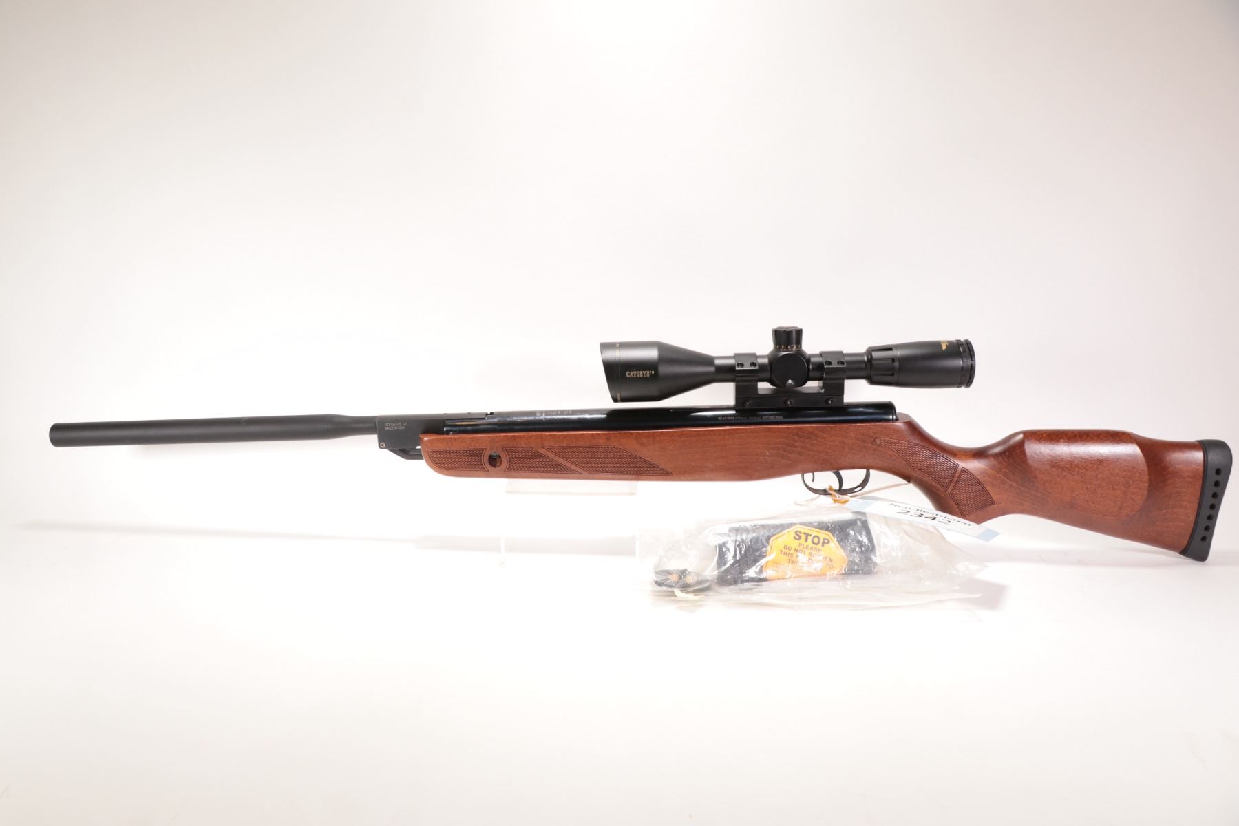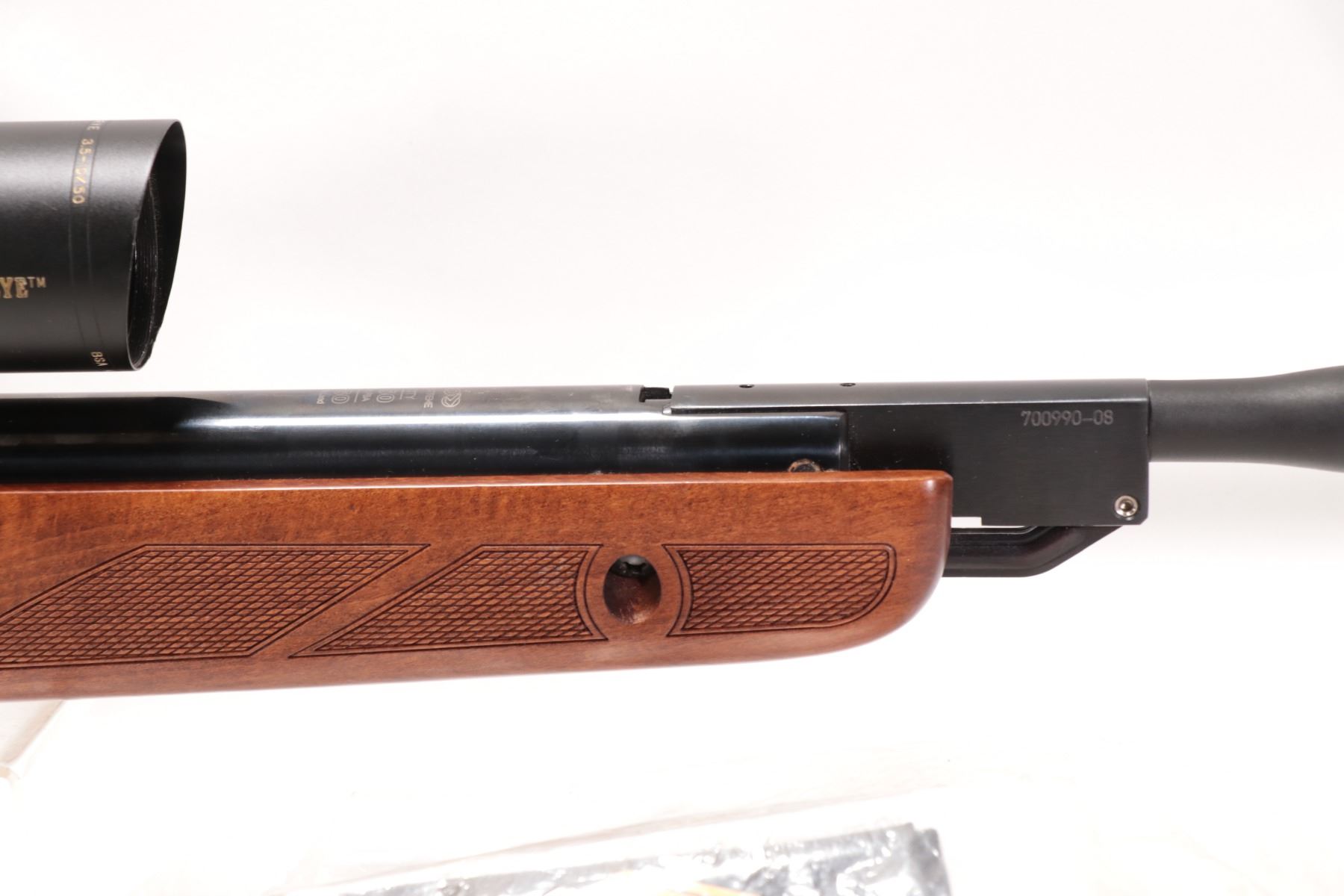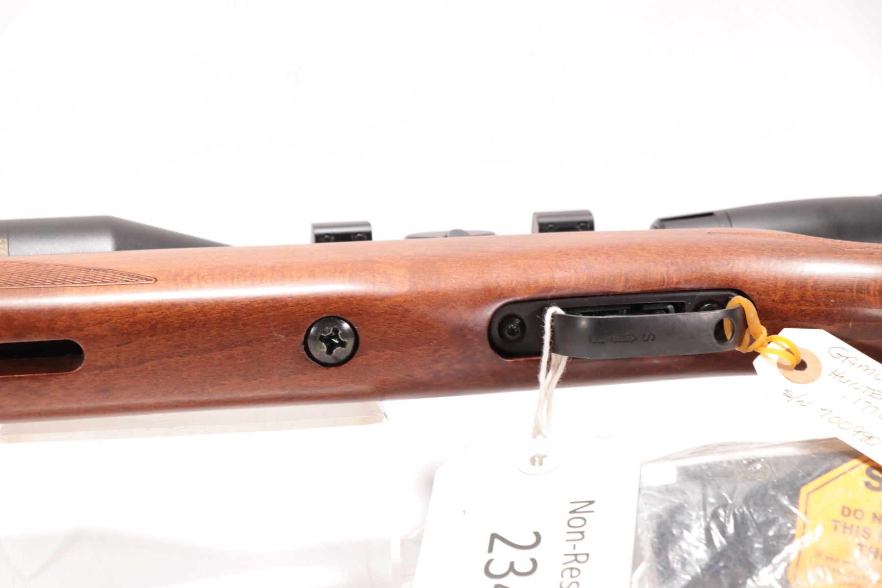 Non-Restricted air rifle Gamo model Hunter Extreme, .177 cal (1650 FPS) Single shot hinge break, w/ bbl length 17 12" [Blued style finish. No fixed sights. Fitted with BSA Catseye 3.5-10X50 scope. Includes original manual. Wooden stock with recoil pad. Advertised at 1650 fps with Gamo PBA non-lead hunting pellet and 1250 fps with traditional lead pellet. Mechanically and aesthetically appear near excellent with only minor use, handling and storage marks.] serial # 70099008, PAL required