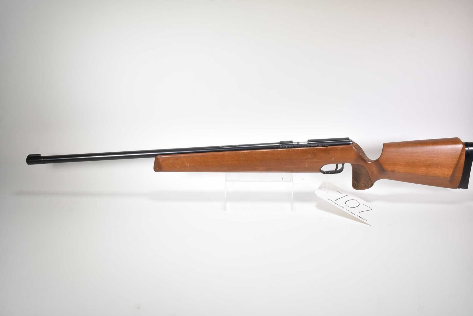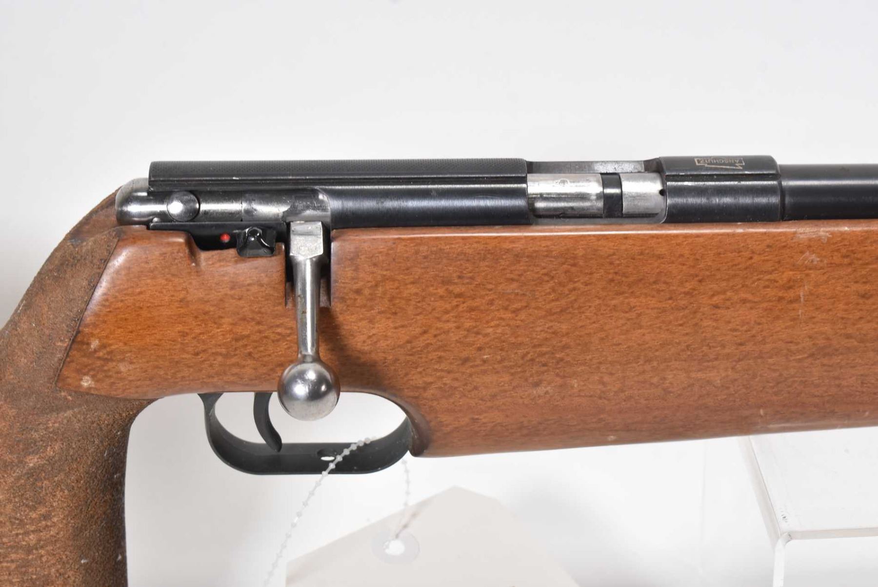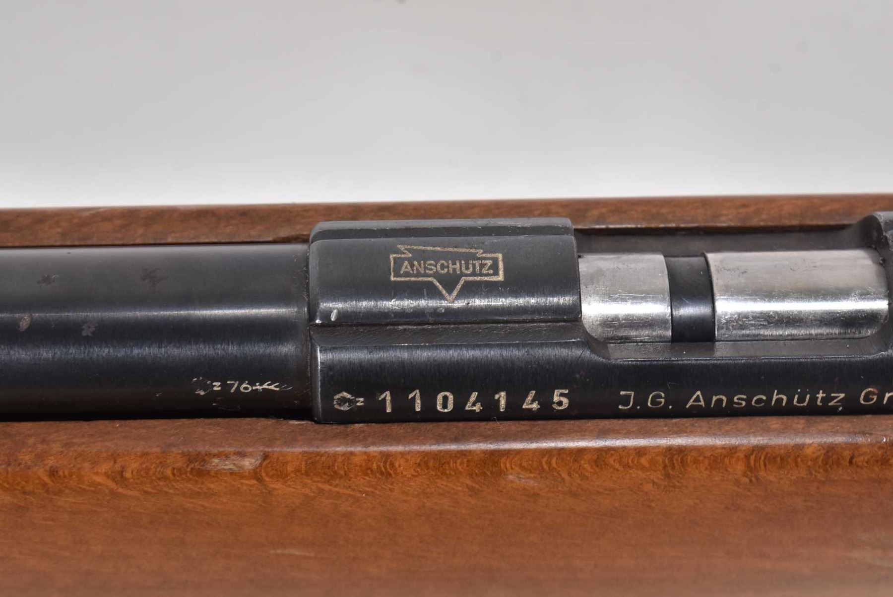 Non-Restricted rifle Anschutz model Match 64, .22 LR single shot bolt action, w/ bbl length 26" [Blued barrel and receiver, no sights, wooden target grip with checkered butt plate. Use handling and storage marks on wood and metal.] serial # 1104145, PAL required