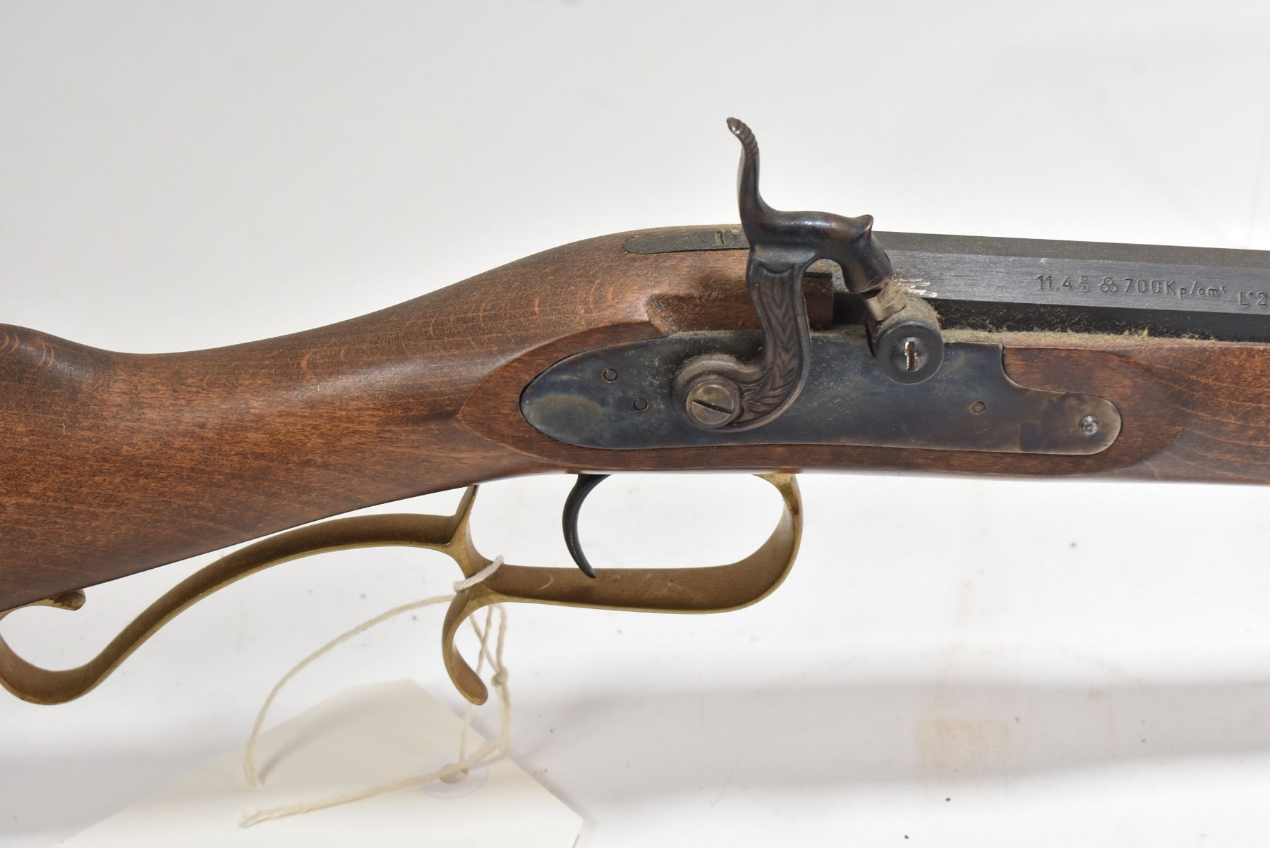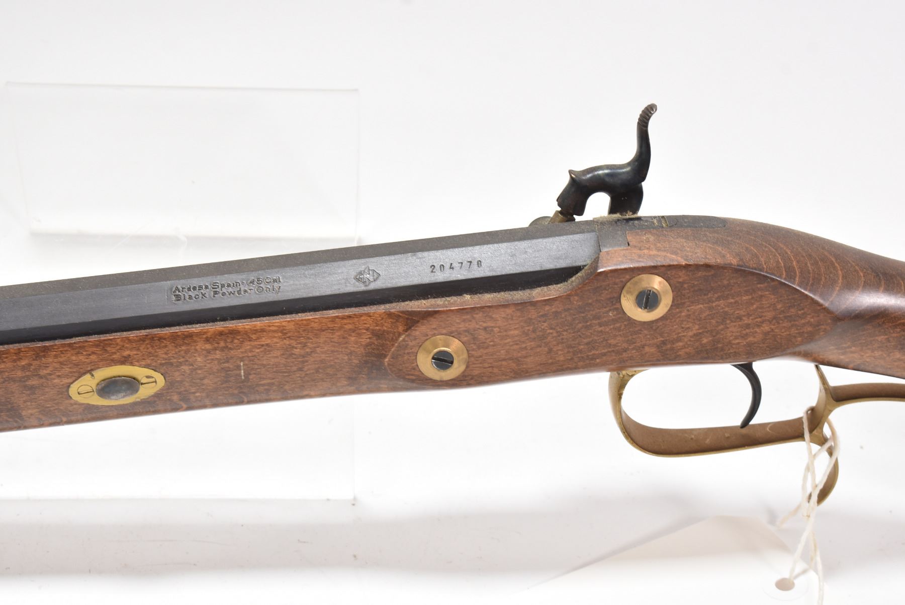 Non-Restricted rifle Ardesa model Ranger, .45 single shot percussion, w/ bbl length 27" [Blued octagonal barrel, fixed front and rear sights. Smooth wooden stock with brass butt plate, trigger guard and other furniture. Wooden ram rod with brass tips. Case hardened block. Does not appear to have had a lot of use with minor, use, handling and storage marks.] serial # 204770, PAL required