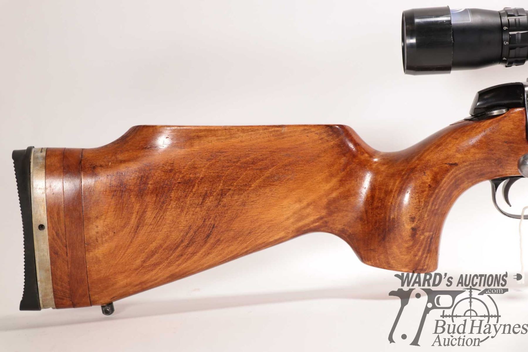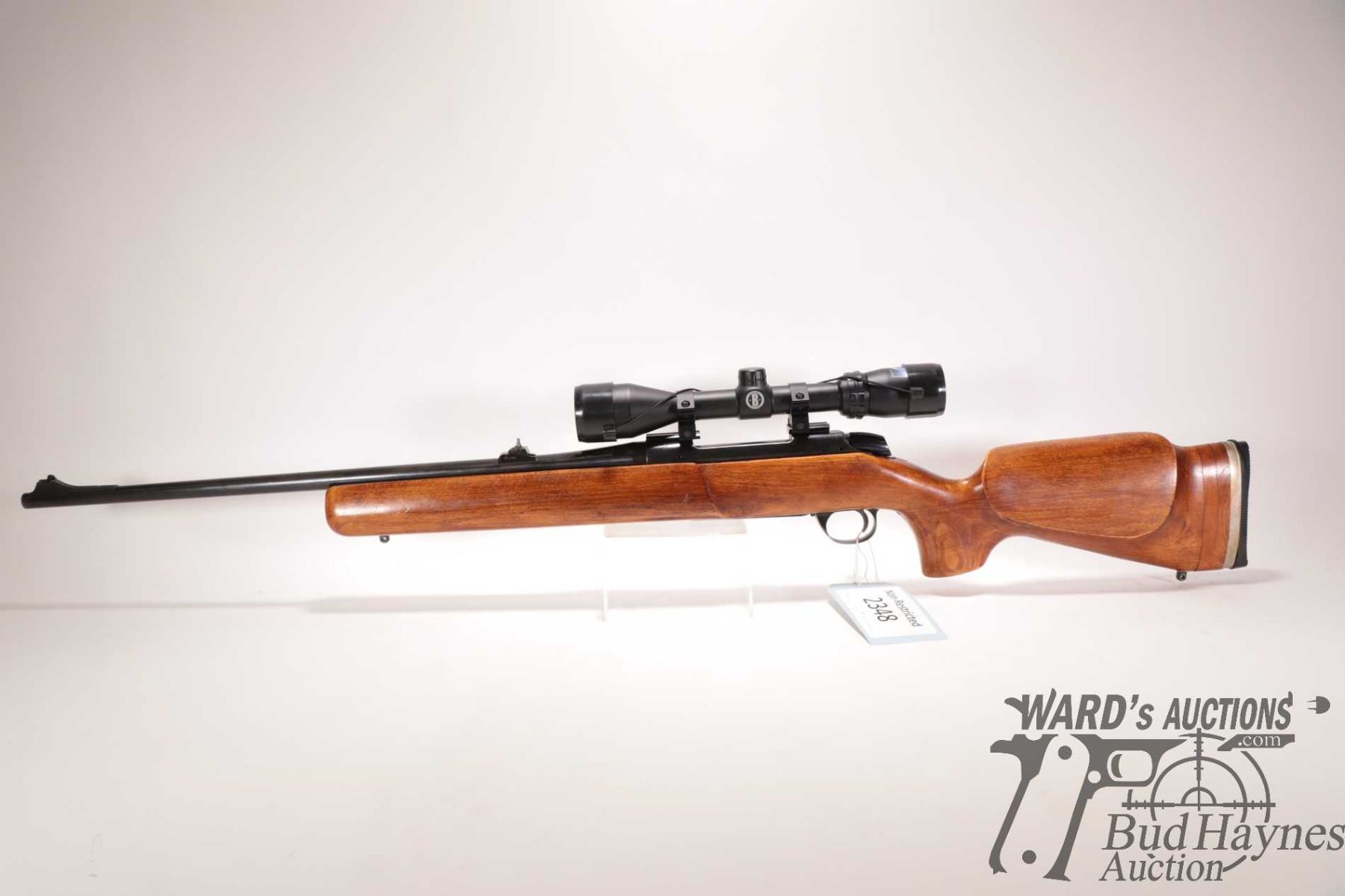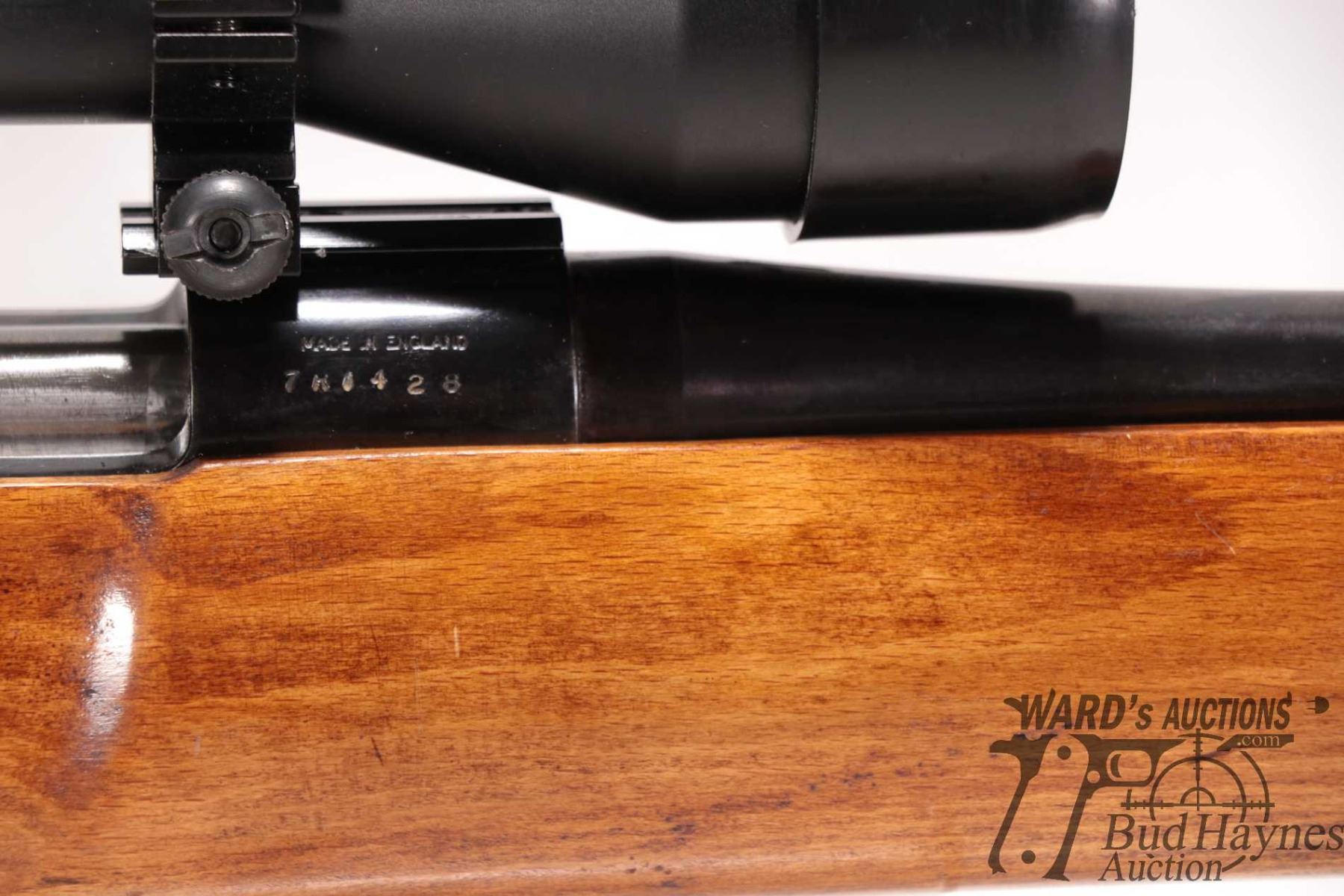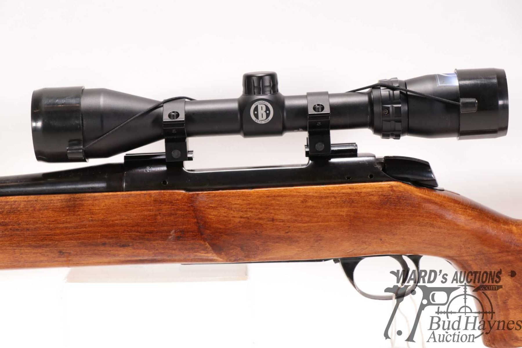 Non-Restricted rifle BSA .30-06 bolt action, w/ bbl length 23 1/2" [Blued barrel and receiver. Fixed front and Williams adjustable rear sight with non-original insert. Fitted with Bushnell Banner 4-9 scope. Internal box magazine. Smooth target style stock with removable inserts and adjustable branded recoil pad. Barrel marked BSA Guns Ltd. England. Mechanically appears to function reasonably well. Bluing worn in use and handling areas and other use, handling and storage marks.] serial # 7R1428, PAL required
