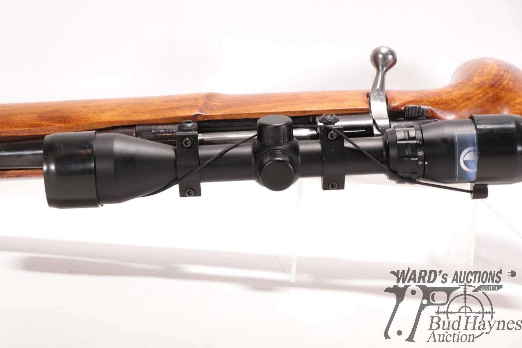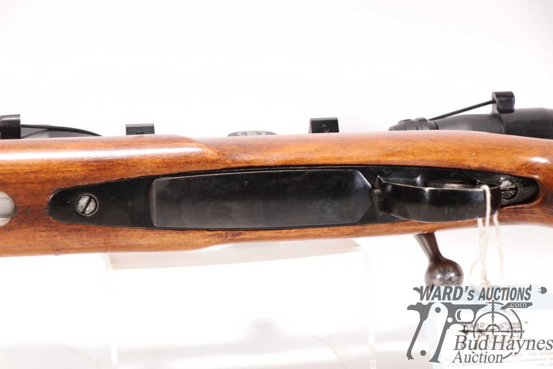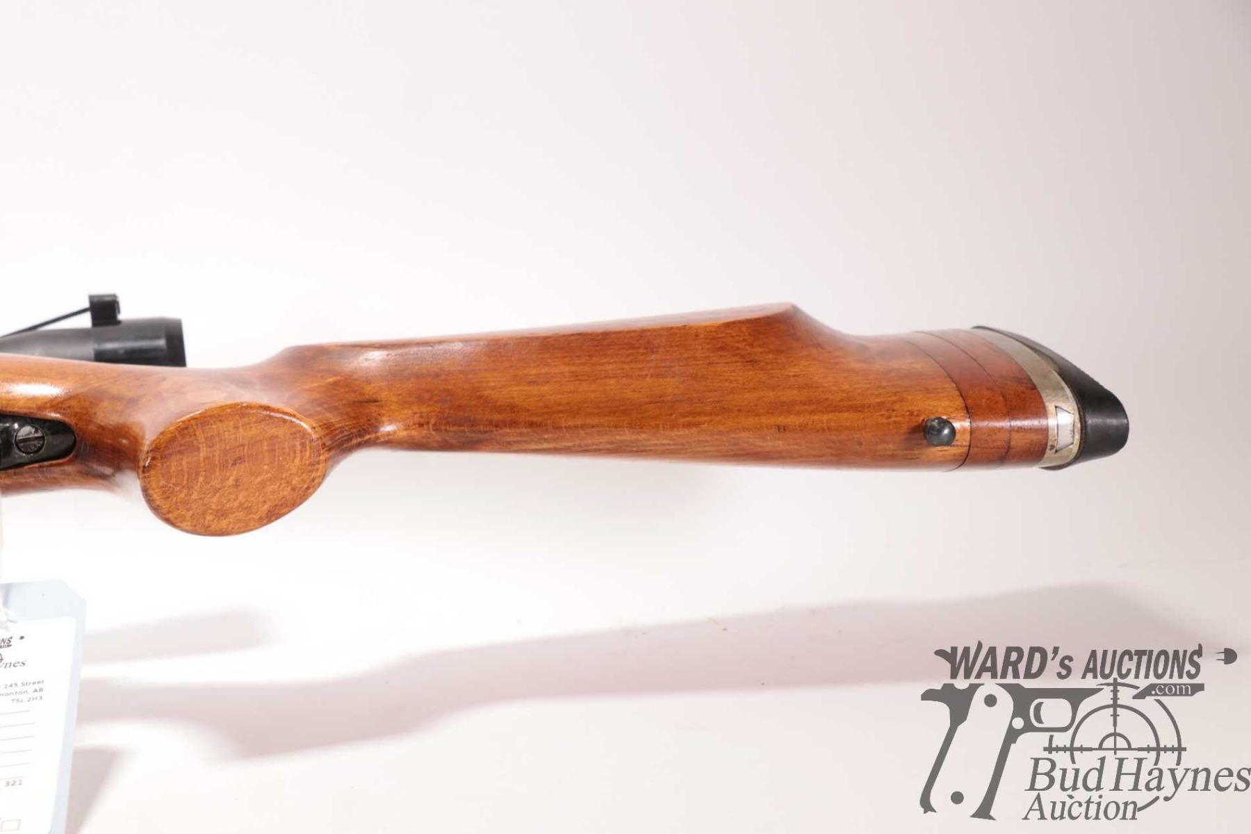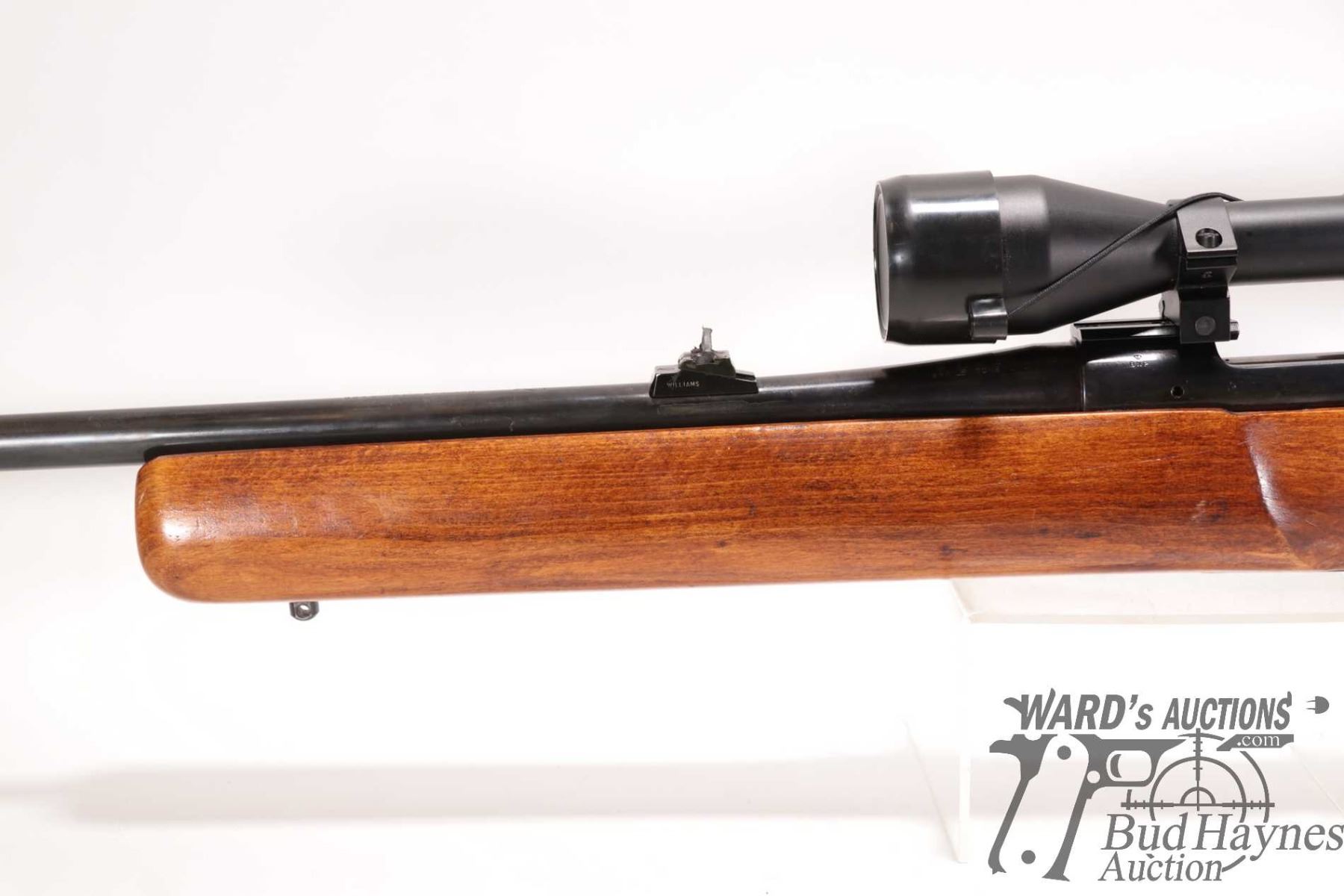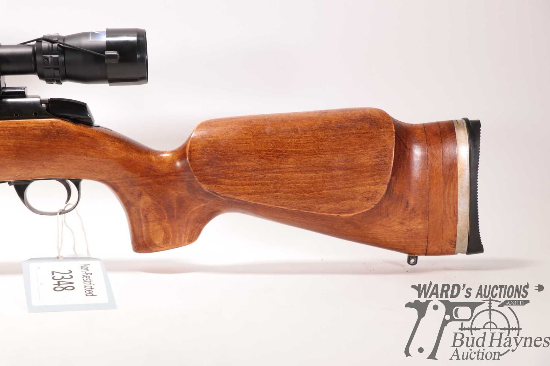 Non-Restricted rifle BSA .30-06 bolt action, w/ bbl length 23 1/2" [Blued barrel and receiver. Fixed front and Williams adjustable rear sight with non-original insert. Fitted with Bushnell Banner 4-9 scope. Internal box magazine. Smooth target style stock with removable inserts and adjustable branded recoil pad. Barrel marked BSA Guns Ltd. England. Mechanically appears to function reasonably well. Bluing worn in use and handling areas and other use, handling and storage marks.] serial # 7R1428, PAL required