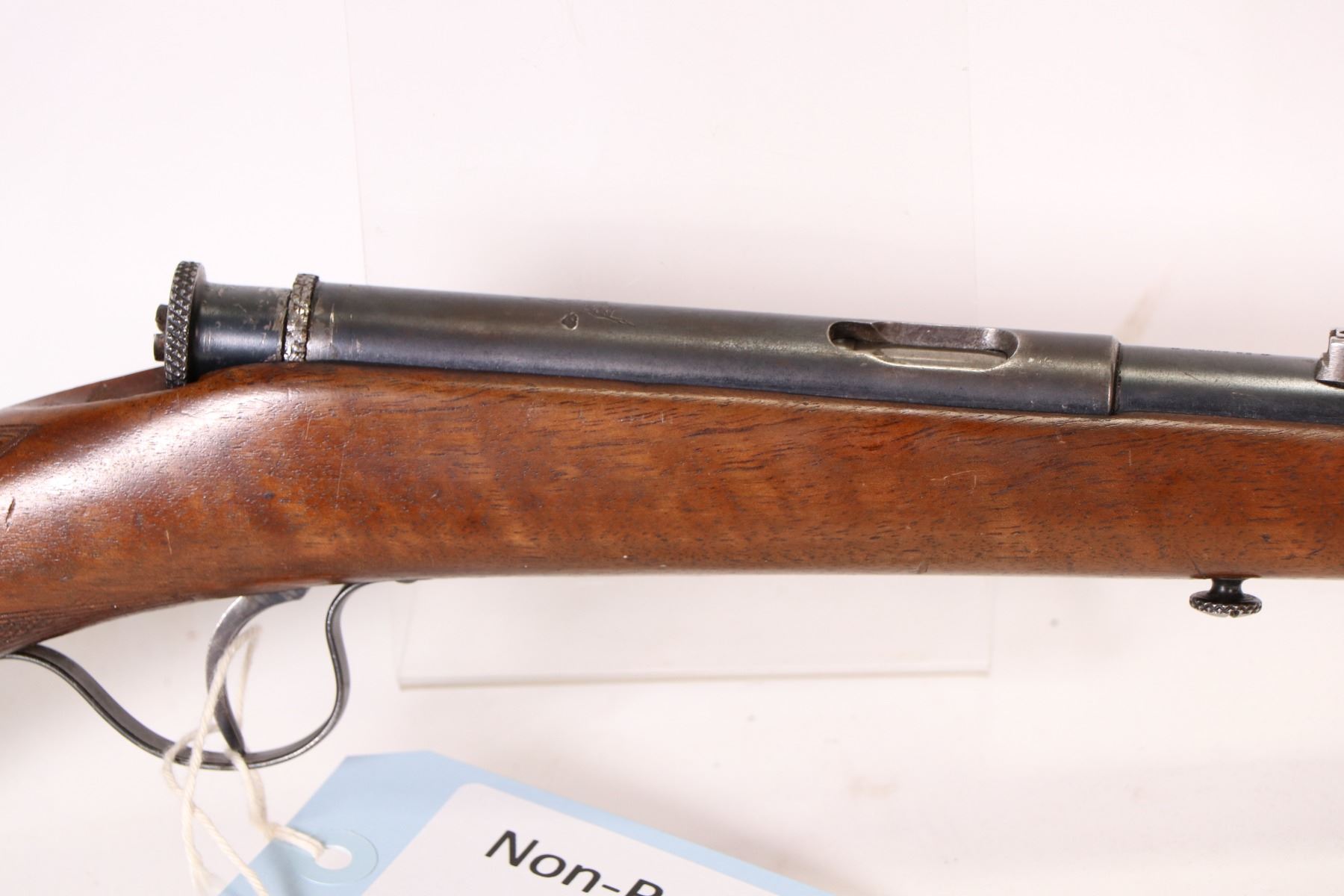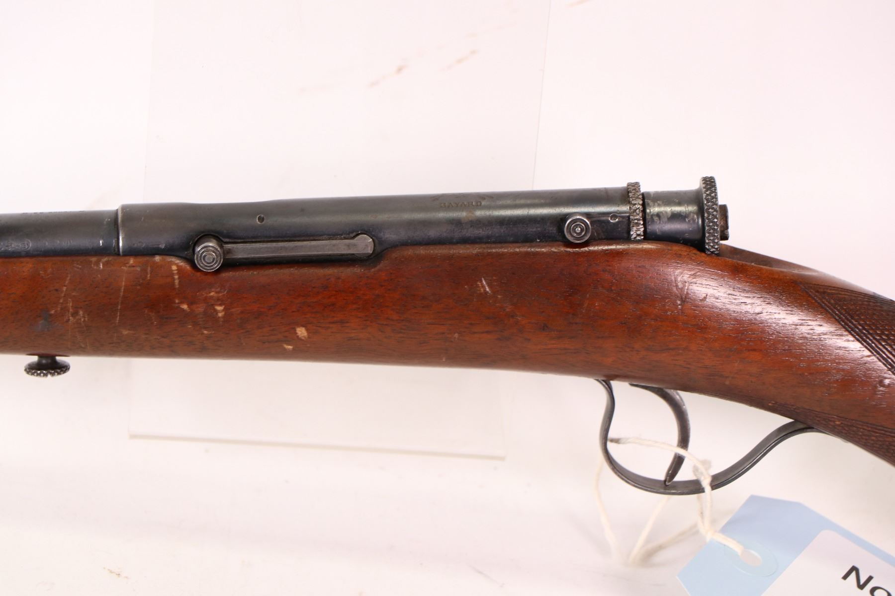 Non-Restricted rifle Bayard .22 short single shot w/ bbl length 19" [Blued barrel and receiver. Fixed front and rear sights. One piece walnut stock with checkered semi pistol grip. Fitted with sling mounts but rear ring is missing. Markings include Patent January 12, 1909, Modele Depose. In used condition with use, handling and storage marks on wood and metal.] serial # 8644, PAL required