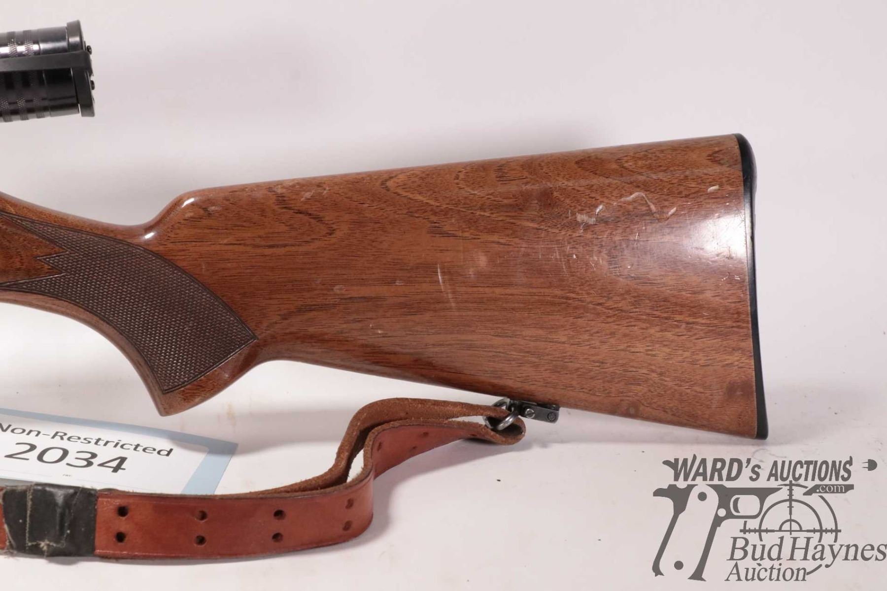 Non-Restricted rifle Browning Belgium model M70, 30-06 semi automatic, w/ bbl length 23" [Blued barrel and receiver. Hooded fixed front sight and adjustable rear. Fitted with Redfield 2X7X wide angle scope. Includes one detachable box magazine and leather sling. Checkered wooden stock with branded plastic butt plate. Mechanically appears to function well. Bluing worn in use and handling areas. Some deep storage and handling gouges in wood and other use. handling and storage marks.] serial # 51931, PAL required