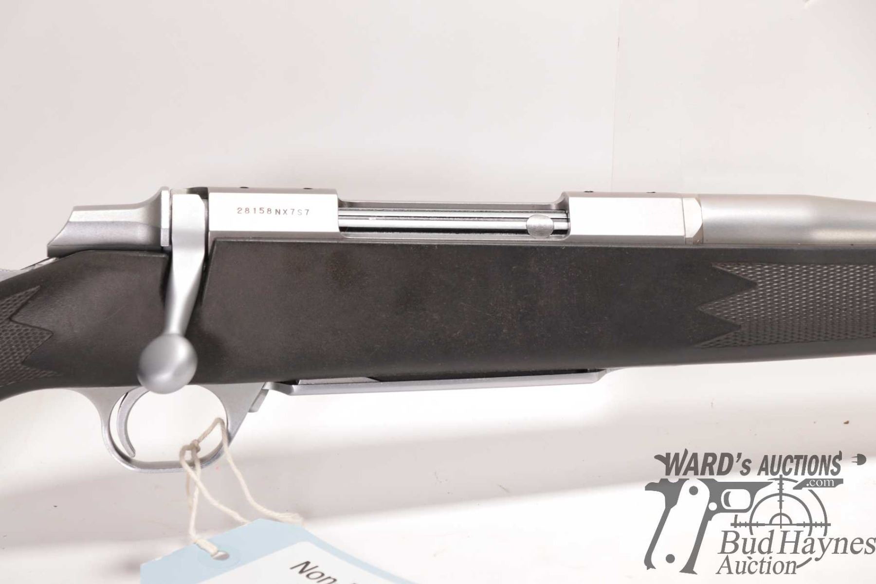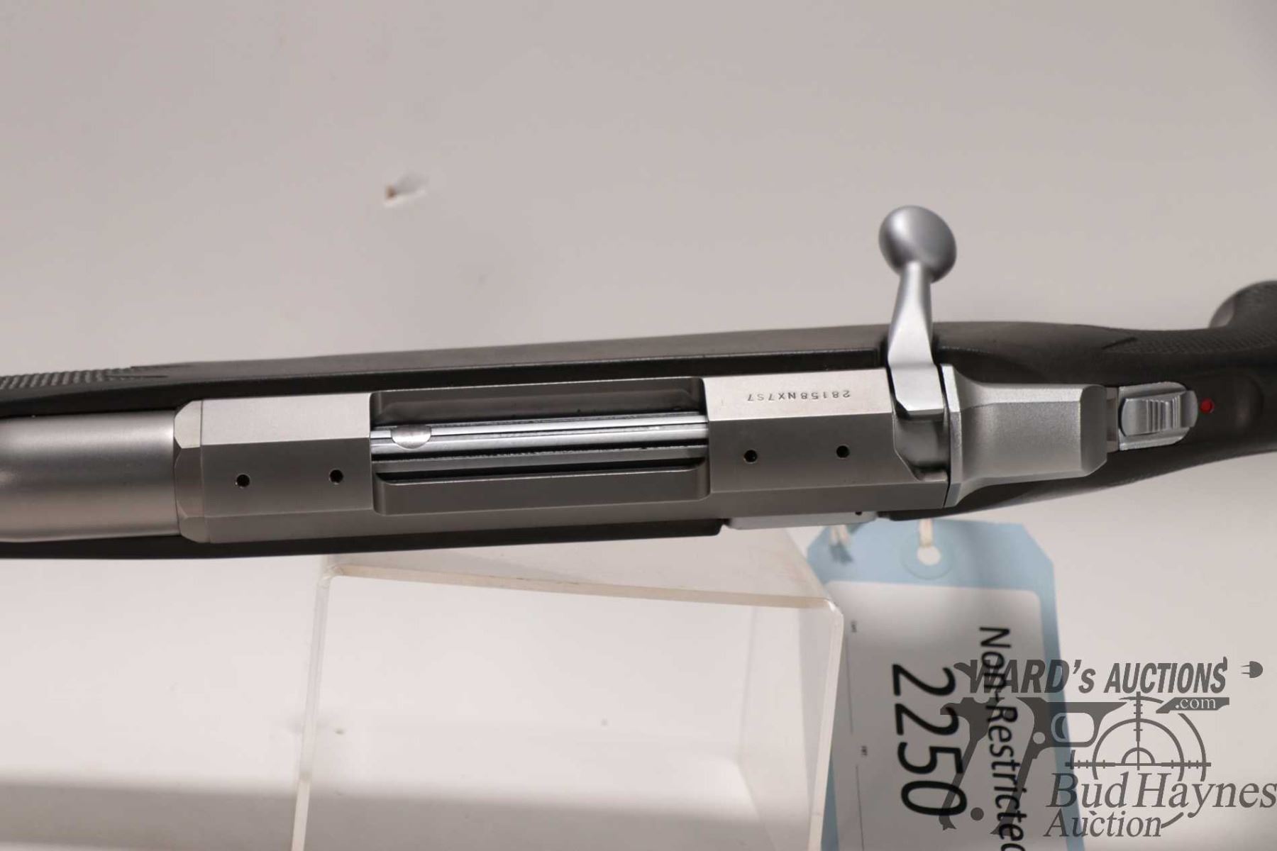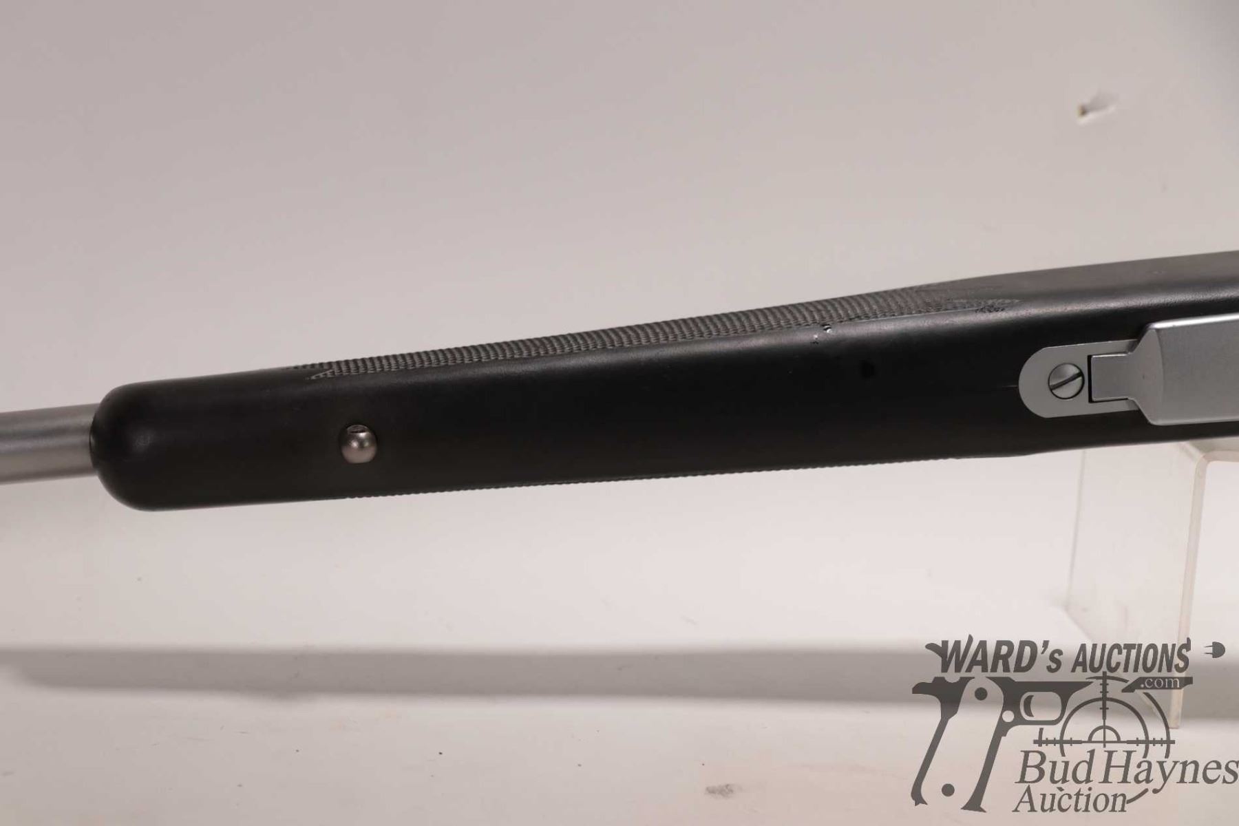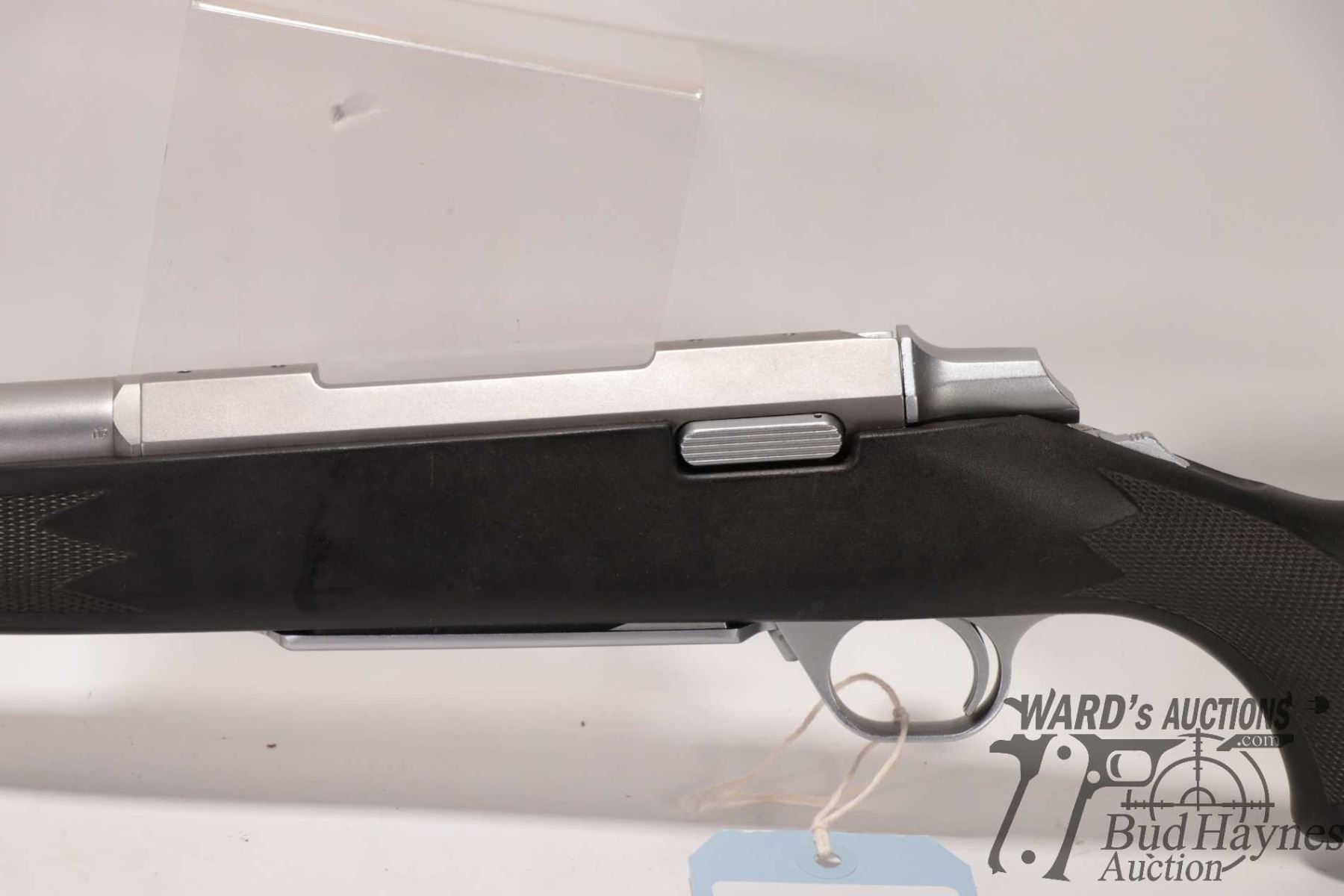 Non-Restricted rifle Browning Japan model A-Bolt, 338 Win Mag bolt action, w/ bbl length 26" [Satin stainless barrel and receiver. No fixed sights. Includes two internal/ detachable box magazines. Black synthetic stock with branded recoil pad. Mechanically appears near excellent with only minor use, handling and storage marks.] serial # 28158NX7S7, PAL required