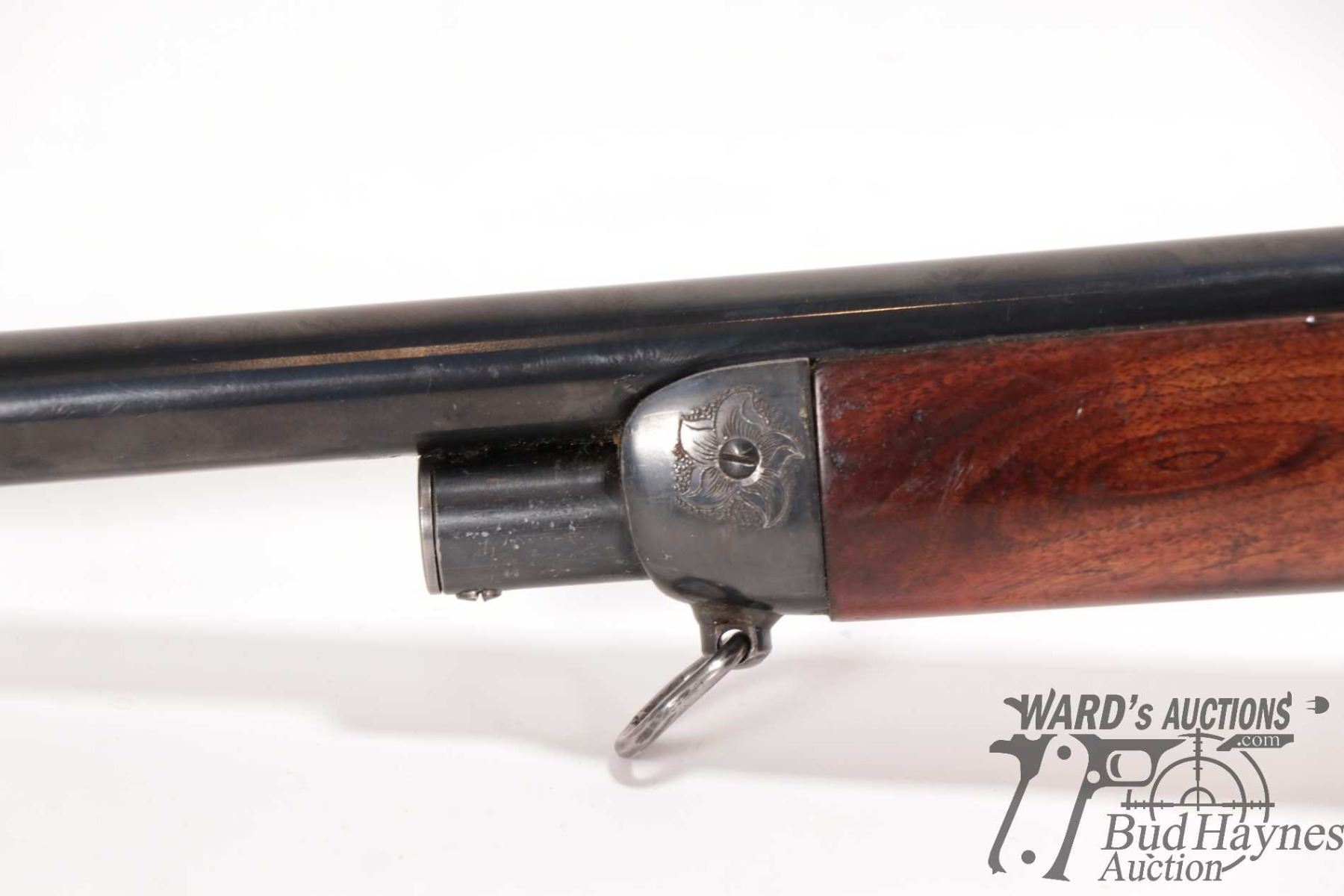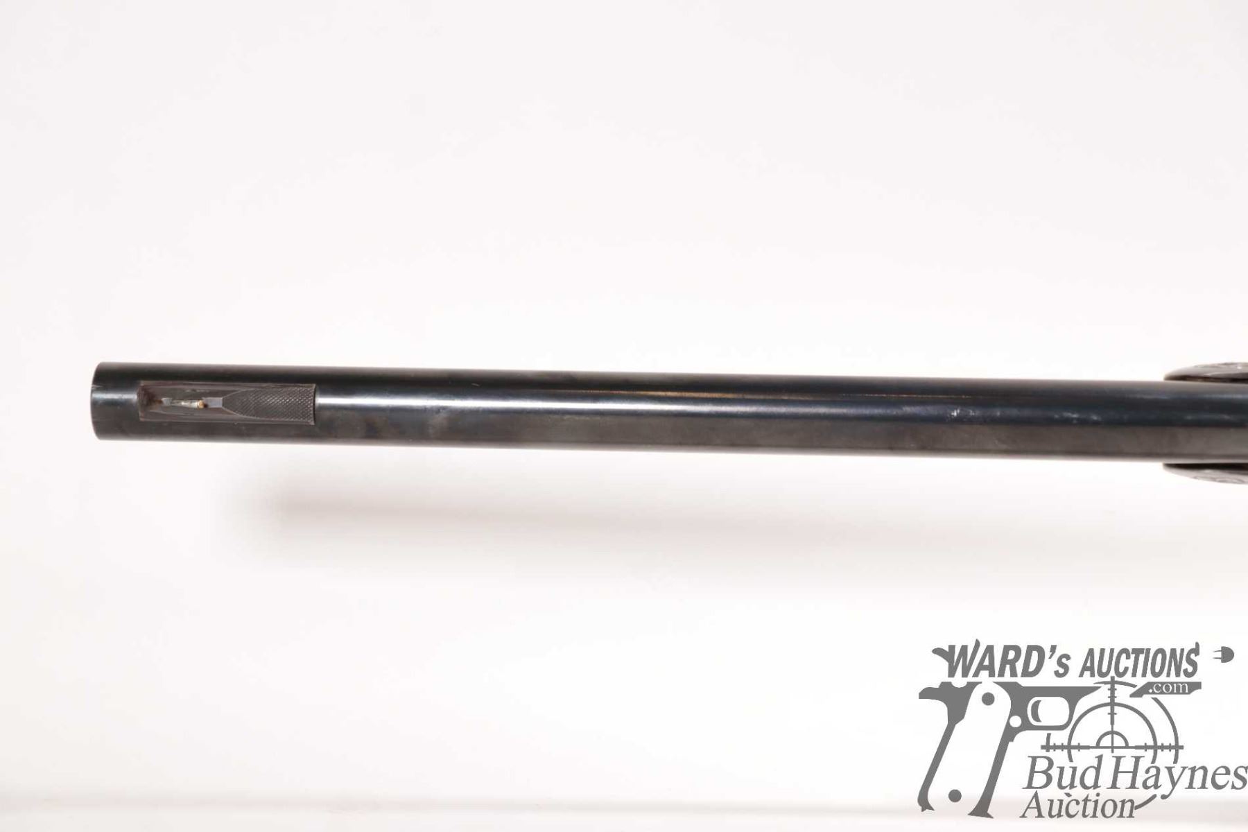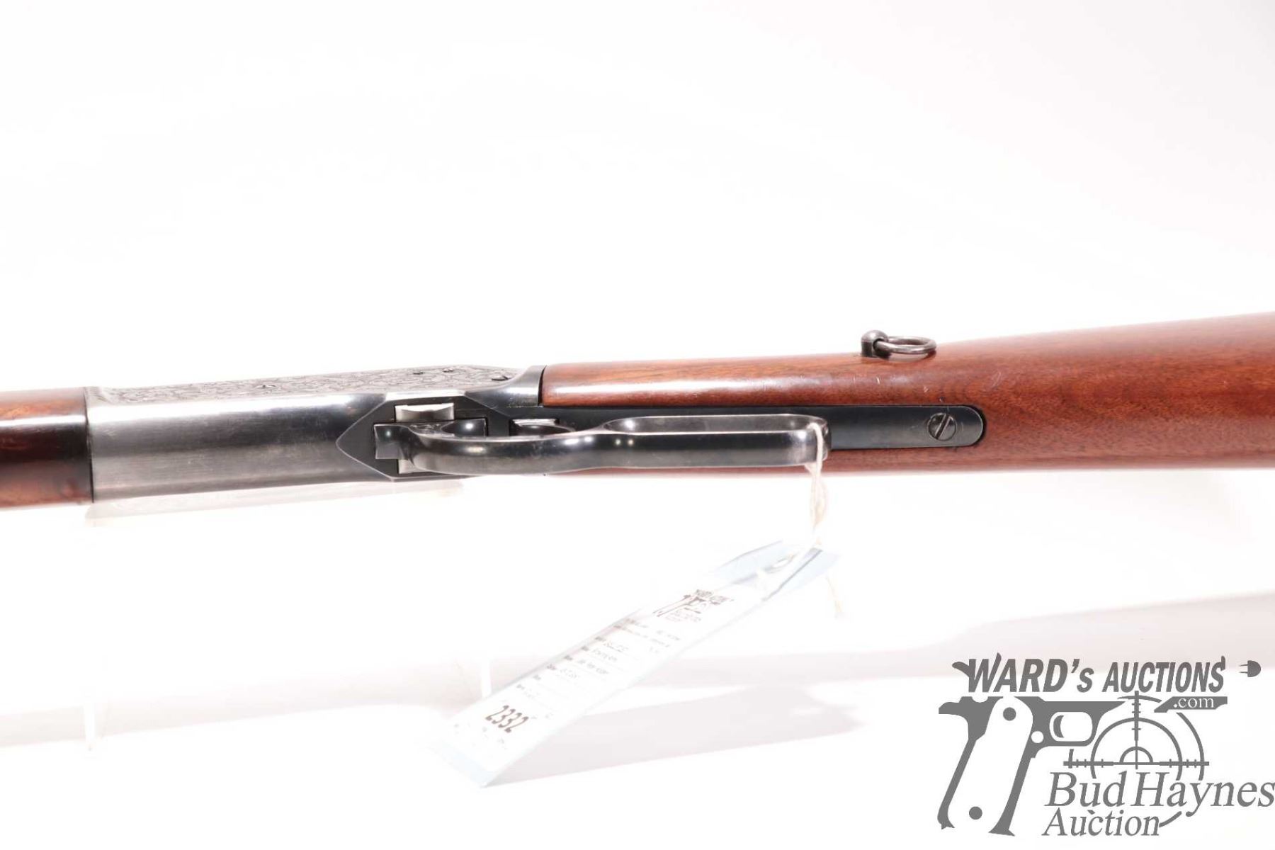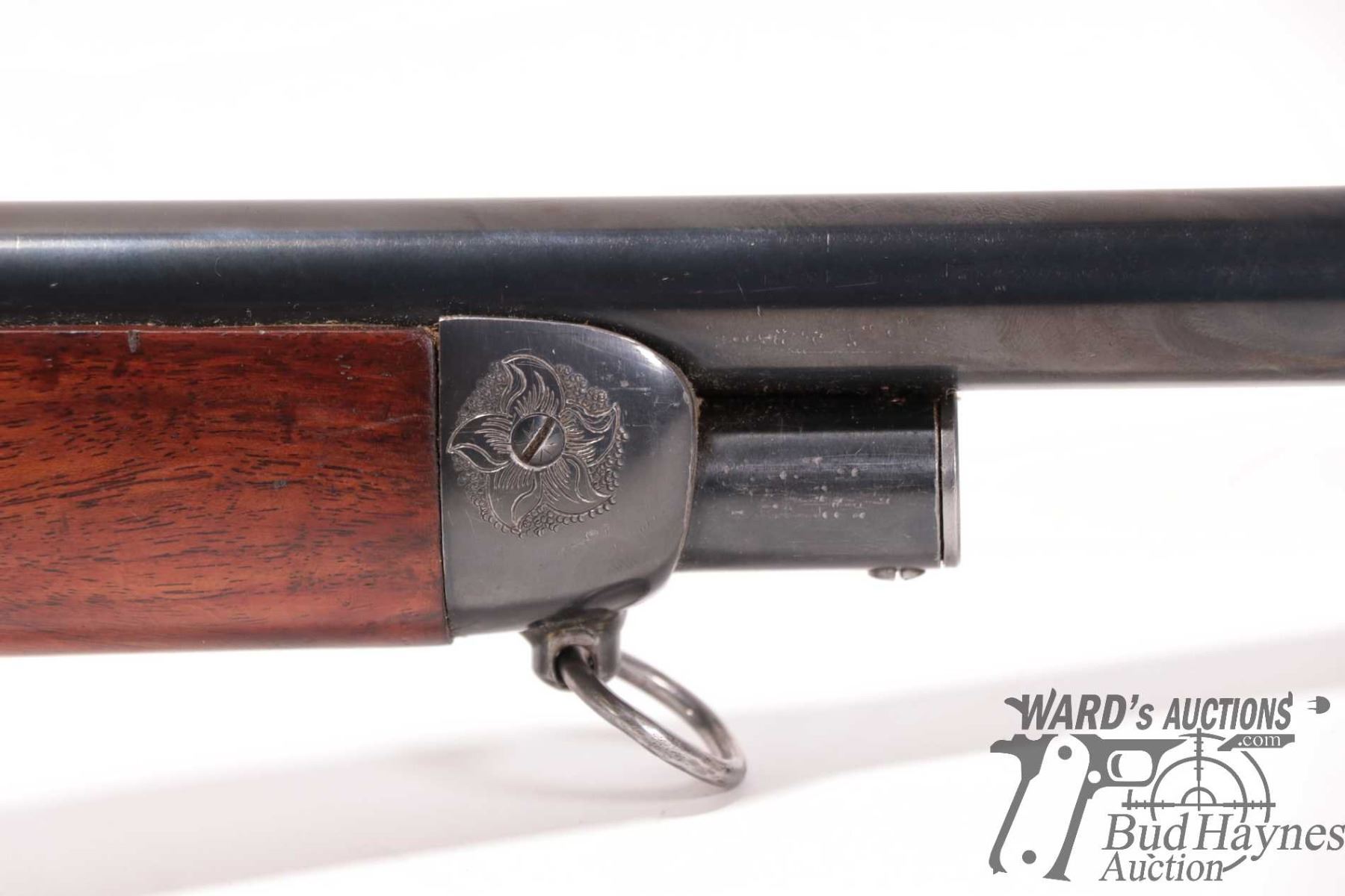 Non-Restricted rifle Browning model 1886 ( Peter Holden), .45-70 Govt. lever action, w/ bbl length 21 1/2" [Blued barrel and receiver. Fixed front sight. Original barrel mount rear sight removed and filled. Fitted with rear peep sight. Half length tubular magazine. Oversize hardwood stock with recoil pad. Beautifully custom hand engraving on receiver, lever, forend cap etc. and top of barrel marked "PETER HOLDEN', presumed to be owner who commissioned engraving. Mechanically appears near excellent. Bluing worn predominantly on receiver, which in contrast to the receiver shows wonderful patina.] serial # 04511PT197, PAL required