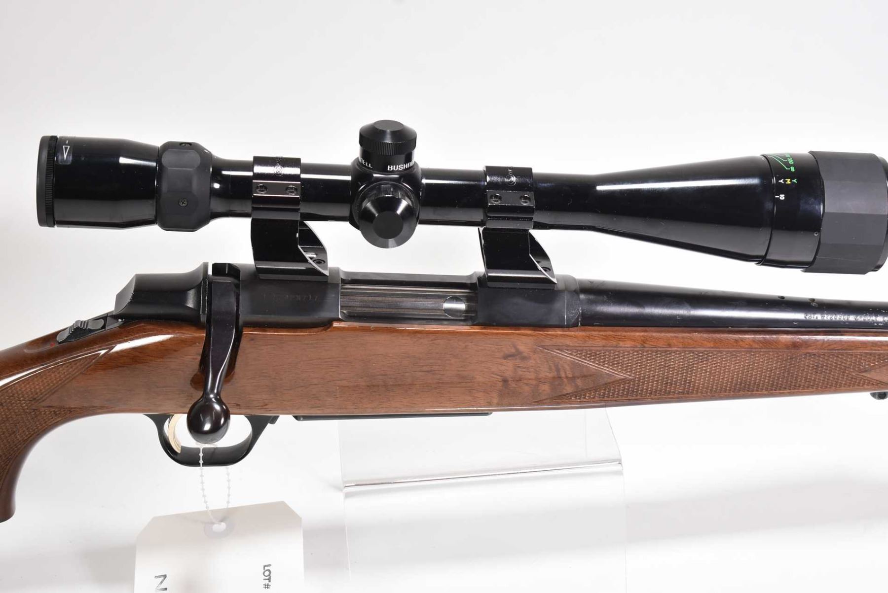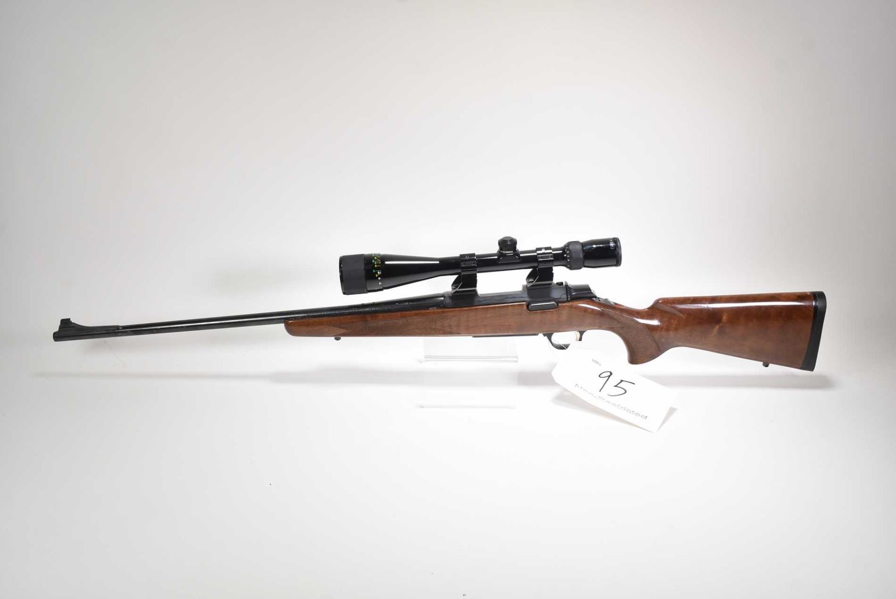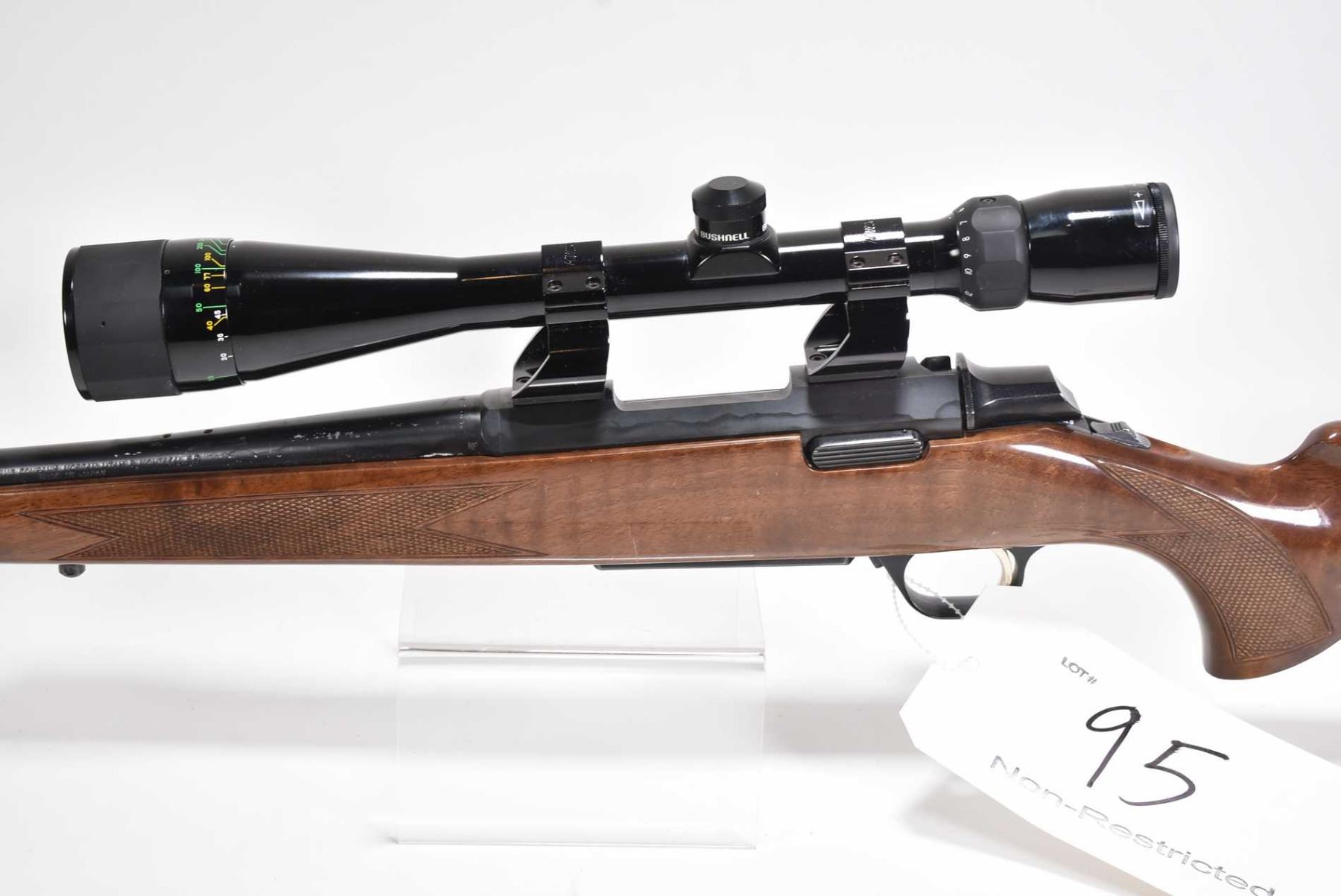 Non-Restricted rifle Browning model A-Bolt, .22-250 Rem Mag fed bolt action, w/ bbl length 22" [Blued barrel and receiver. Fixed front sight, rear sight not attached included in baggy, likely removed to fit attached Bushnell High contrast 6-18 scope. Gloss finished wooden stock with checkered pistol and foregrip. Browning recoil pad. Includes two removable magazines. Adhesive residue on barrel. Use and handling marks on wood and metal.] serial # 47524PN717, PAL required