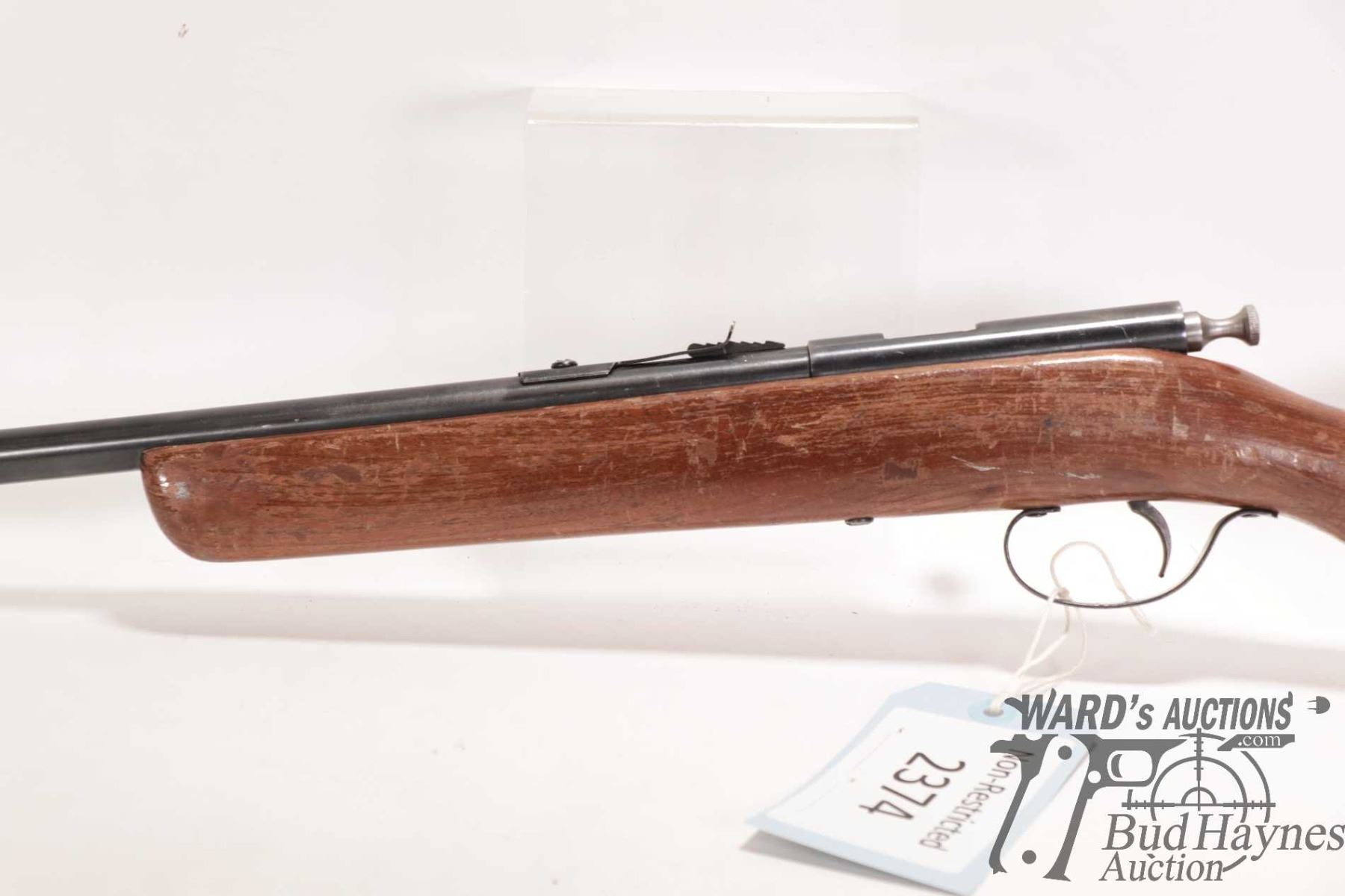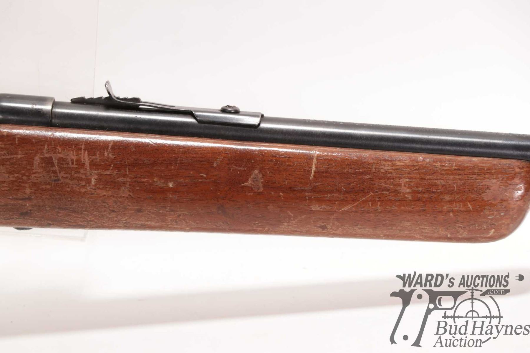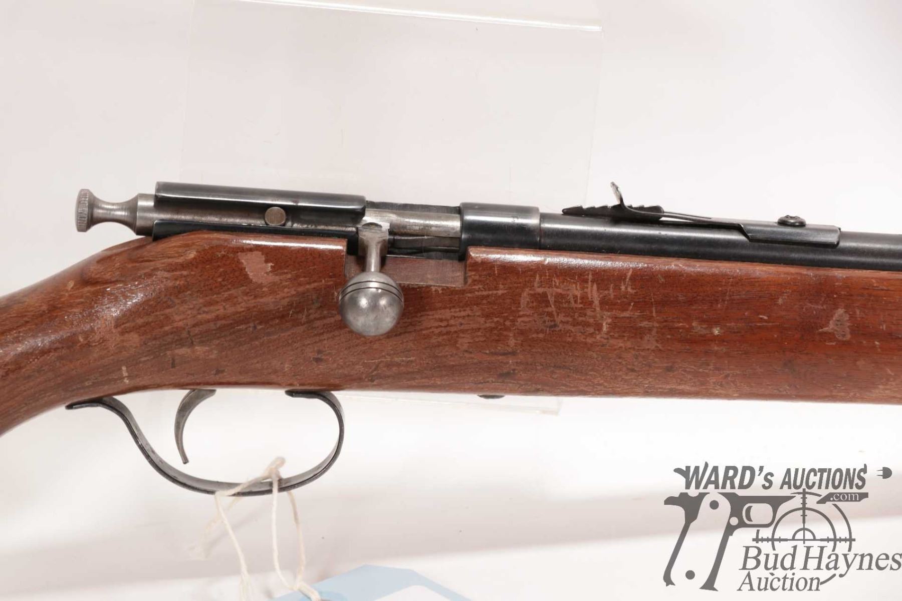 Non-Restricted rifle Cooey model 39, 22 S, L & LR Single shot bolt action, w/ bbl length 22" [Blued finish. Fixed front and adjustable rear sights. Smooth wooden stock with metal butt plate. Mechanically appears to function reasonably well. Bluing worn in use and handling areas, nicks and dings and other use, handling and storage marks.] serial # NIL, PAL required