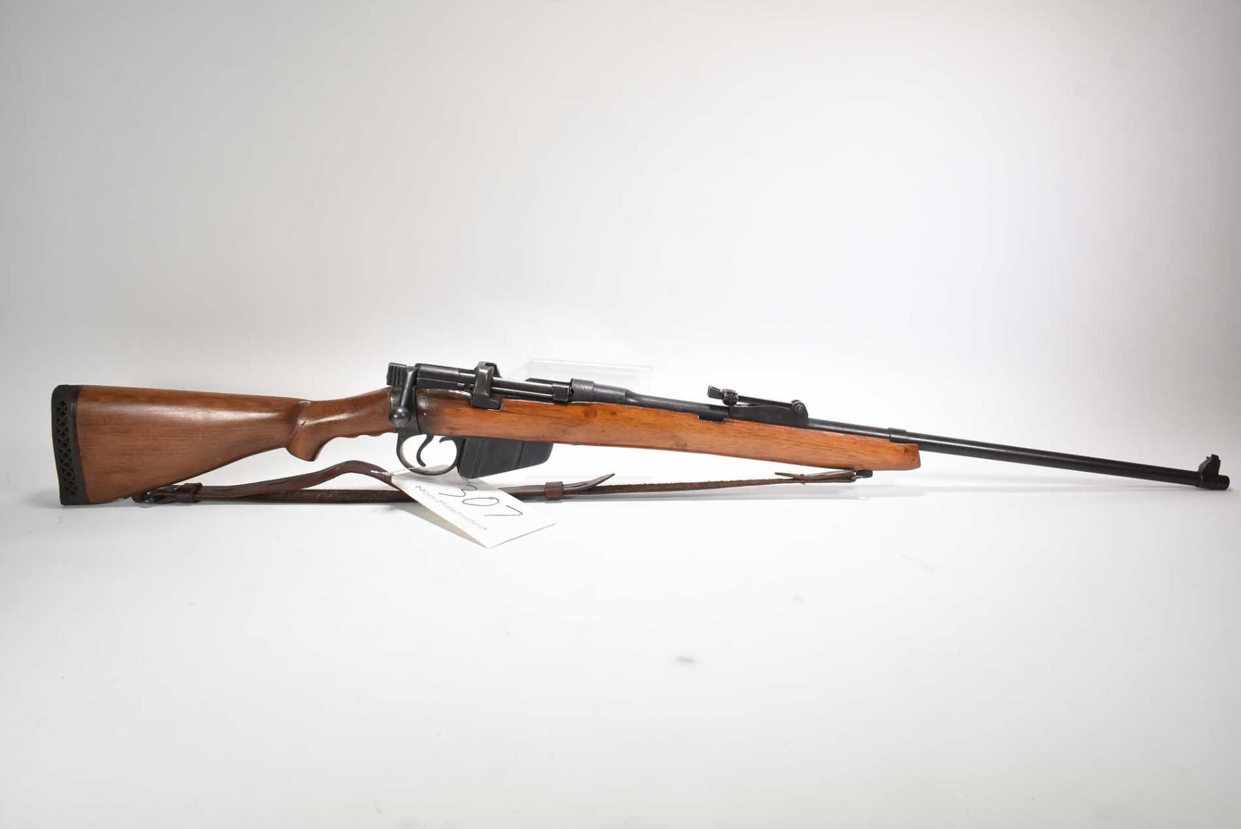 Non-Restricted rifle Enfield (BSA) model SHT. LE III*, .303 BRIT ten shot bolt action, w/ bbl length 25 1/4" [Blued barrel and receiver, fixed front and adjustable rear sights. Smooth sporterized stock, carved in finger grooves, recoil pad. Action feels smooth, Nicks and scratches to wood and metal] serial # 97331, PAL required