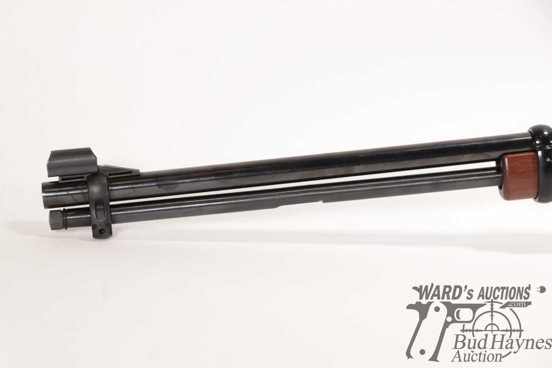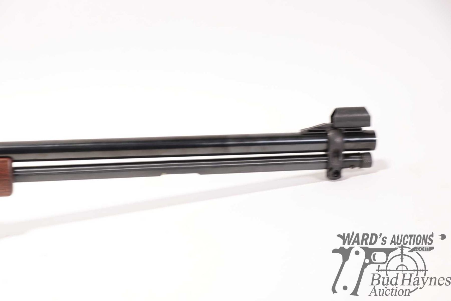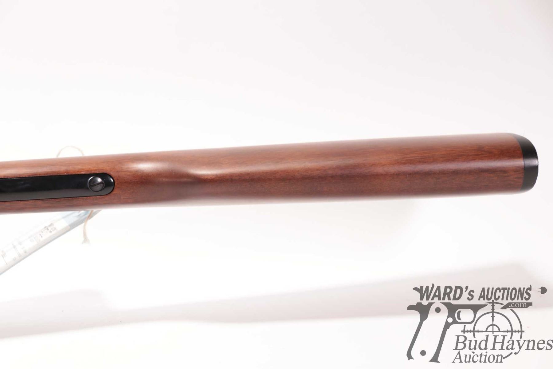 Non-Restricted rifle Henry model H001, 22 S, L & LR lever action, w/ bbl length 18" [Blued barrel and full length tube. Hooded fixed front sight and adjustable rear. Black finished alloy receiver. Smooth straight wooden stock with branded plastic butt plate. Mechanically appears near excellent. Most only minor use and handling marks plus a few extra paint scratches predominately on left and bottom of receiver.] serial # 749663H, PAL required