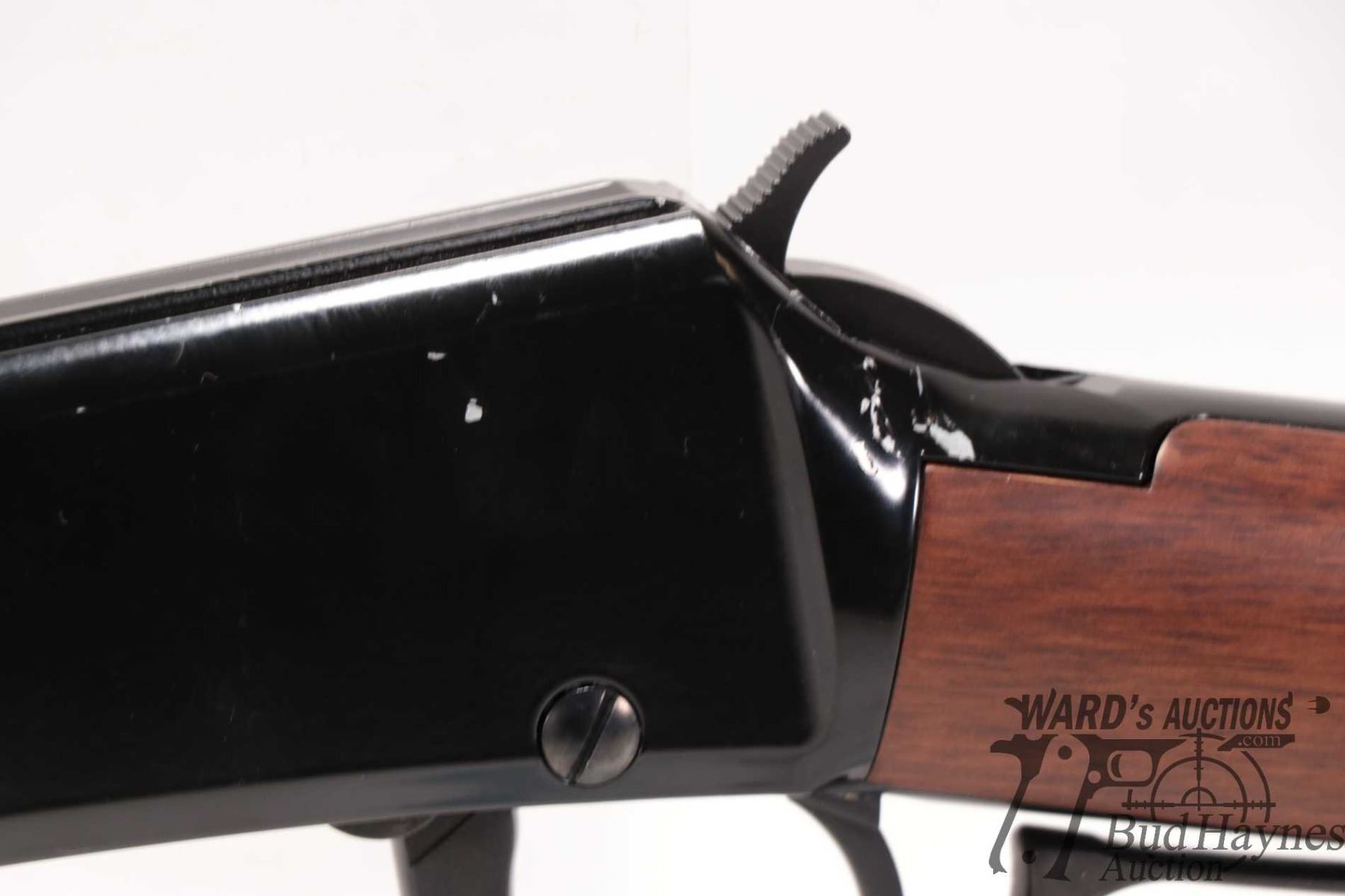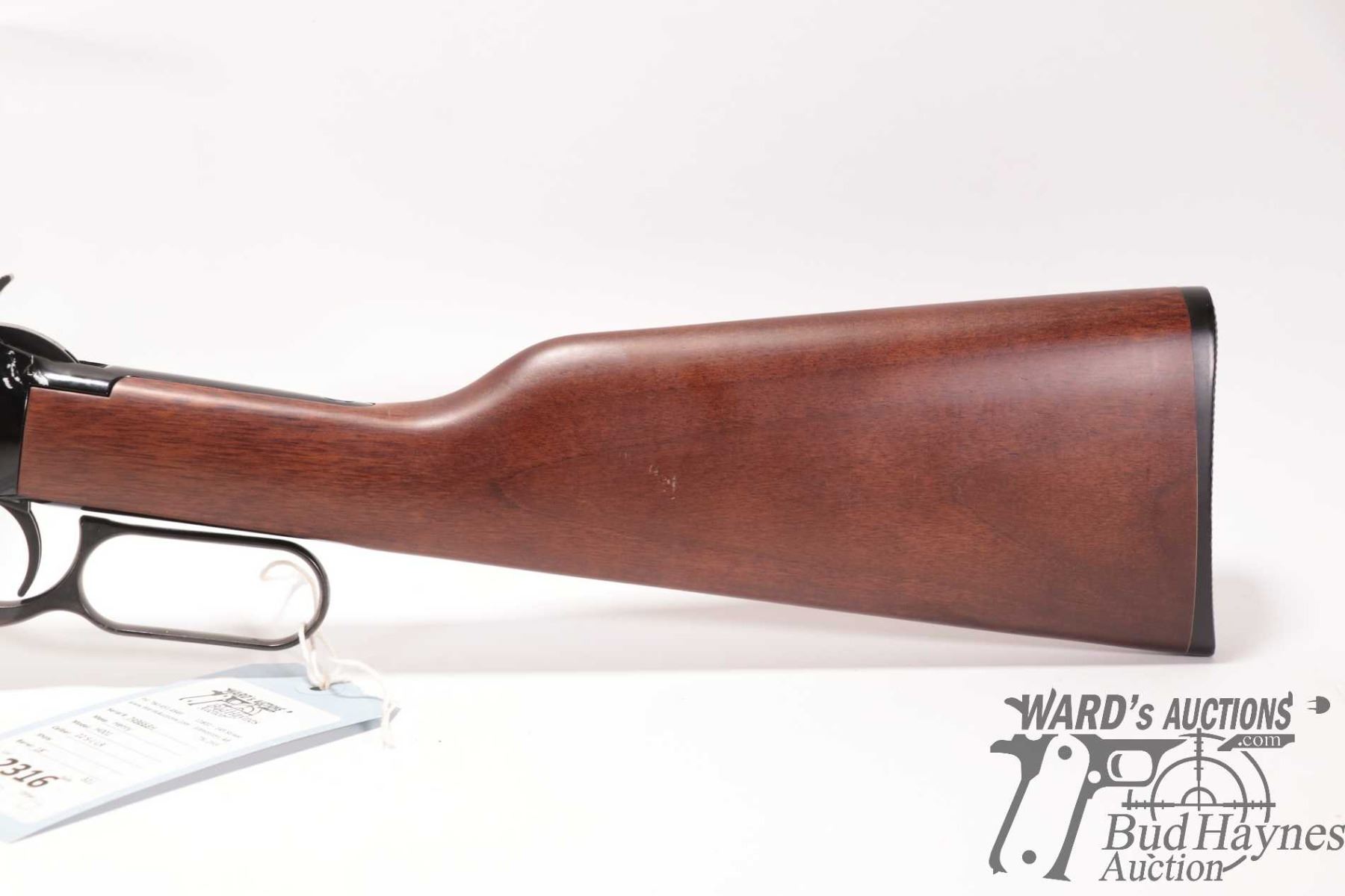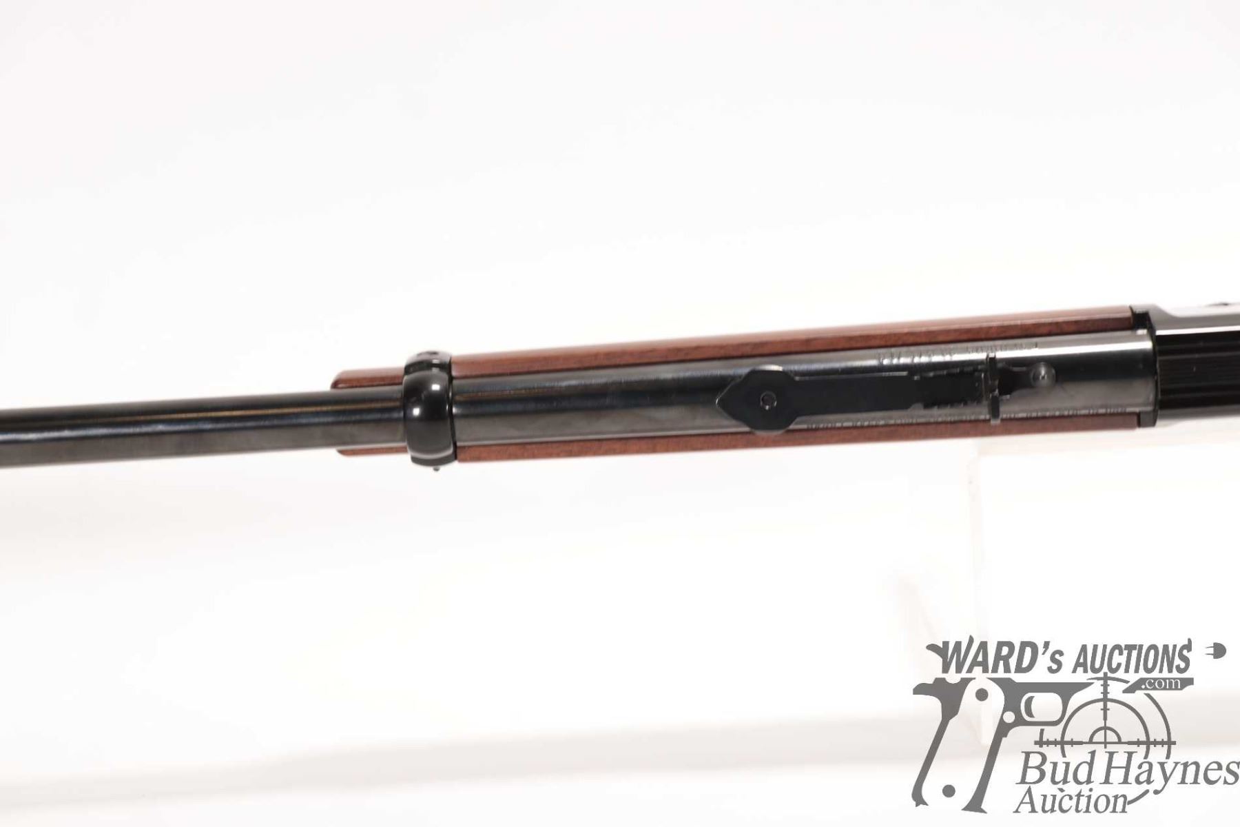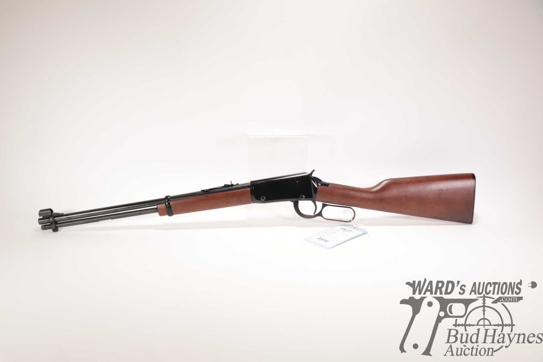 Non-Restricted rifle Henry model H001, 22 S, L & LR lever action, w/ bbl length 18" [Blued barrel and full length tube. Hooded fixed front sight and adjustable rear. Black finished alloy receiver. Smooth straight wooden stock with branded plastic butt plate. Mechanically appears near excellent. Most only minor use and handling marks plus a few extra paint scratches predominately on left and bottom of receiver.] serial # 749663H, PAL required