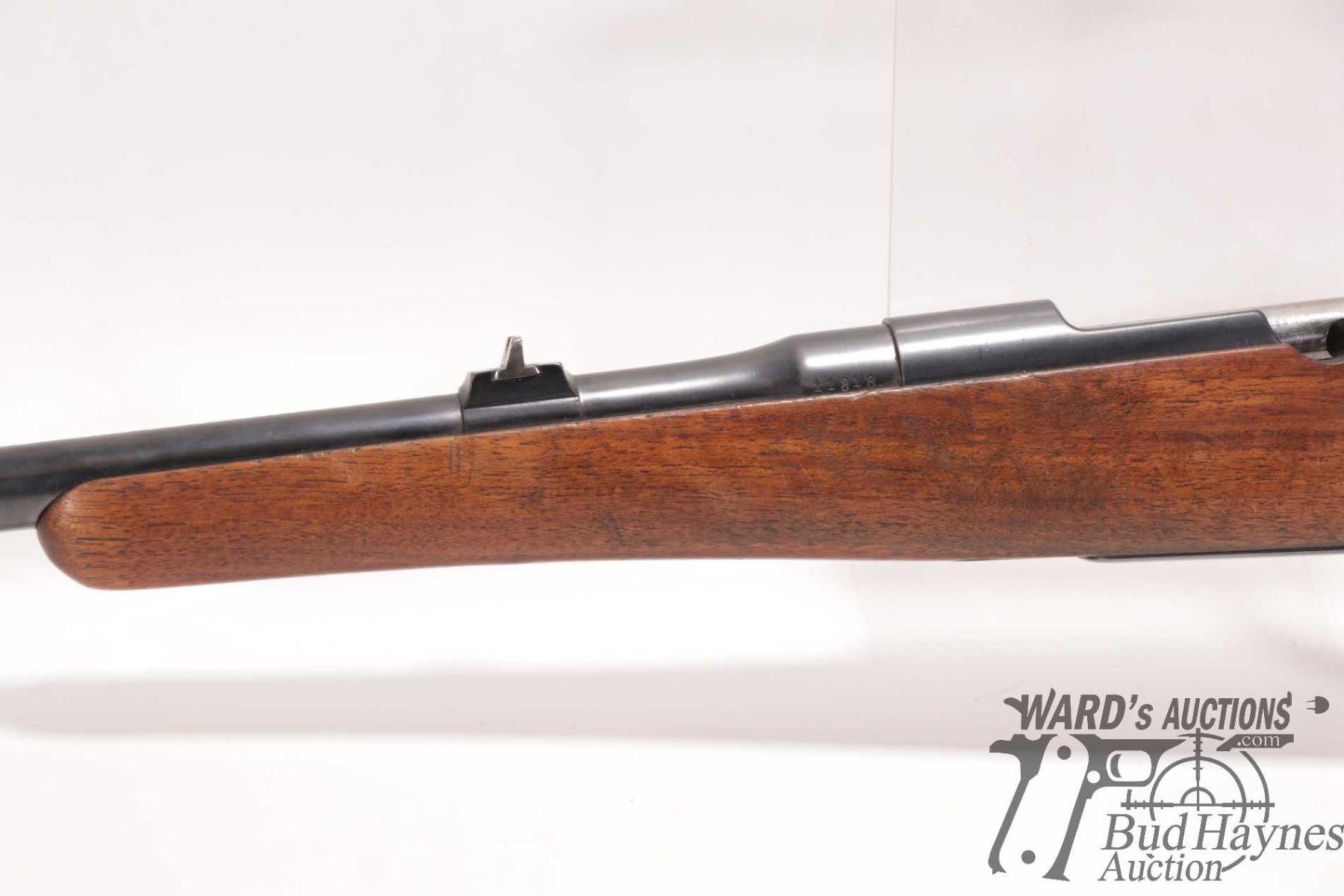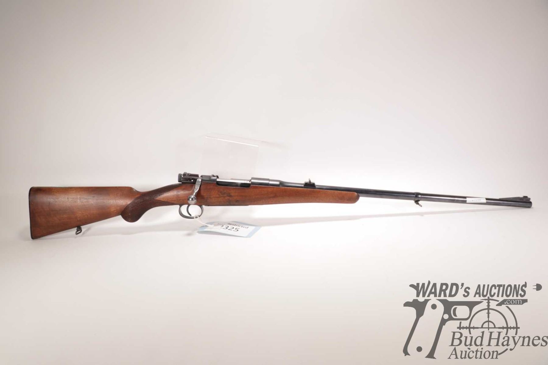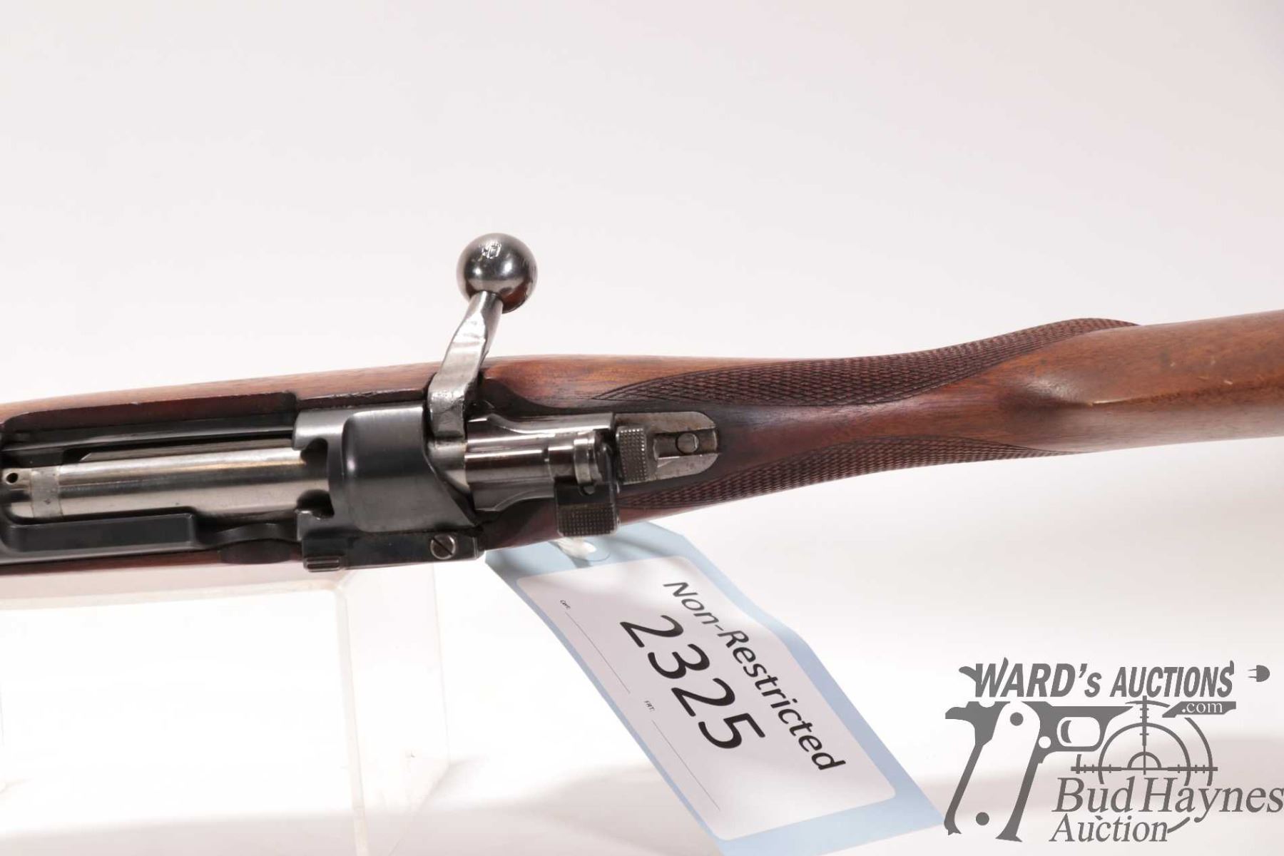 Non-Restricted rifle Husqvarna model Mauser, 9.3X57 bolt action, w/ bbl length 24" [Blued barrel and receiver. Fixed front and rear sights. Internal box magazine. Hardwood stock with branded plastic butt plate. Non-matching serial number 137 on bolt. Charging handle appears modified, possibly re-welded? Mechanically appears to function reasonably well. Bluing worn in use and handling areas. Stickers on left side of stock and other use, handling and storage marks.] serial # 11318, PAL required