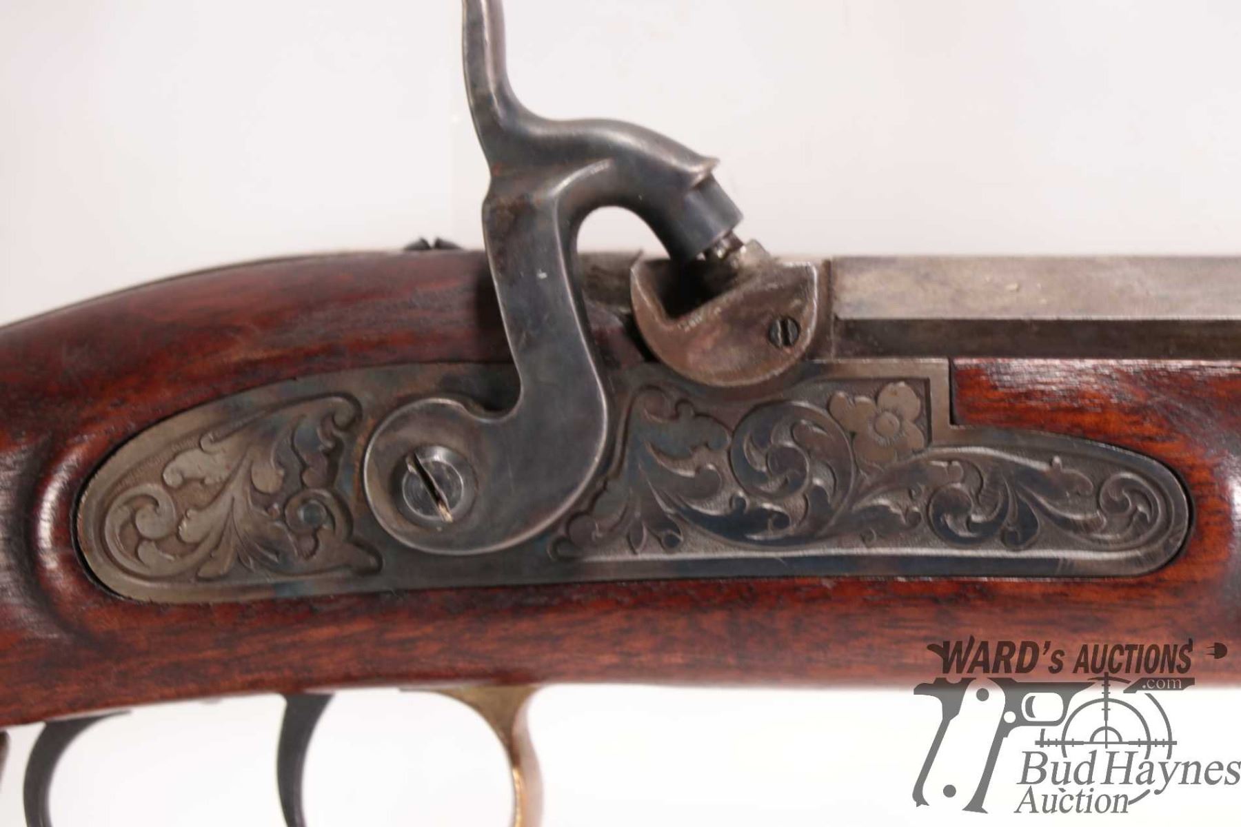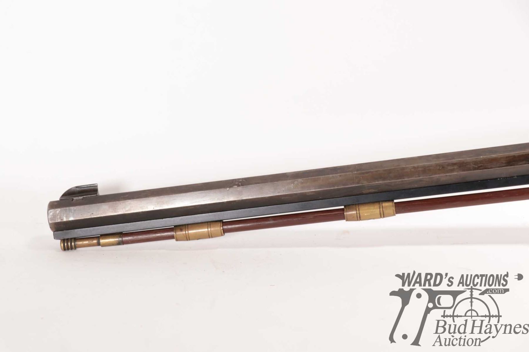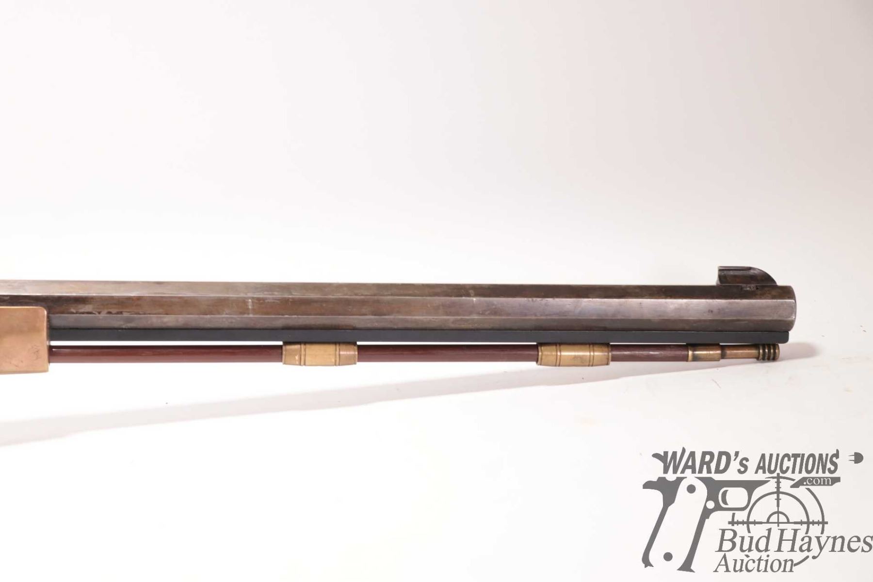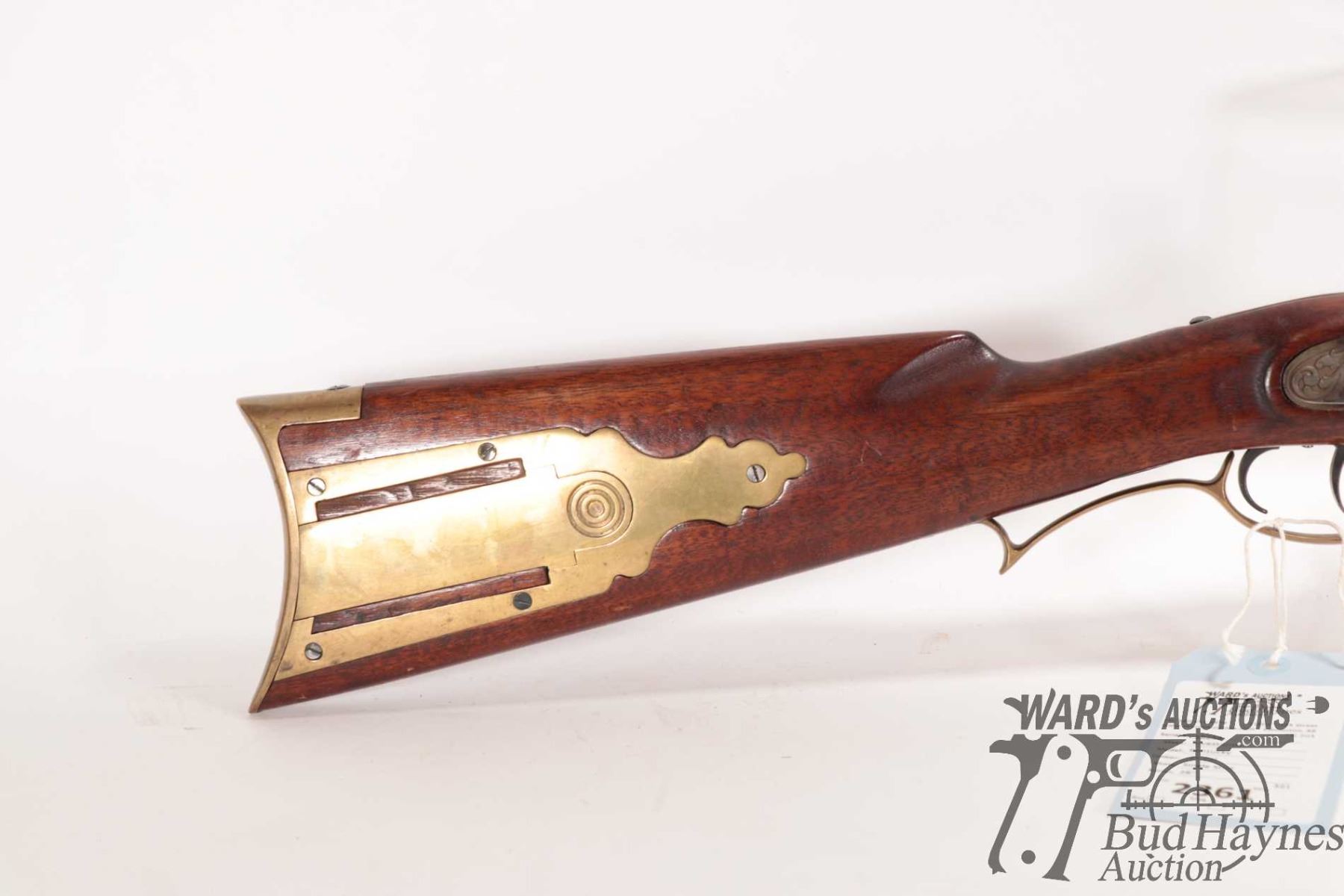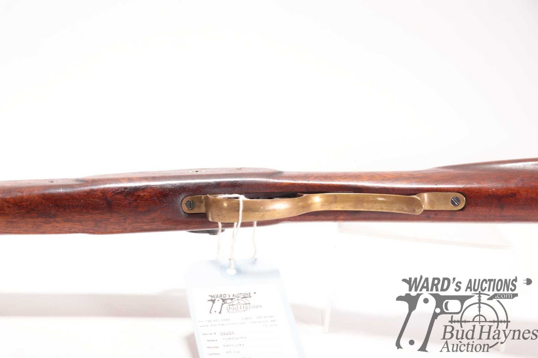 Non-Restricted rifle Invest Arms model Kentucky, .45 cal percussion Single shot muzzle loading, w/ bbl length 28" [Blued octagonal barrel. Fixed front and adjustable rear sights. Half length wooden stock with brass butt plate, trigger guard and other accents. Includes ramrod. Fitted with set trigger. Mechanically appears to function reasonably well. Bluing worn in use and handling areas. Front stock to barrel wedge is missing. Nicks and dings and other use, handling and storage marks.] serial # 58254, PAL required