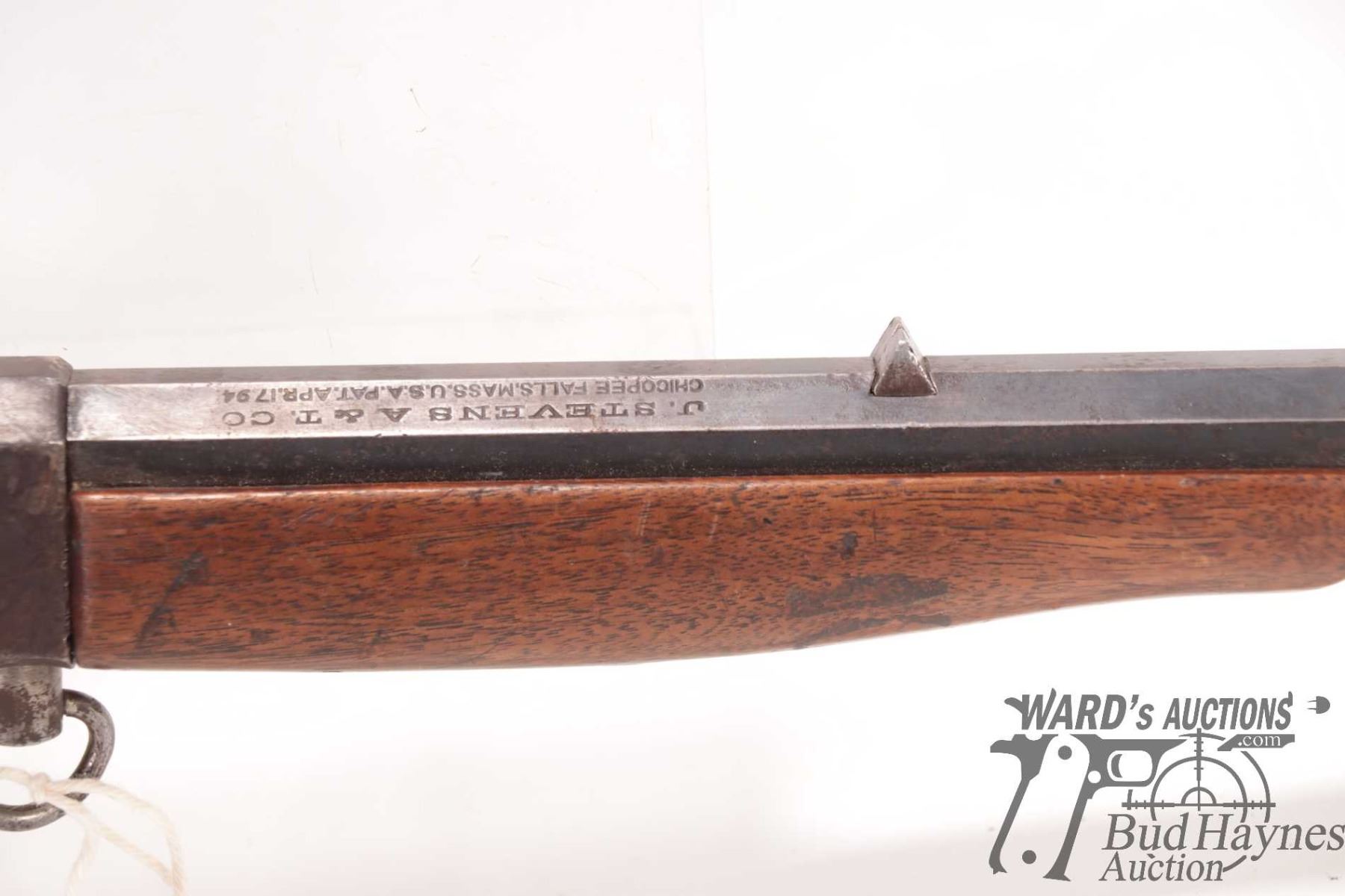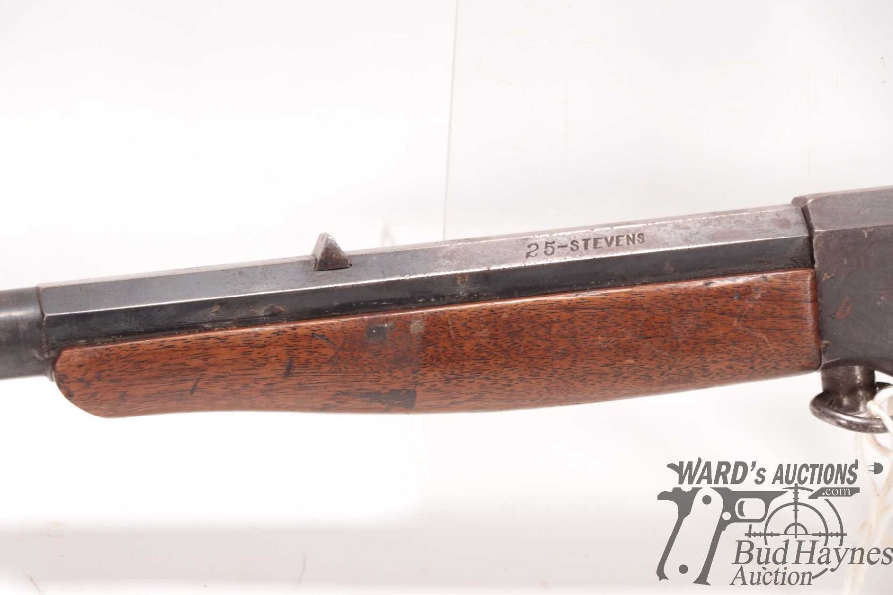 Non-Restricted rifle J. Stevens model Favorite, 25 Stevens Single shot falling block, w/ bbl length