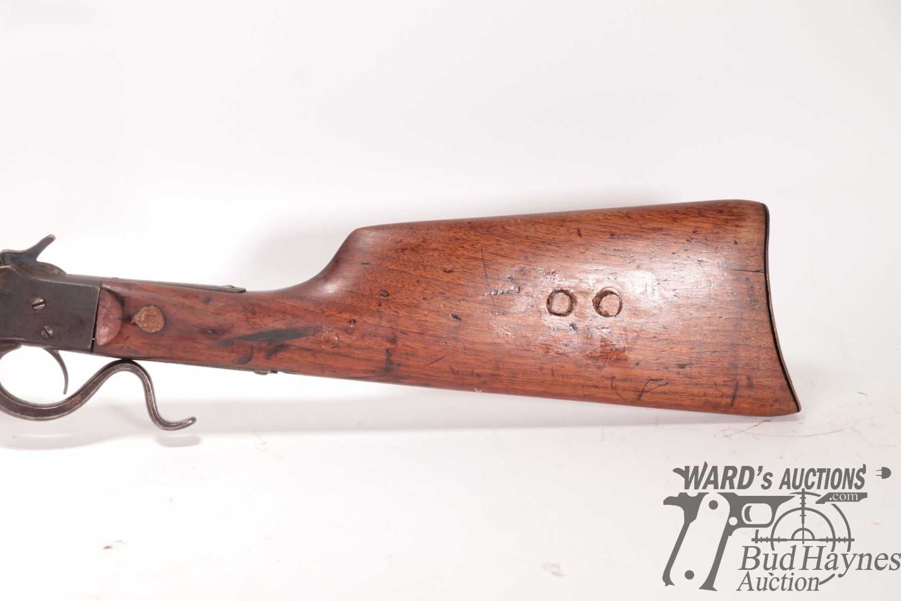 Non-Restricted rifle J. Stevens model Favorite, 25 Stevens Single shot falling block, w/ bbl length 21 1/2" [Blued part round, part octagonal barrel. Fixed front and rear sights. Smooth wooden stock with non-original metal butt plate. Mechanically appears to function reasonably well. Bluing worn in use and handling areas with surface rust and pitting. Old repairs to stock plus nicks, dings and gouges and other use, handling and storage marks.] serial # C138, PAL required