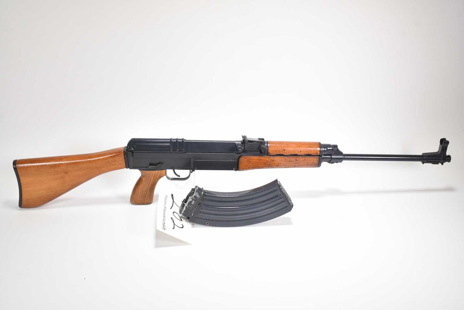 Non-Restricted rifle Kodak Defense Inc. model WR 762, 7.62 X 39 five shot semi automatic, w/ bbl length 18 3/4" [Battle finished barrel and receiver, adjustable front and rear sights. Smooth stock, pistol grip and forend. Includes one pinned magazine. Appears to have had very little use with minor handling marks, more so on the forend] serial # WS108, PAL required