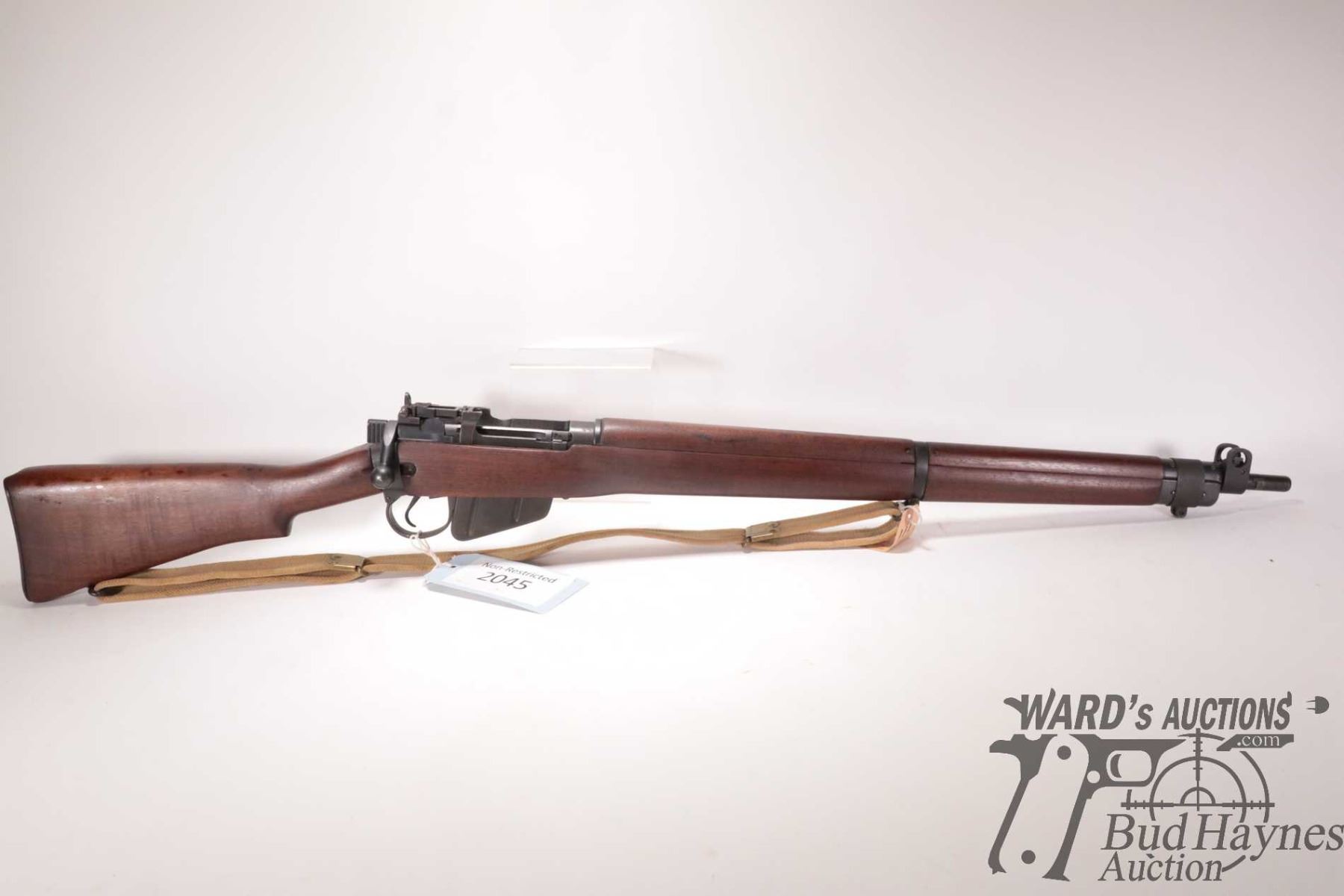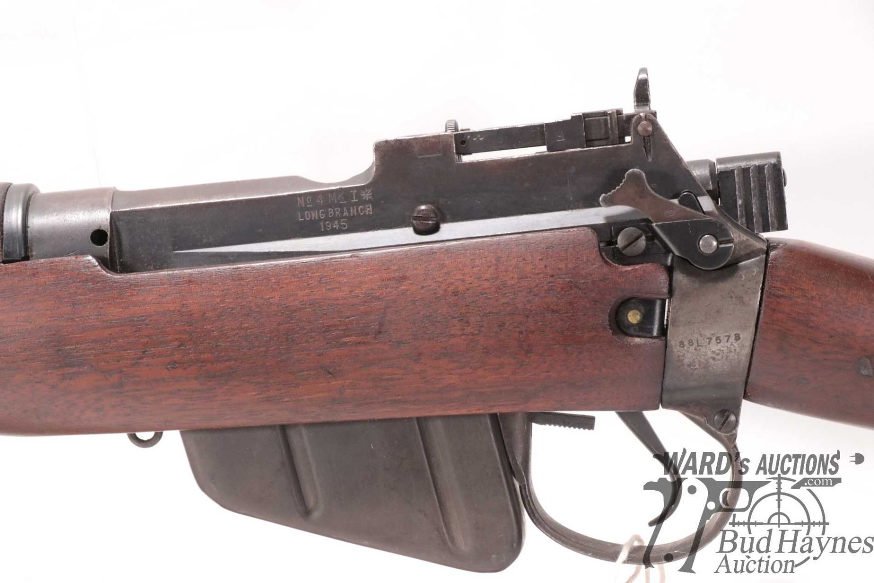 Non-Restricted rifle Lee Enfield (Long Branch) model N0 4 MK I*, .303 British Ten shot bolt action, w/ bbl length 25" [Blued barrel and receiver. Fixed front and adjustable flip up rear sight. Includes one detachable box magazine and sling. Full wood stock with metal butt plate. Matching serial number on receiver and bolt. Left side of receiver marked 1945. Fitted with less common two groove barrel. Mechanically appears to function reasonably well. Bluing worn in use and handling areas plus other use, handling and storage marks.] serial # 88L7578, PAL required