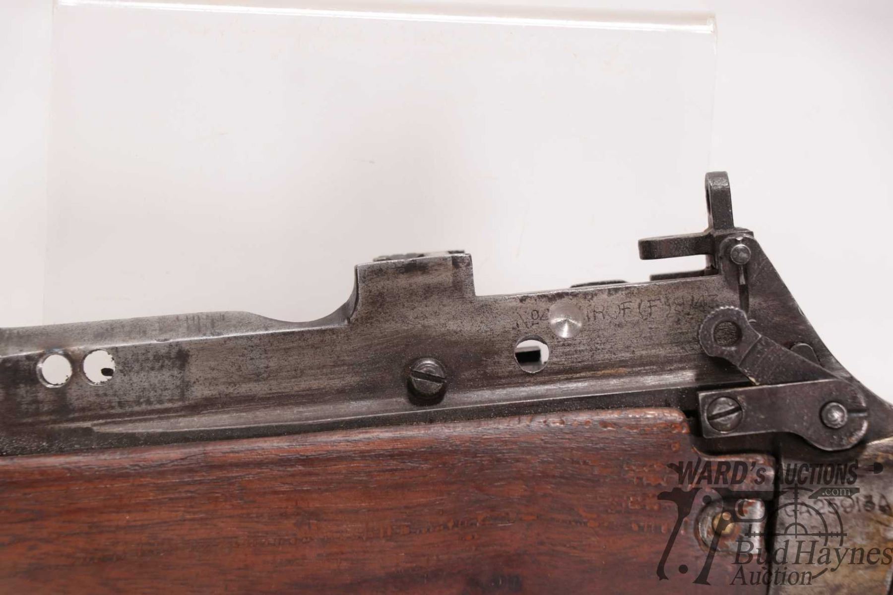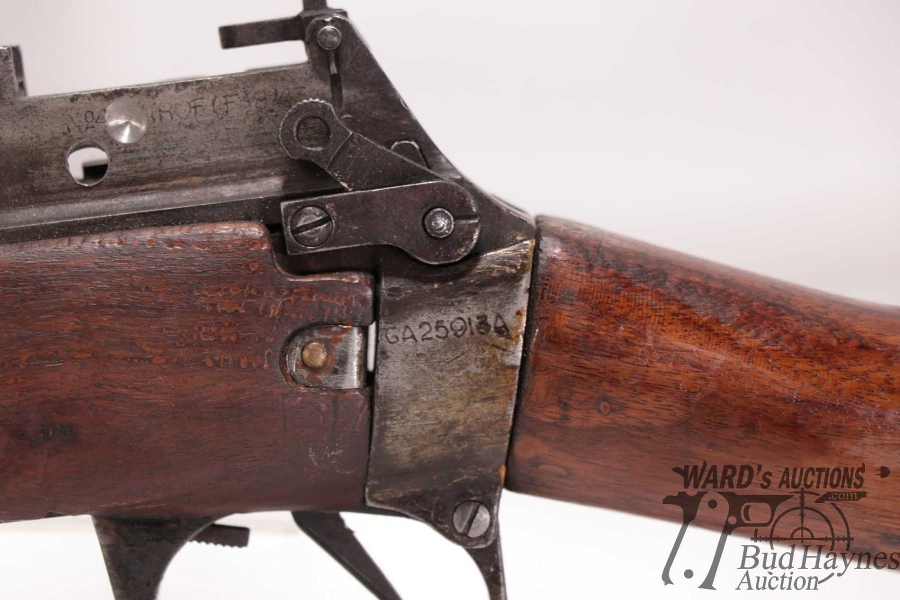Non-Restricted rifle Lee Enfield model No. 4 MK I, .303 British bolt action, w/ bbl length 23 1/2" [NON FIRING. Missing bolt and magazine. Trigger group appears intact. Several holes drilled in receiver for scope mount. Overall in poor condition.] serial # GA25913A, PAL required