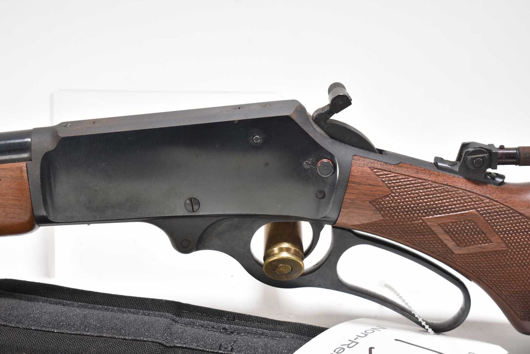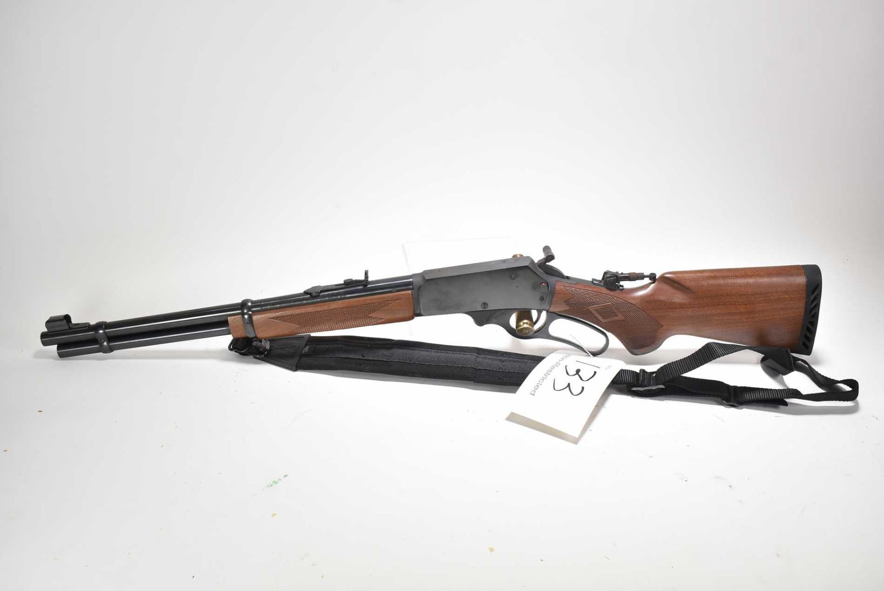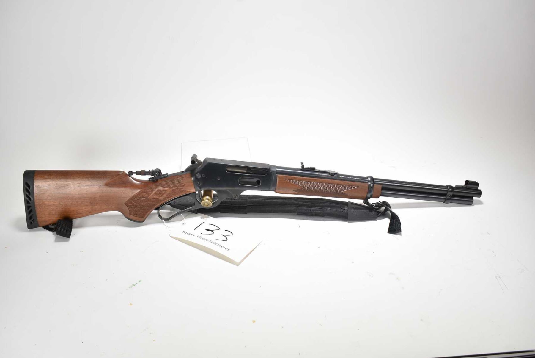 Non-Restricted rifle Marlin model 336Y Compact, 30-30 cal, tube fed 5 lever action, w/ bbl length 16 3/4" [Blued barrel and receiver, fixed front and adjustable rear sights, walnut stock with checkered grip and forend, soft recoil pad, Uncle Mike's padded sling, fitted with rear peep sight. Slight surface rust in a couple spots but appears to have had light use with minor use and handling marking.] serial # 9804 (Partial), PAL required