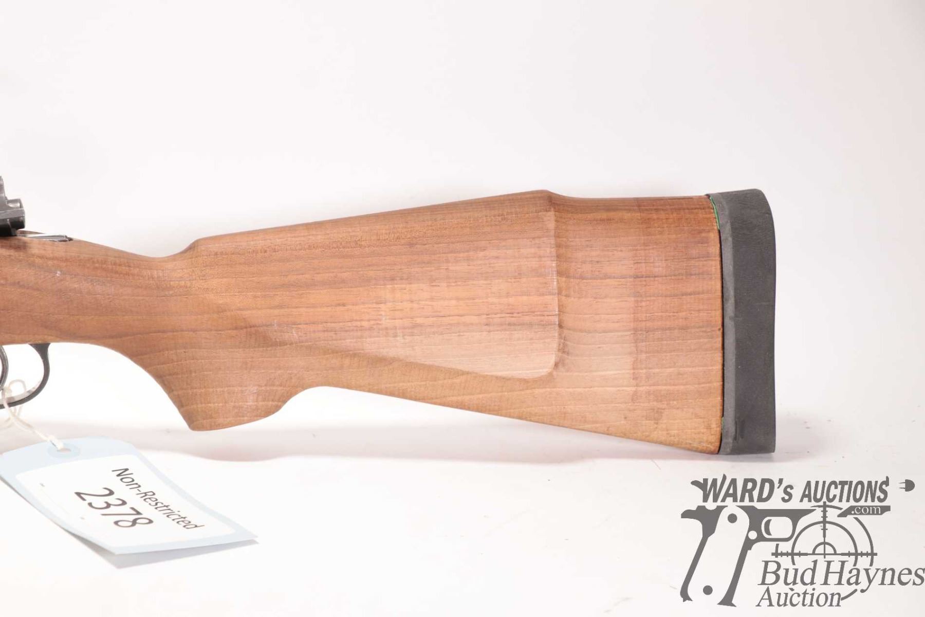 Non-Restricted rifle Mauser model 98, 30-06 bolt action, w/ bbl length 23 1/2" [Blued barrel and receiver. No fixed sights. Fitted with 1" scope rings. Internal box magazine. Homemade or after market stock with Limbsaver recoil pad. Action appears to function reasonably well. Bluing on receiver worn and pitted. Barrel appears new or near new with only minor wear. Stock has no finish on it and hole through stock under receiver, likely fitment for a different action.] serial # 30558, PAL required
