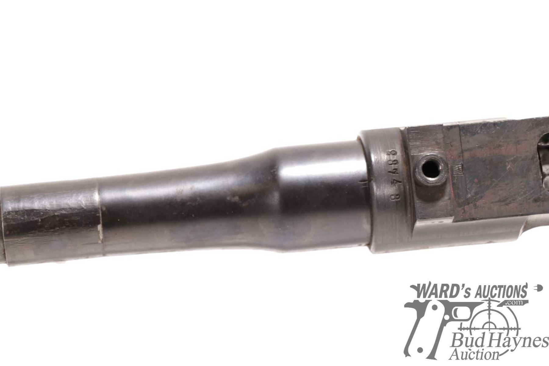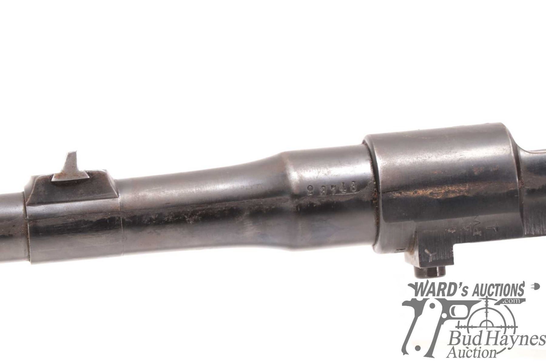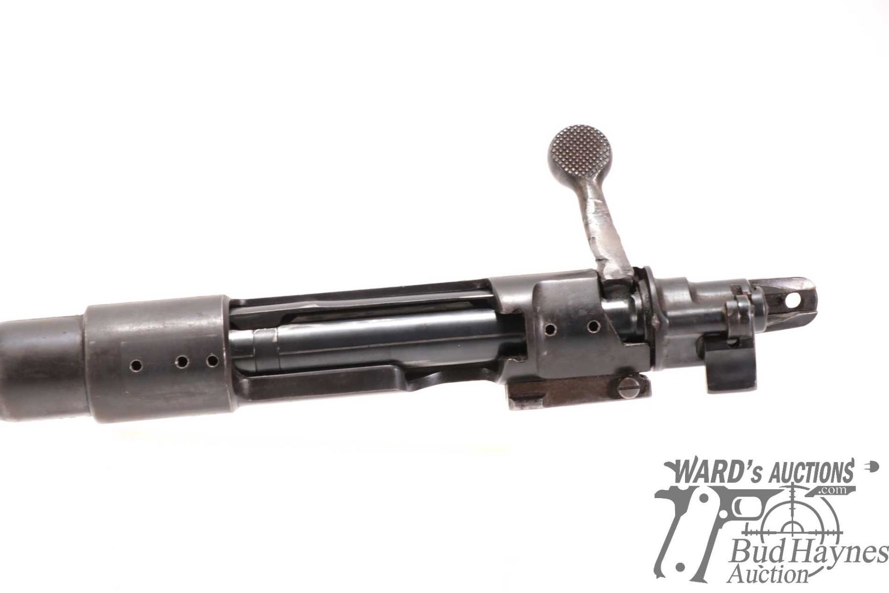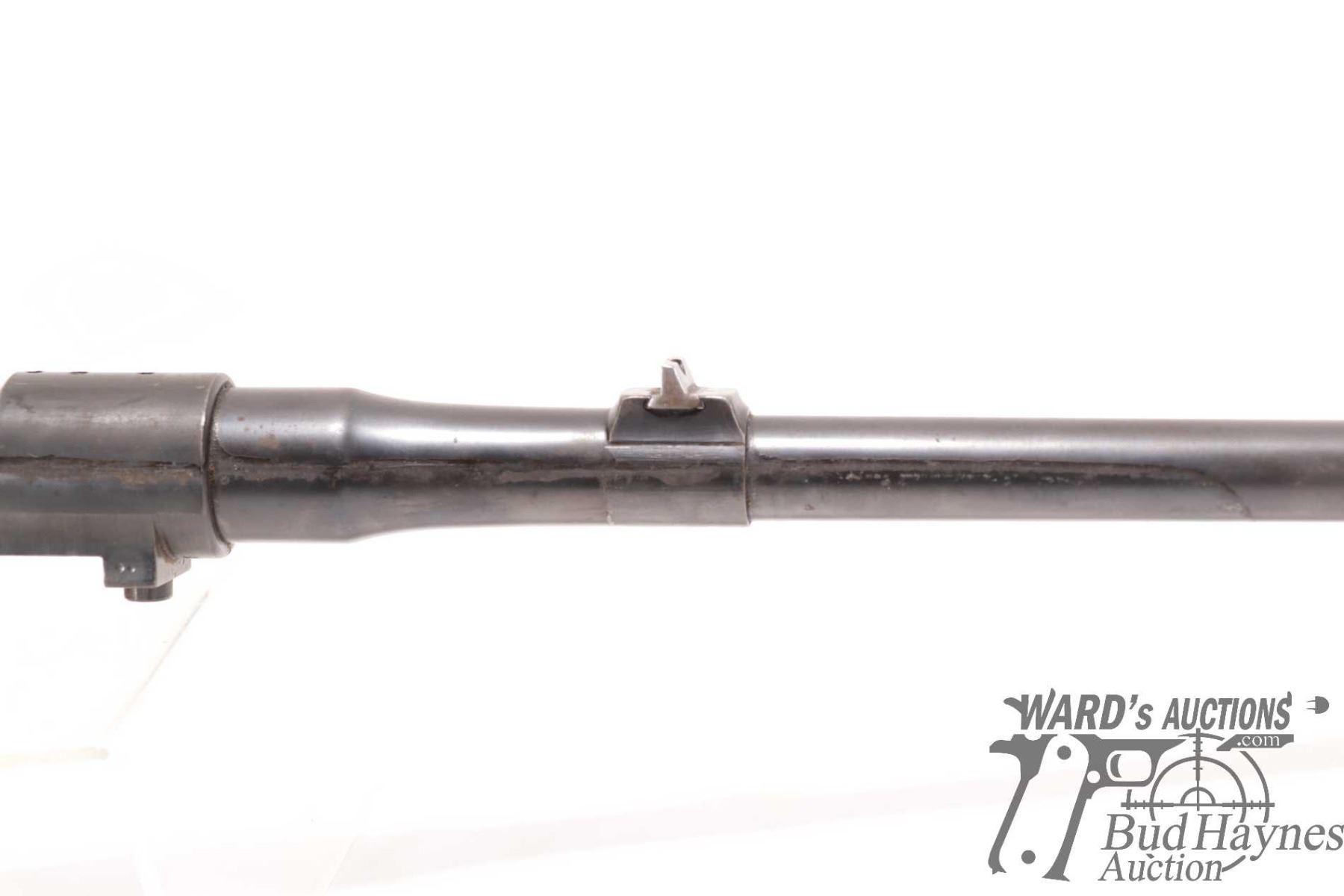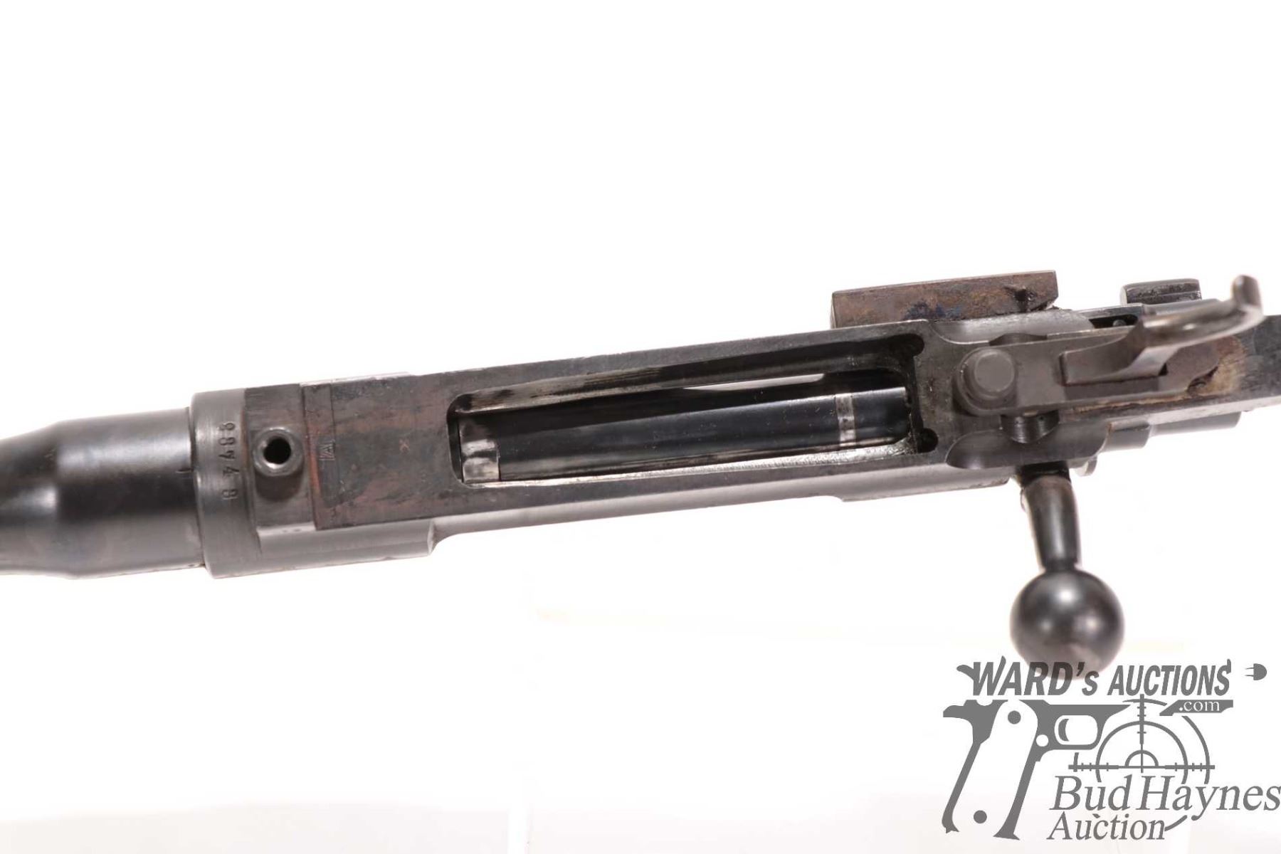 Non-Restricted rifle Mauser model 98, 9.3X57 bolt action, w/ bbl length 24" [Blued barrel and receiver. Fixed front and rear sights. Note: barrel and action only. Does not include stock. Action and trigger appear to function. Holes drilled in receiver for scope mount. Charging handle ground for clearance. Bluing worn in use and handling areas with some rust and pitting.] serial # 23743, PAL required