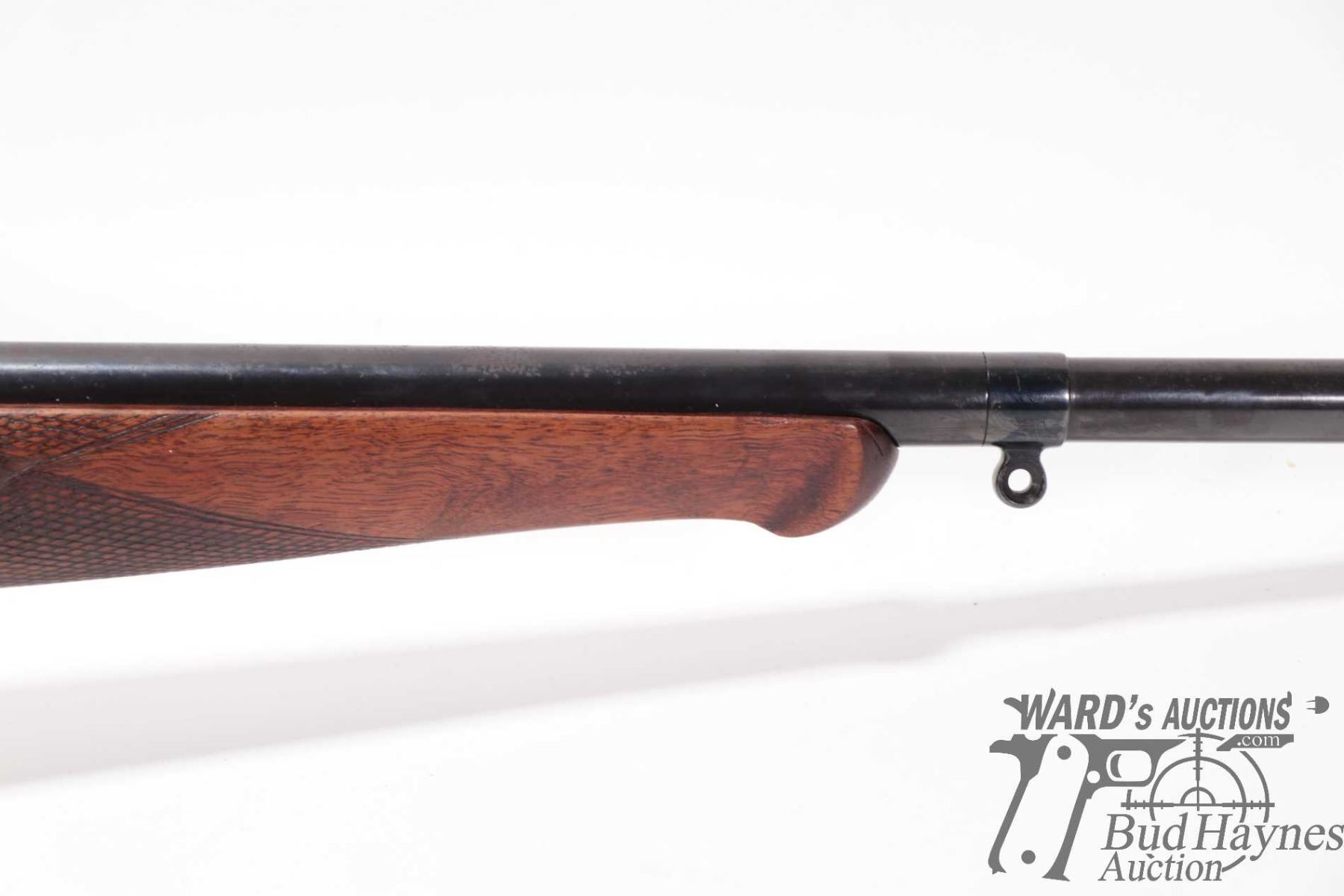 Non-Restricted rifle Mauser model Gwehr 88, 8.57 Mauser bolt action, w/ bbl length 24" [Blued barrel and receiver. Fixed front and two position rear flip up sight. Internal magazine. Sporter style hardwood stock with plastic butt plate. Checkered grips. Matching serial number on barrel, receiver and bolt. Other markings include "MADE IN BELGIUM", "A. J DeFOURNEY" on top of barrel, "8X57MP PV B. BLINDEE" plus assorted proof marks on left side of barrel etc. Case hardened bolt with butter knife bolt handle. Circa early 1900's and presumably sporterized by French gunsmith A.J. Defourney. Mechanically appears near excellent and likely had little use since restoration with only minor use, handling and storage marks.] serial # 18307, PAL required