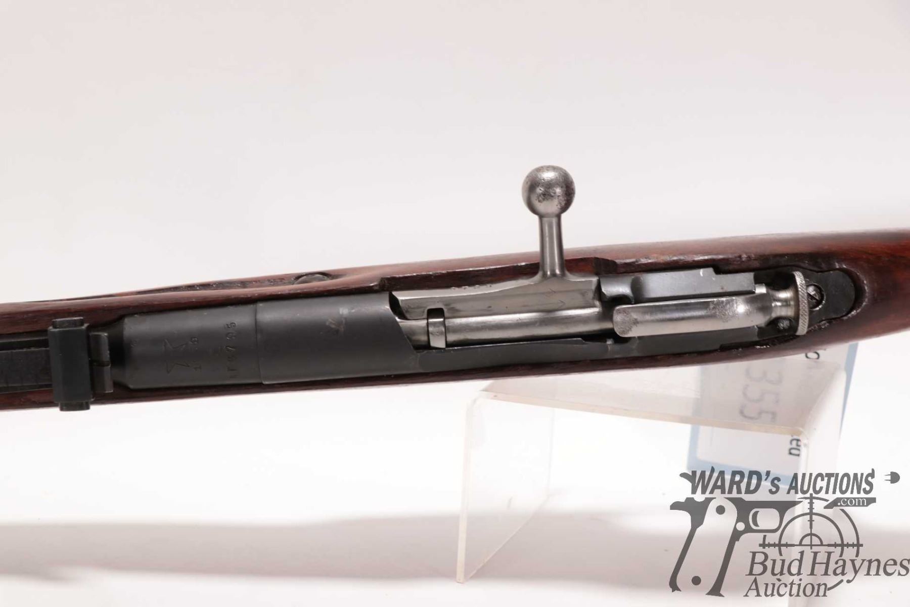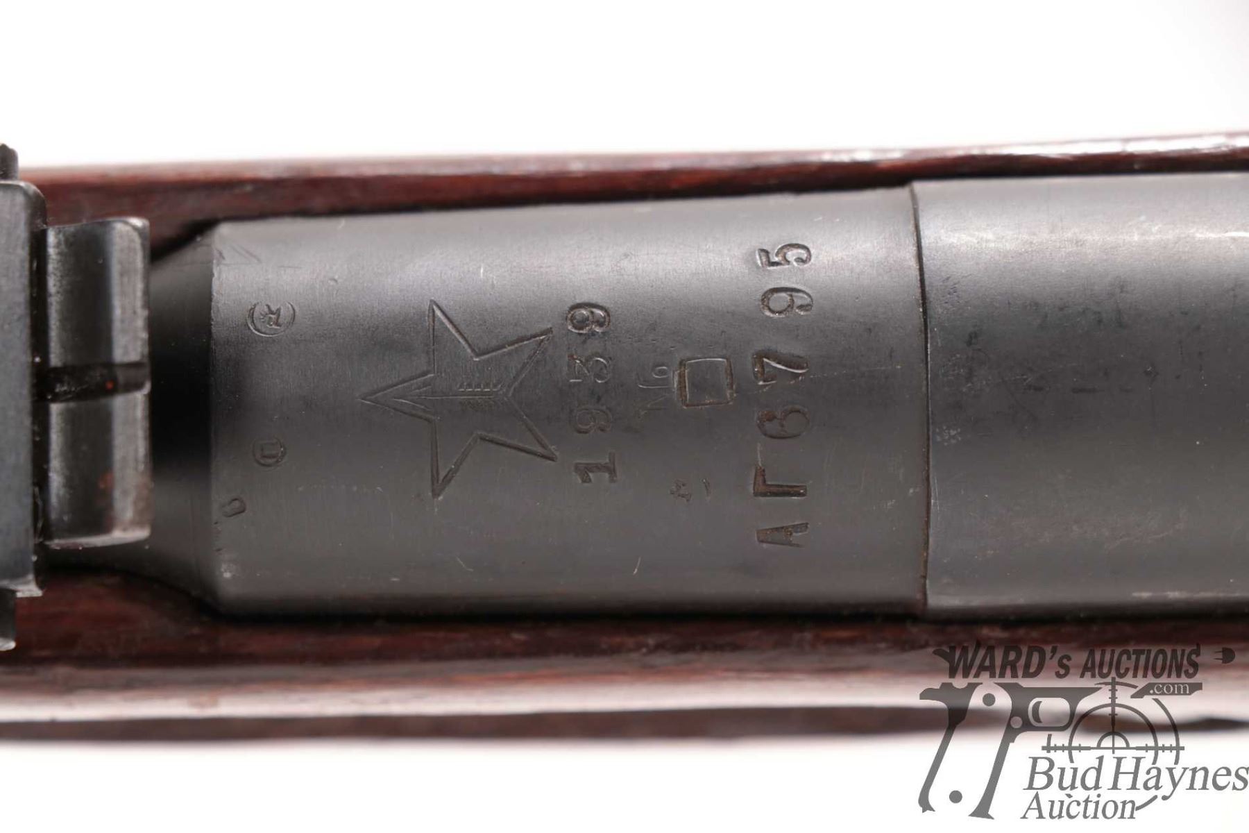 Non-Restricted rifle Mosin-Nagant (Tula) model M91/30, 7.62X54r bolt action, w/ bbl length 29" [Blued barrel and receiver. Hooded fixed front sight and adjustable rear sight. Internal box magazine. Full wood stock with metal butt plate. Mechanically appears to function reasonably well. Matching serial number on receiver, bolt, butt plate and mag base. Other markings including Tula Star and 1939 date stamp. Bluing worn in use and handling areas plus other use, handling and storage marks.] serial # 5795, PAL required