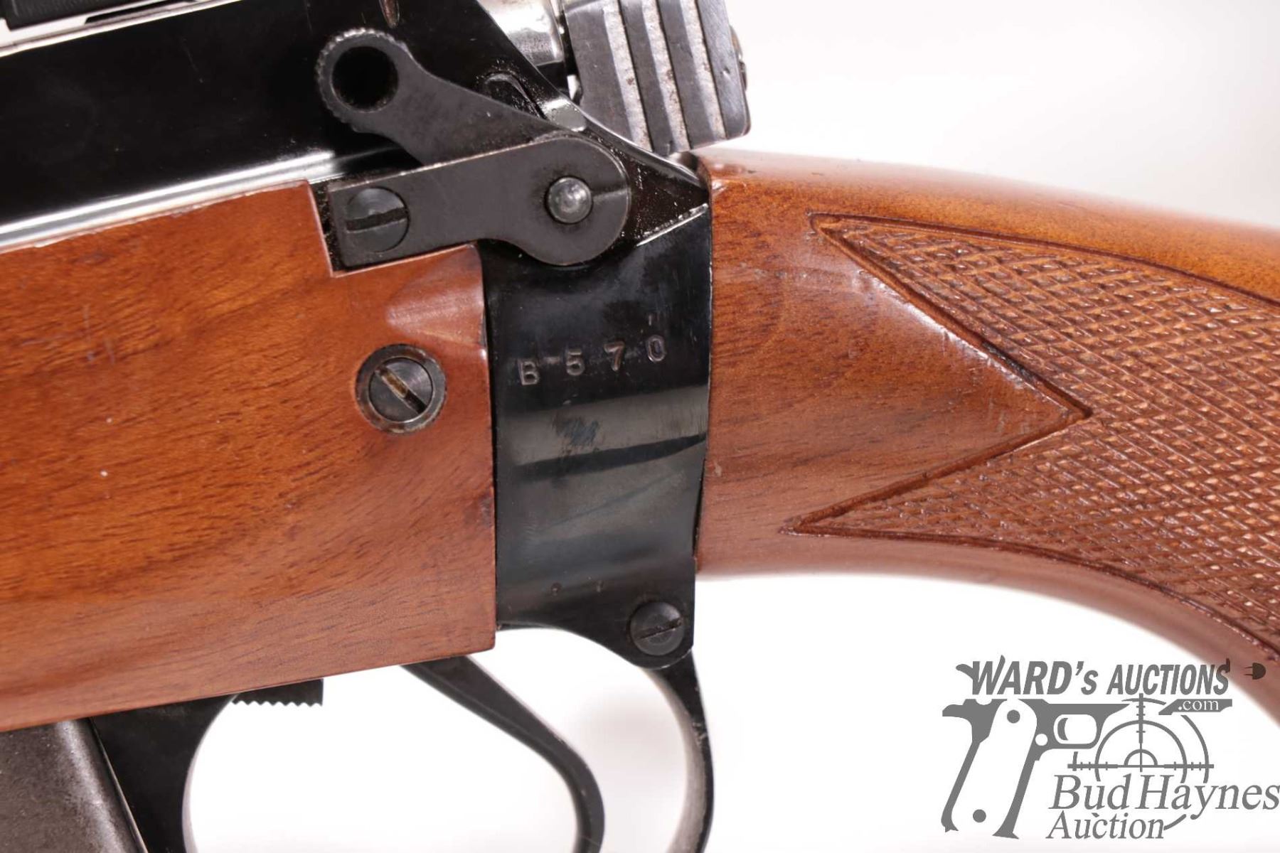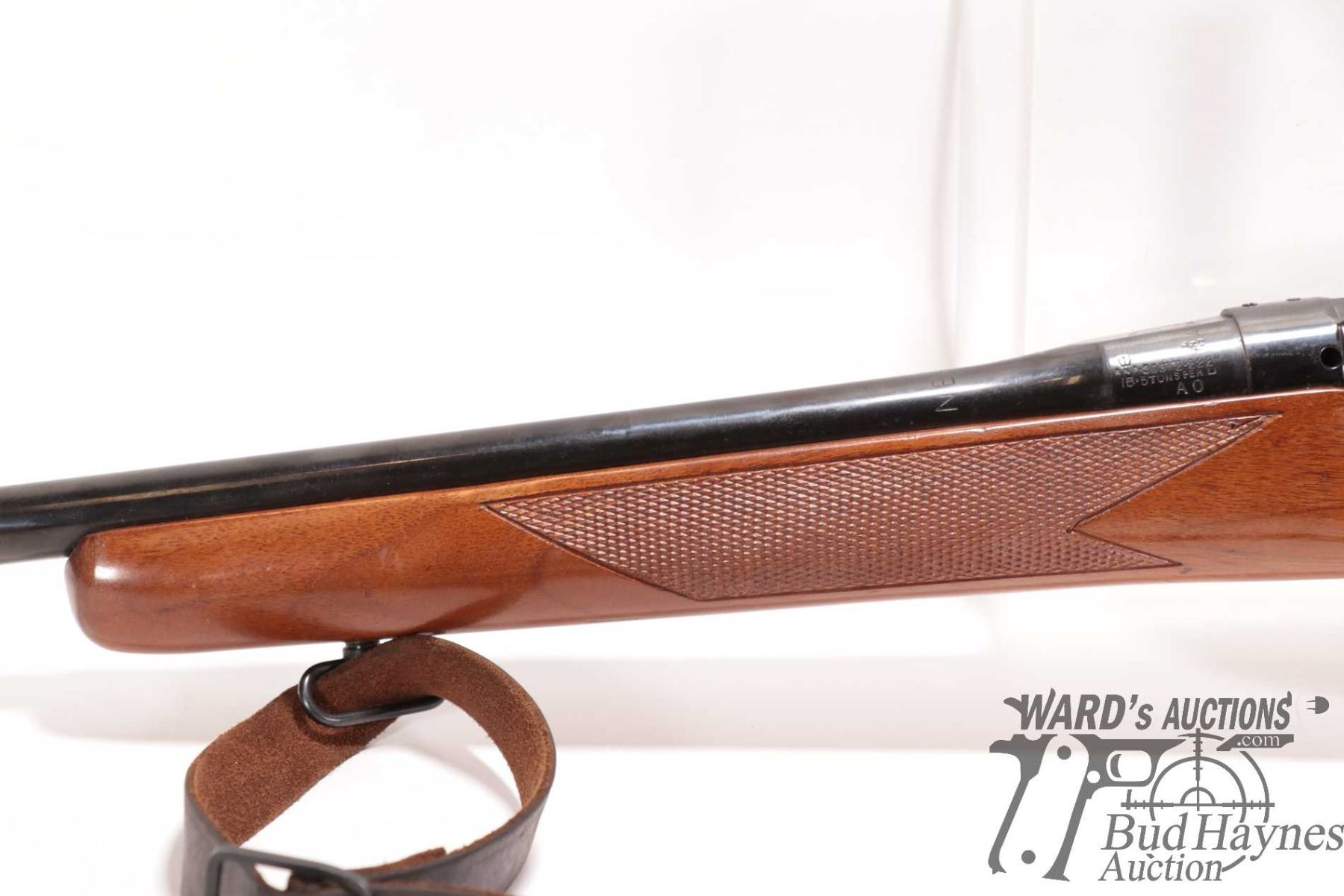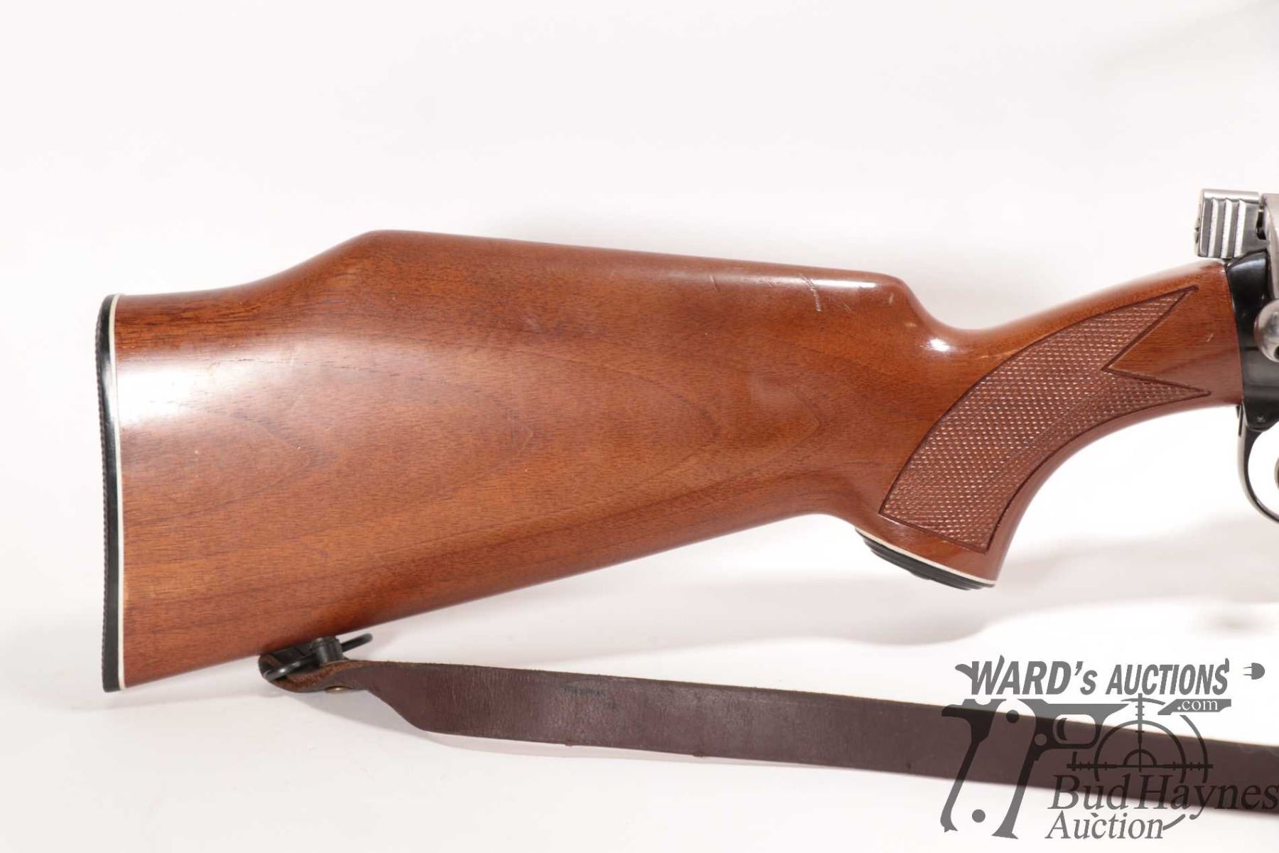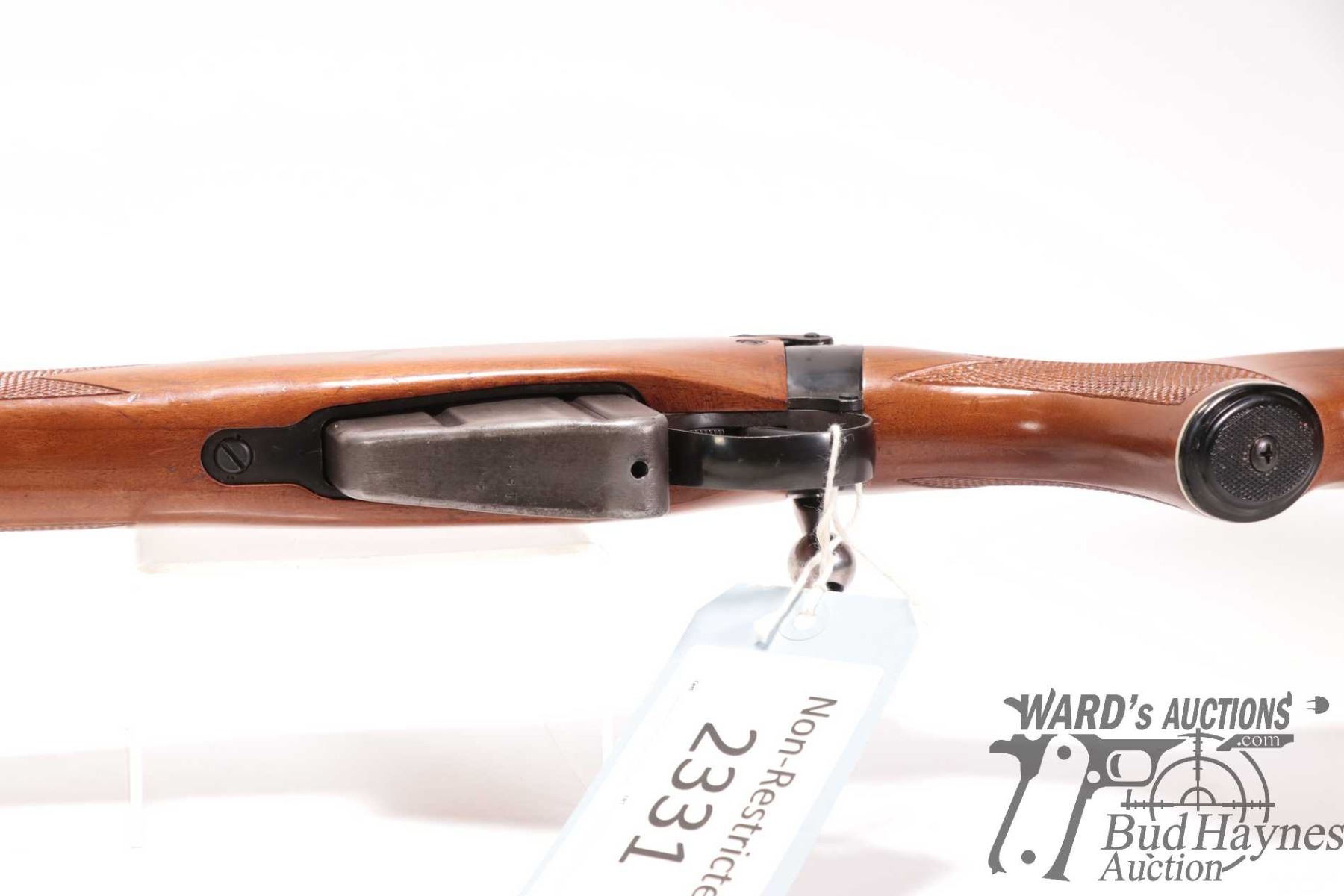 Non-Restricted rifle Parker Hale/ Enfield model No. 4, .303 British Ten shot bolt action, w/ bbl length 21 1/2" [Blued barrel and receiver. Fixed front and adjustable sights. Includes one detachable box magazine and leather sling. Sporter style stock with Parker Hale branded butt plate. Matching serial number on receiver and bolt. Top of barrel marked "MADE IN ENGLAND, PARKER HALE". Mechanically appears near excellent, likely had little use. Overall only minor use, handling and storage marks.] serial # B570, PAL required