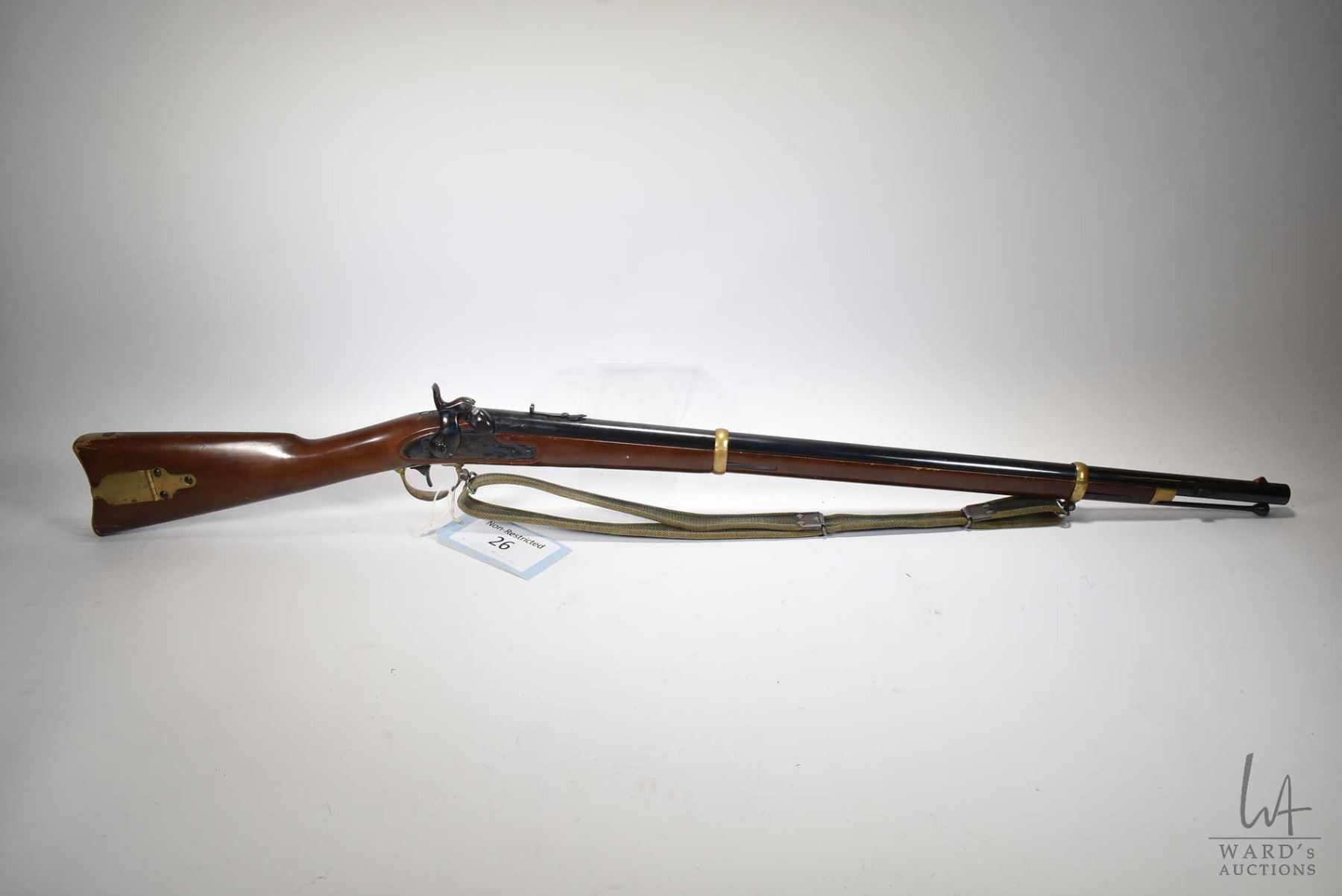 Non-Restricted rifle Ranson model 1863, .58 Percussion single Muzzle loader, w/ bbl length 32" [Blued barrel with case hardened lock. Fixed front sight, adjustable rear sight. Smooth wooden stock with two brass bands and brass butt plate. Rear sight has been replaced. Includes webbed sling with use, handling and storage marks on wood and metal.] serial # 1132, PAL required