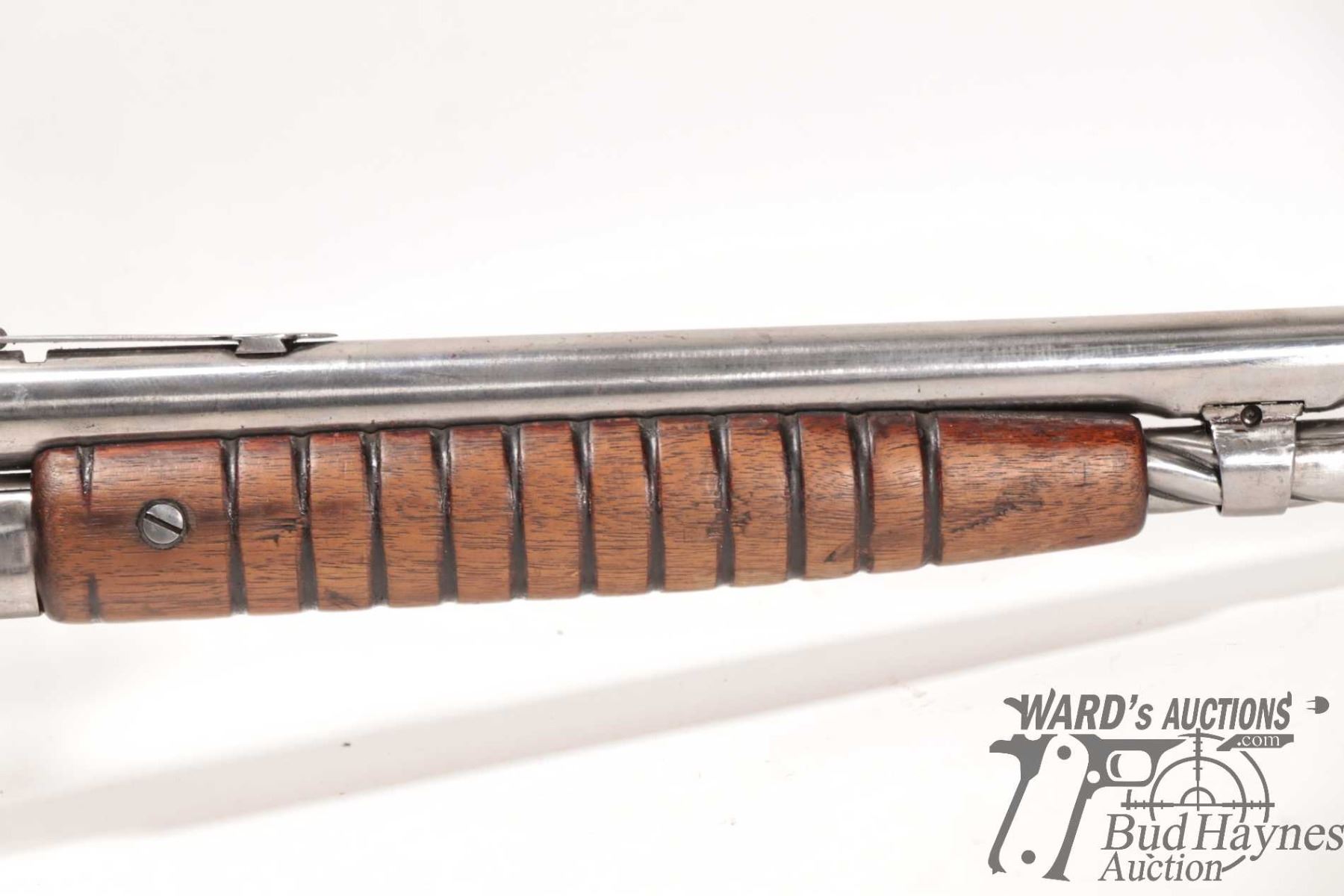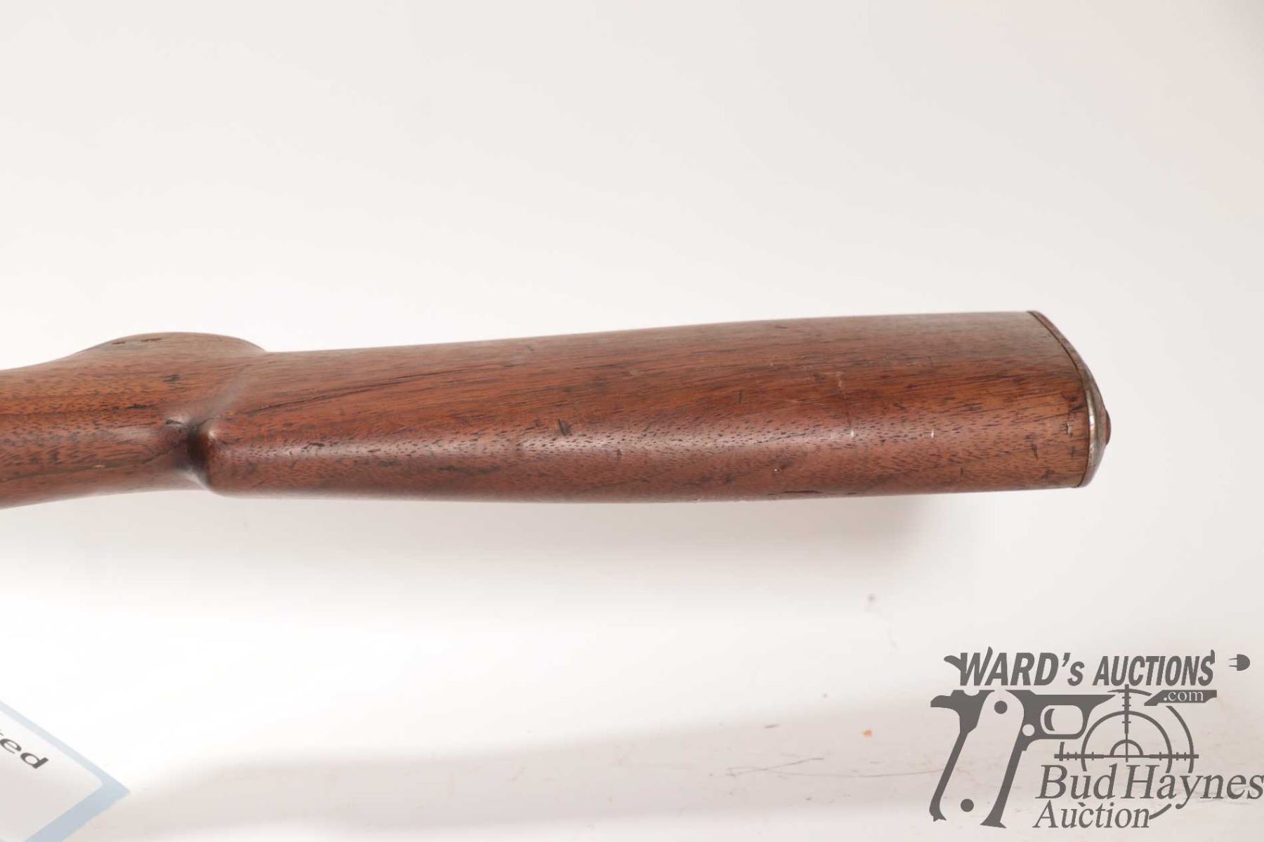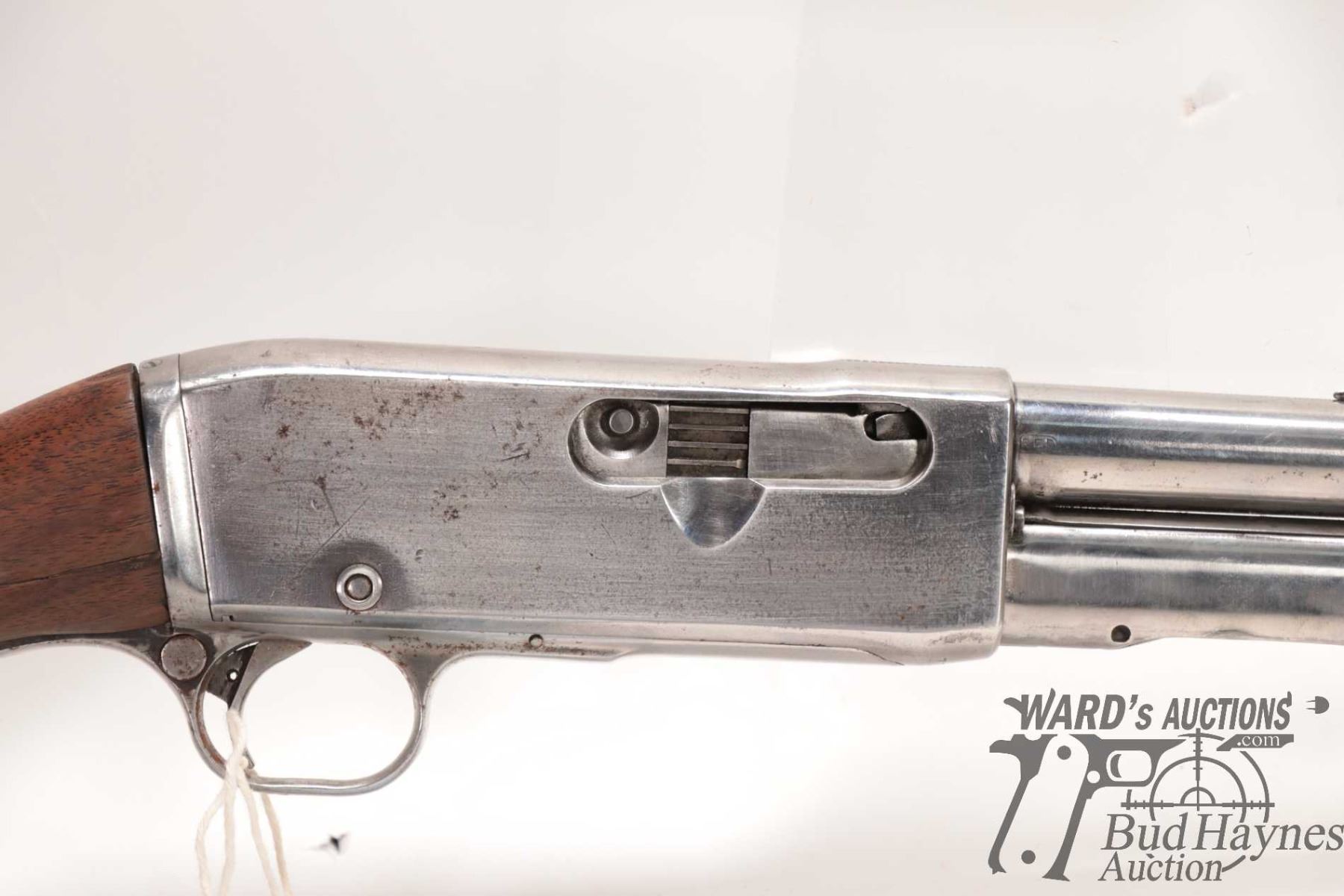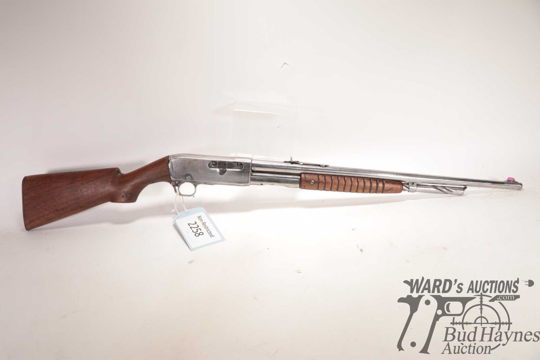 Non-Restricted rifle Remington model 14A, 35 Rem pump action, w/ bbl length 22" [Bluing stripped off barrel and receiver. Fixed front and adjustable rear sights. Tubular magazine. Smooth wooden stock with metal butt plate. Mechanically appears to function reasonably well. Mechanical polishing of metal has reduced definition on stampings. Some surface rust and pitting. Large repaired crack on stock and other use, handling and storage marks.] serial # C77482, PAL required