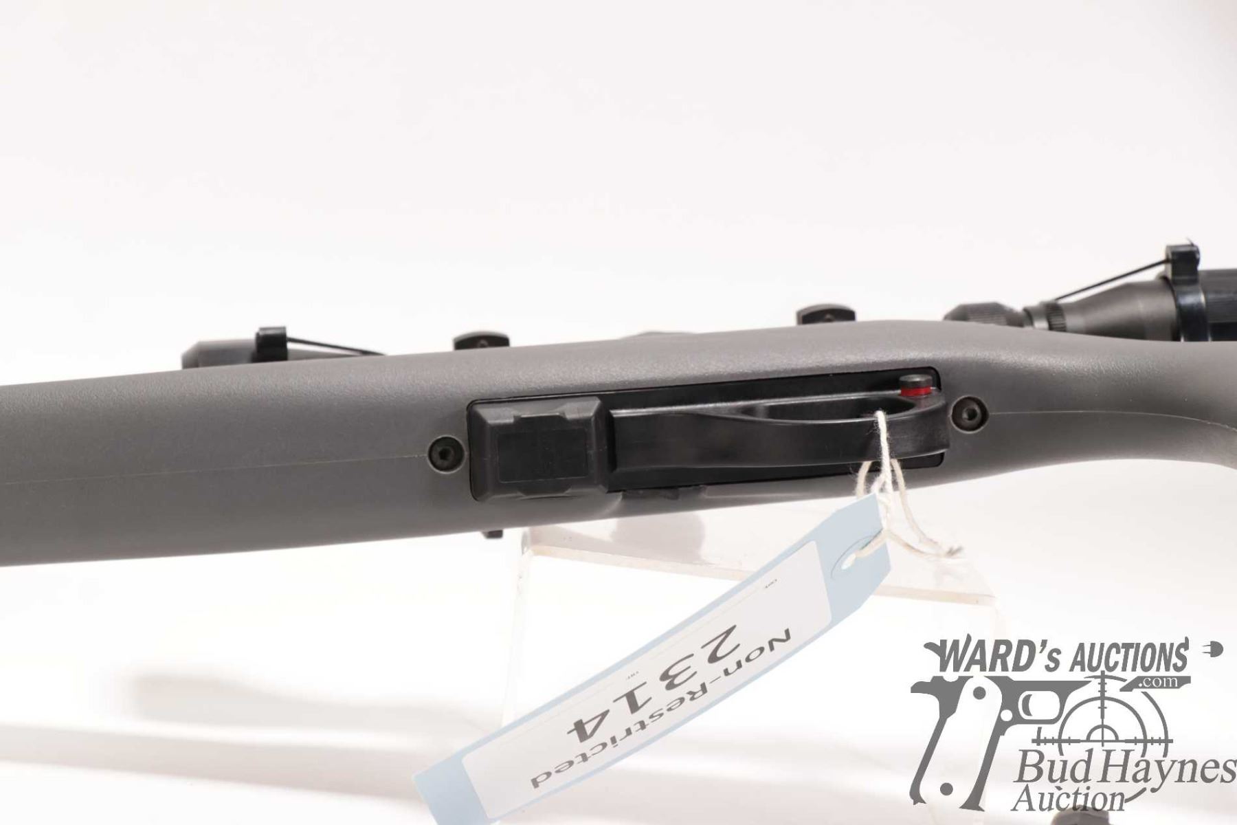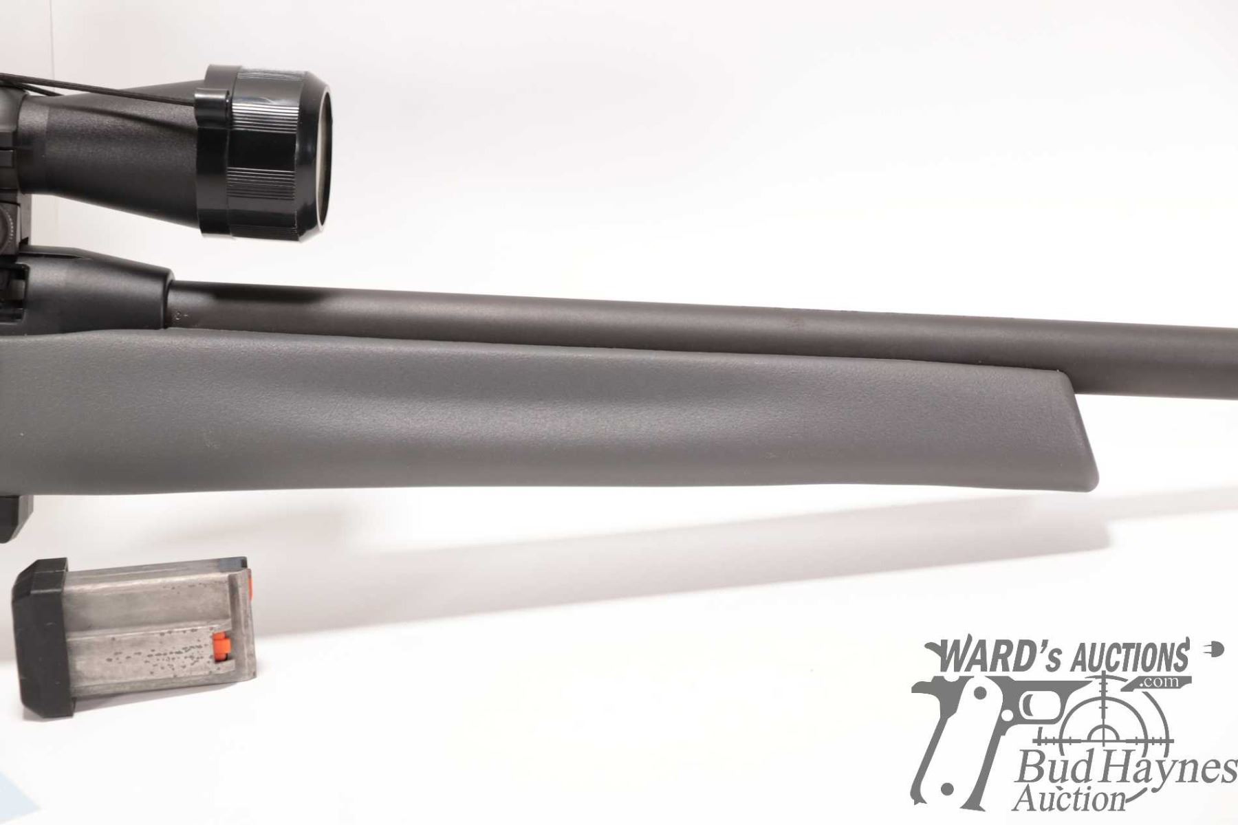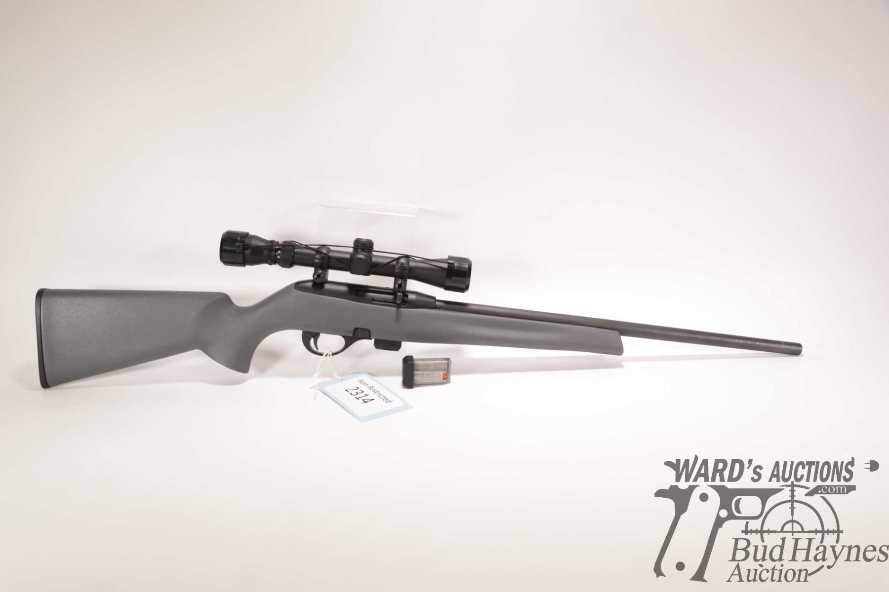 Non-Restricted rifle Remington model 597, .22 LR semi automatic, w/ bbl length 20" [Satin black finish on barrel and alloy receiver. No fixed sights. Fitted with Remington branded 3-9X32 scope. Includes two detachable box magazines. Grey synthetic stock with plastic butt plate. Mechanically and aesthetically appear near excellent with only minor use, handling and storage marks.] serial # D2919750, PAL required