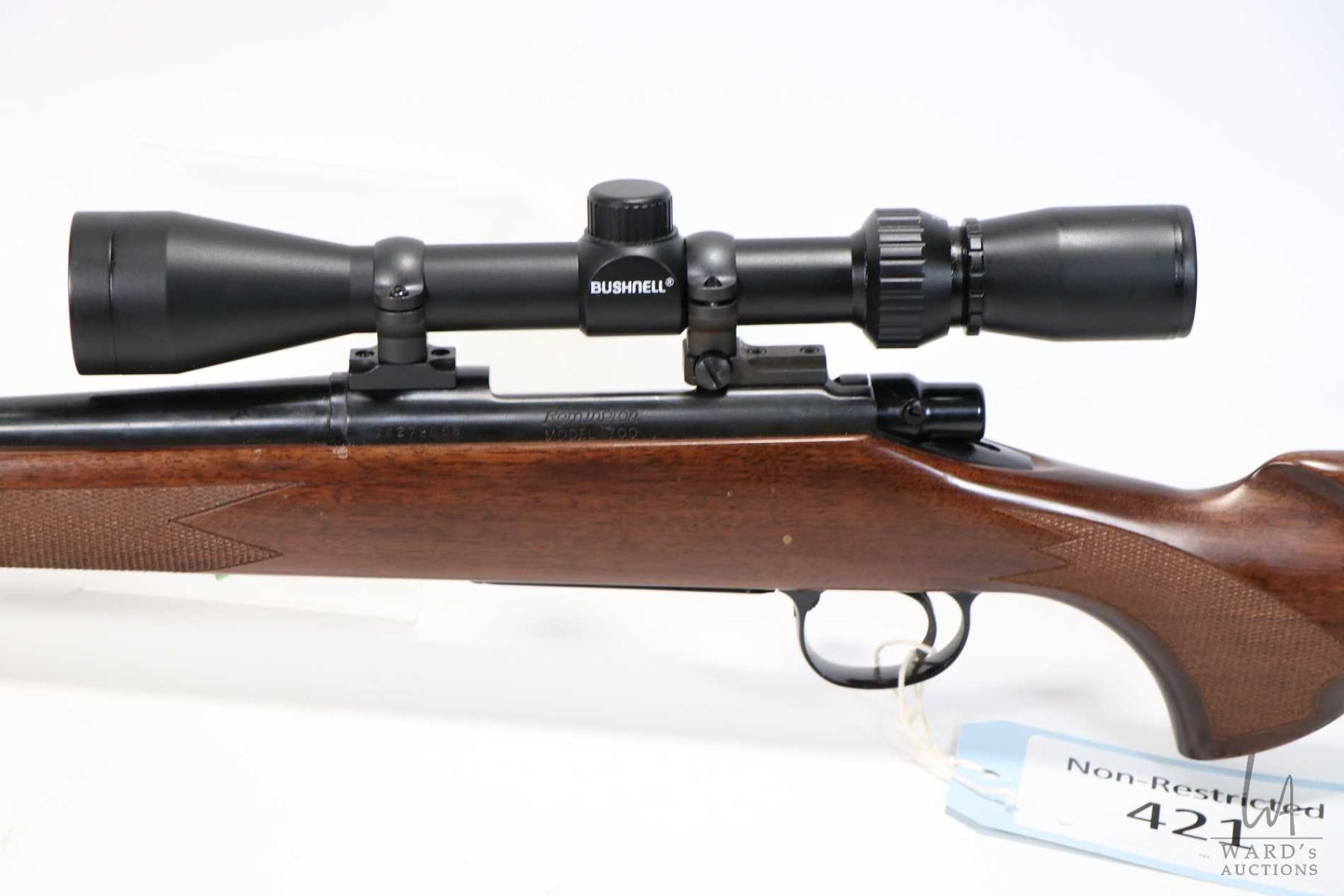 Non-Restricted rifle Remington model 700, .22 Rem fireball bolt action, w/ bbl length 24" [Blued barrel and receiver. No fixed sights. Fitted with Bushnell 3X9X40 scope. Walnut stock with checkered semi pistol and foregrip. Thin branded recoil pad. Action and trigger feel very smooth and appears to have had only light use. Minor use, handling and storage marks to wood and metal.] serial # G6279058, PAL required