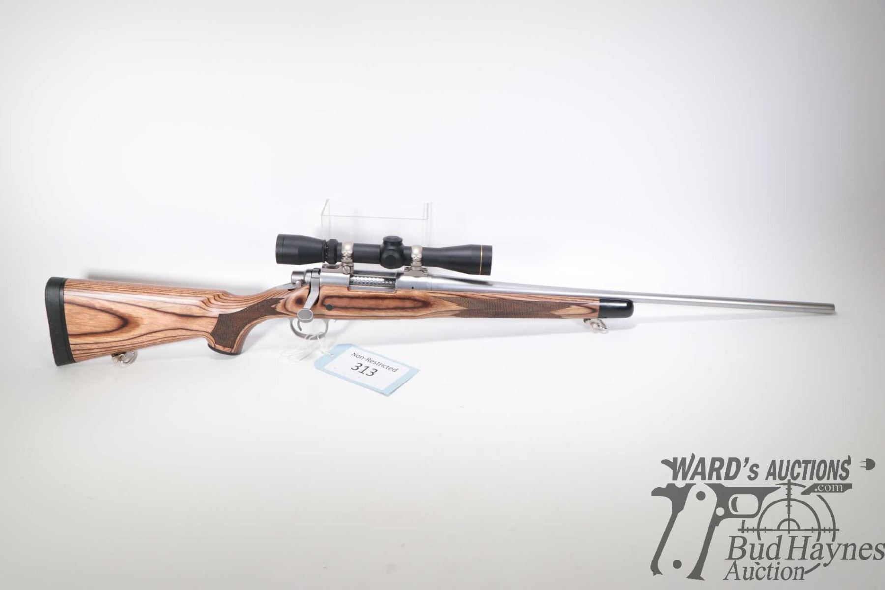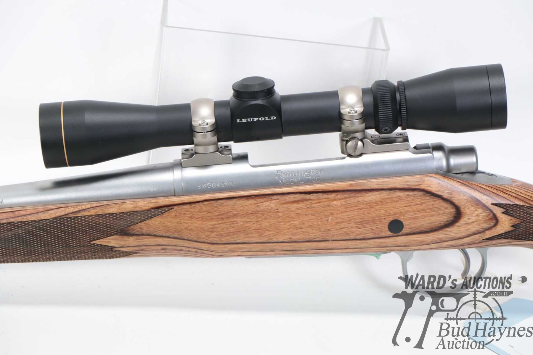 Non-Restricted rifle Remington model 700, 7mm-08 REM bolt action, w/ bbl length 22" [Satin stainless barrel and receiver. No fixed sights. Fitted with Leupold VX-I 2-7X 33 scope, serial no. 336751V. Laminated stock with branded recoil pad. Fitted with stainless sling rings. Mechanically appears excellent and likely had very little use with only minor use, handling and storage marks.] serial # S6584601, PAL required. Descriptions subject to change.