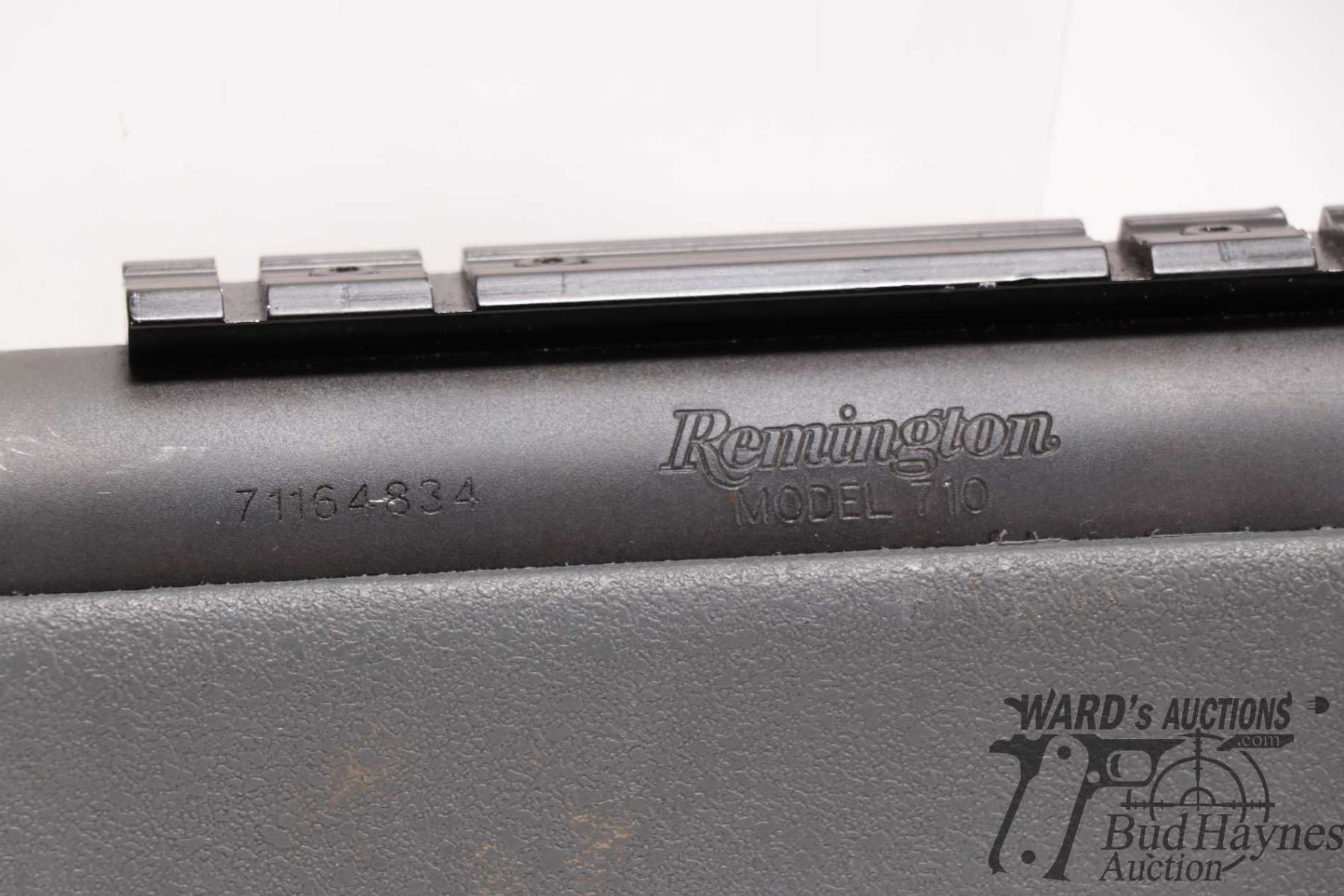 Non-Restricted rifle Remington model 710, .300 Win Mag bolt action, w/ bbl length 24" [Parkerized style finish on barrel and receiver. No fixed sights. Fitted with scope base. Includes one detachable box magazine. Grey synthetic stock with branded recoil pad. Mechanically appears near excellent with use, handling and storage marks on stock and barrel.] serial # 71164834, PAL required