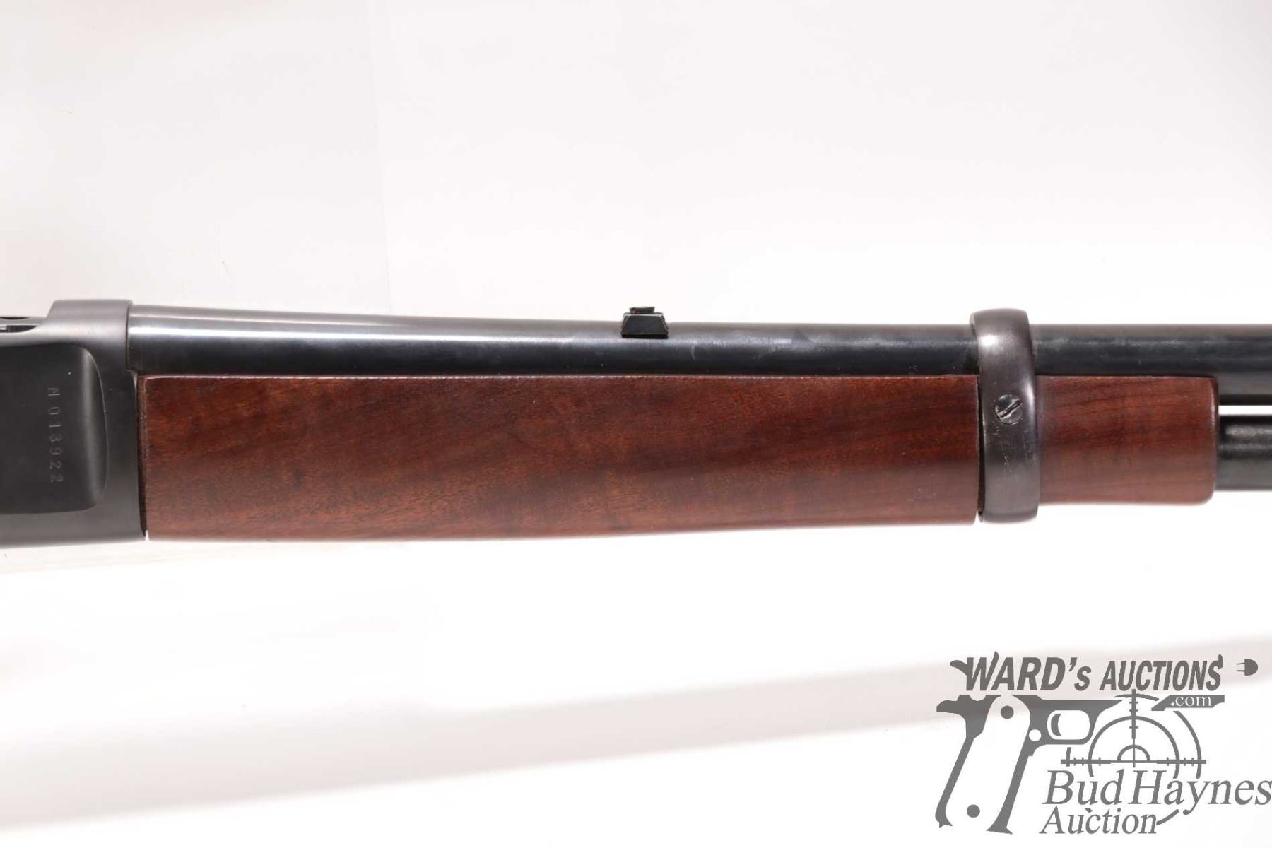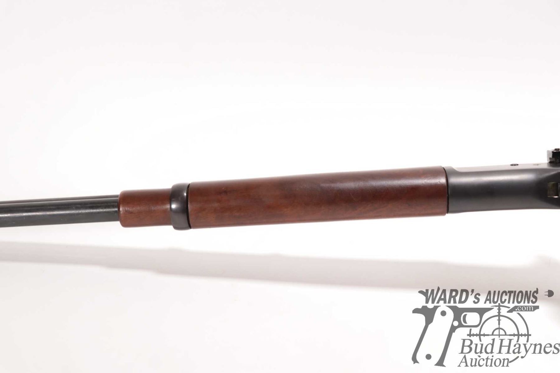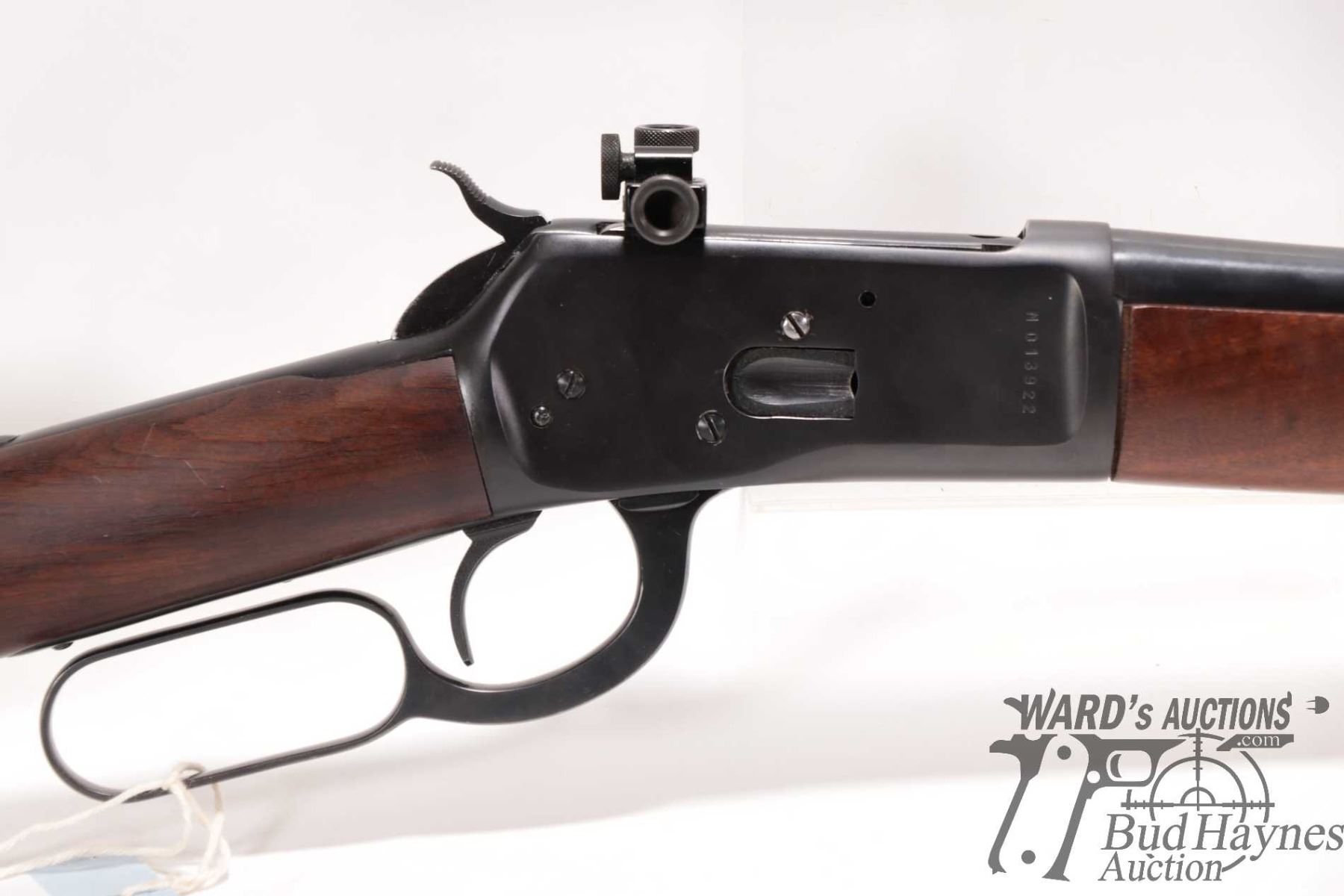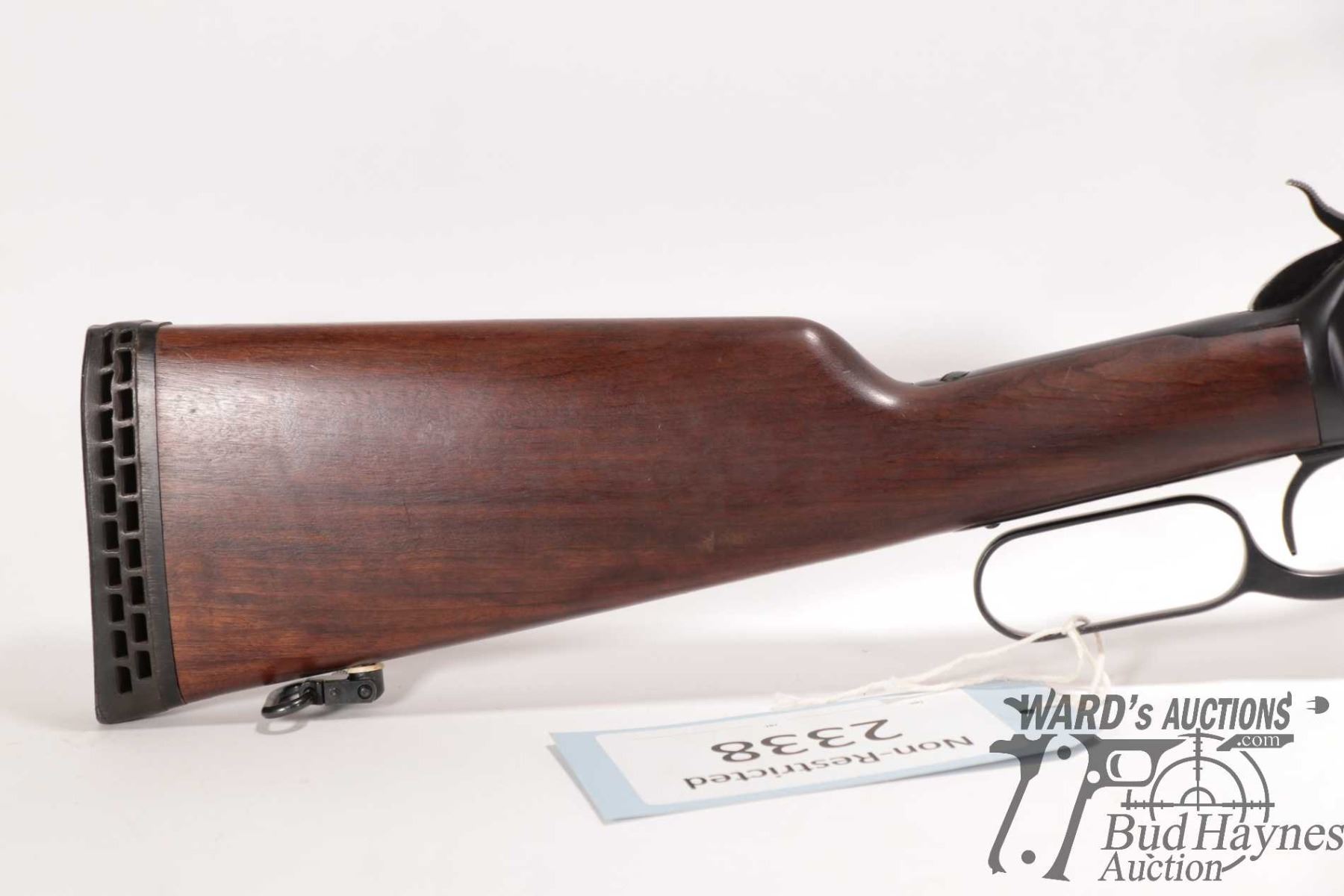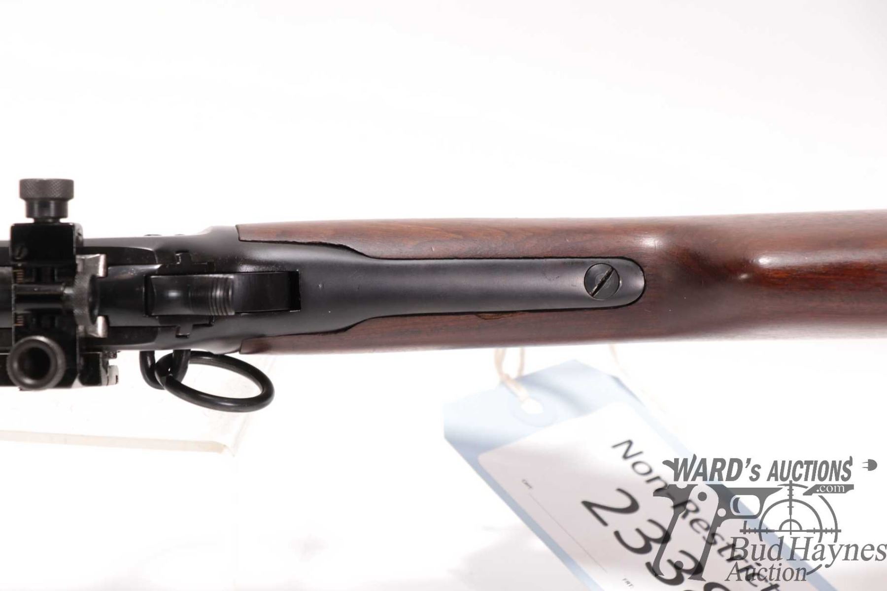 Non-Restricted rifle Rossi 44 Magnum lever action, w/ bbl length 20" [Blued barrel, receiver and full length tube. Fixed front sight. Original rear sight removed and fitted with adjustable peep sight. Smooth wooden stock with Uncle Mike's branded recoil pad. Fitted with sling mounts attached to stock and magazine tube. Mechanically appears to function reasonably well. Bluing worn in use and handling areas plus tooling marks on screws etc. plus other use, handling and storage marks.] serial # M013922, PAL required