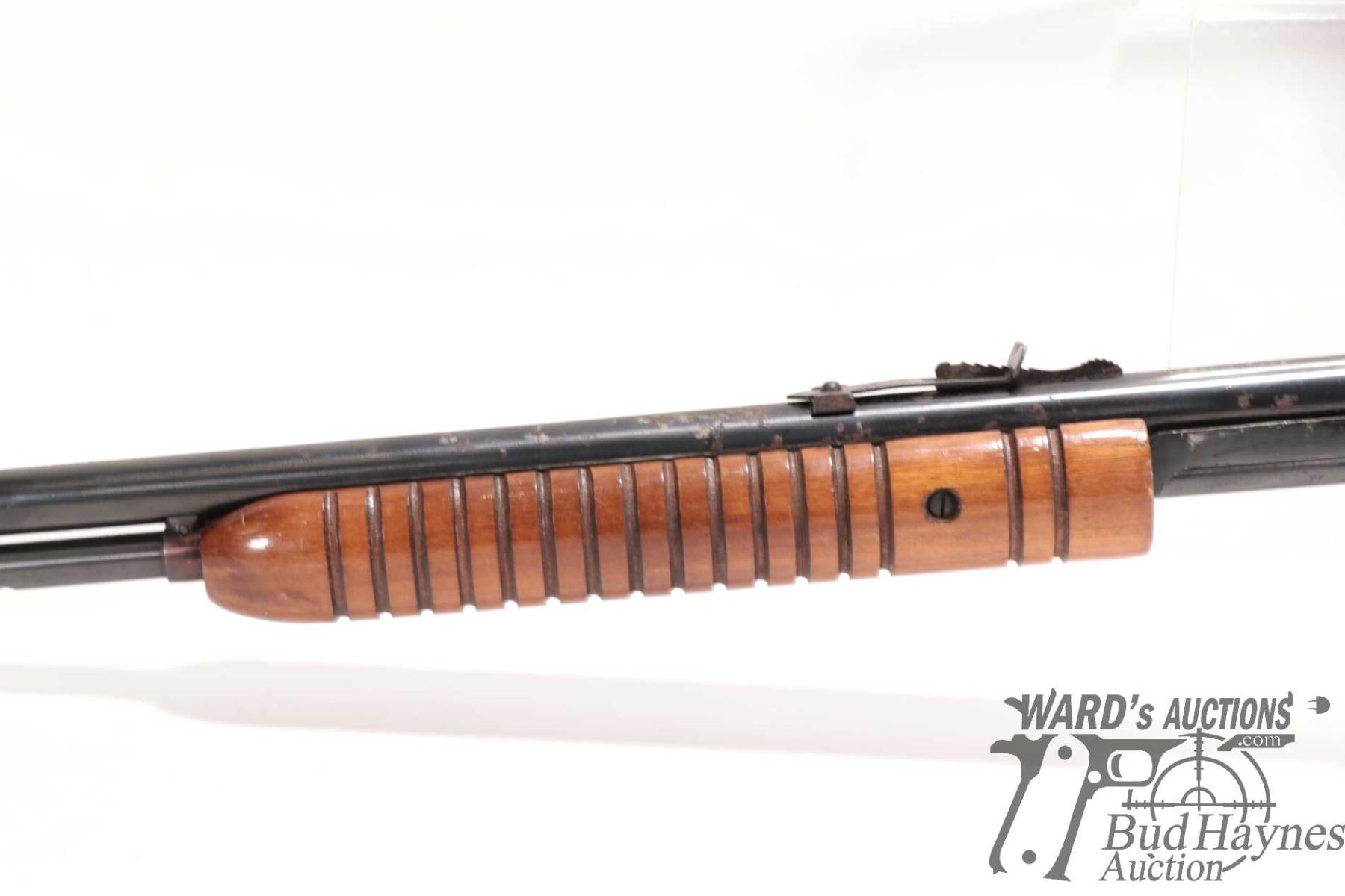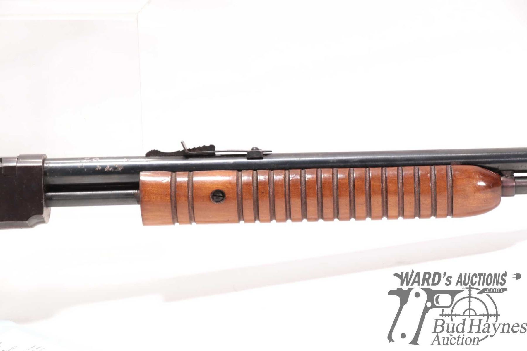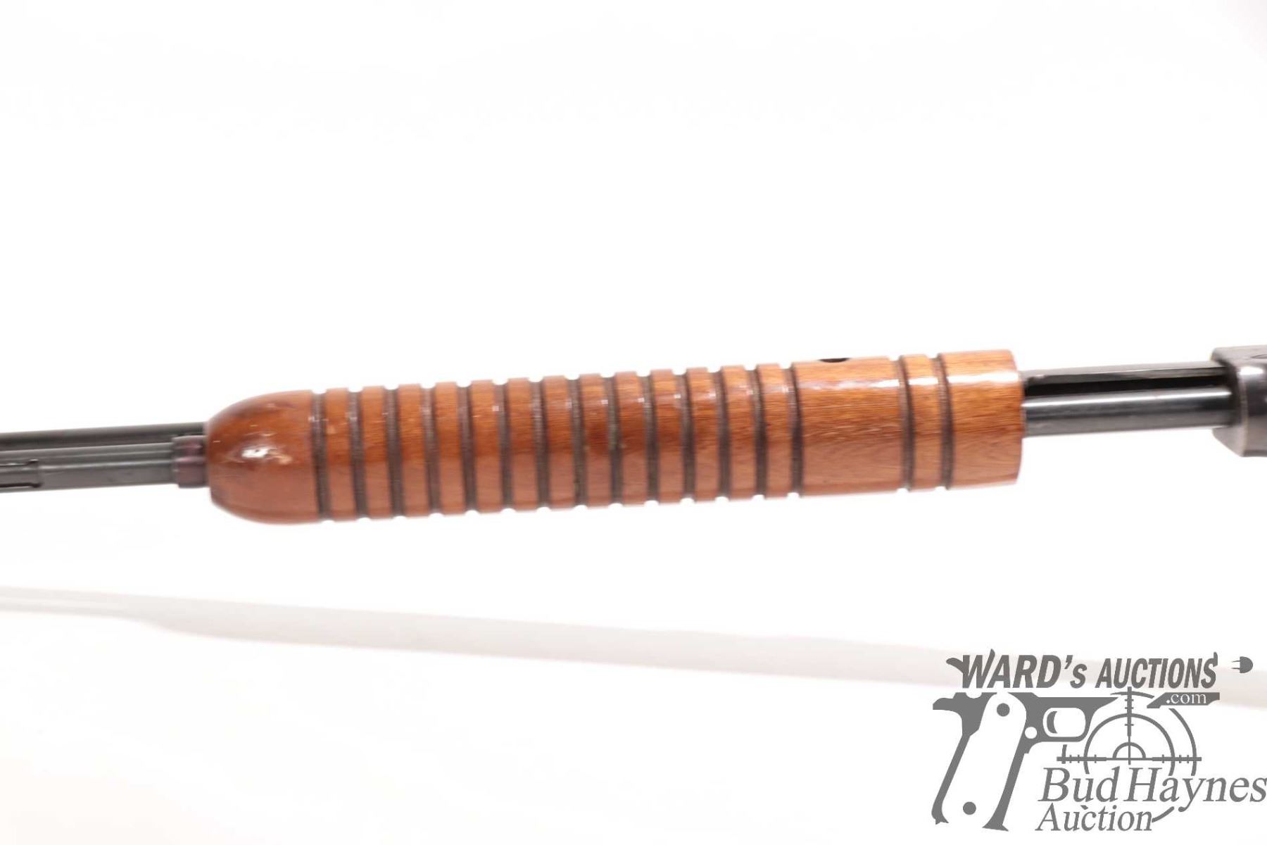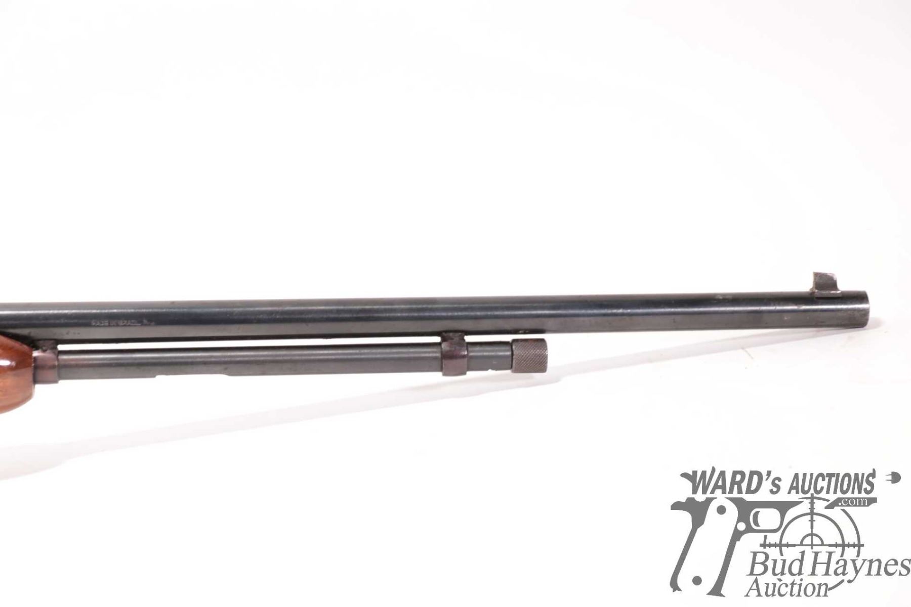 Non-Restricted rifle Rossi model Trombone, 22 S, L & LR pump action, w/ bbl length 23" [Blued barrel and receiver. Fixed front and adjustable rear sights. Tubular magazine. Smooth wooden stock with branded plastic butt plate. Mechanically appears to function well. Bluing worn in use and handling areas and some areas of heavy rust plus other use, handling and storage marks.] serial # G268559, PAL required
