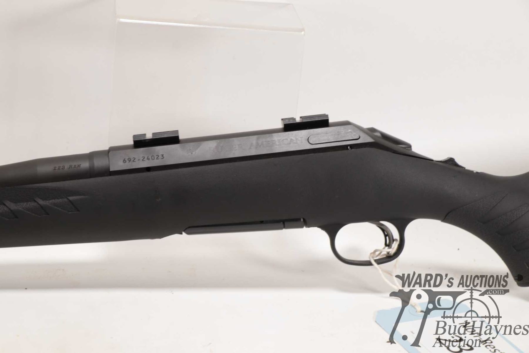 Non-Restricted rifle Ruger model American, .223 Rem bolt action, w/ bbl length 22" [Parkerized style finish on barrel and receiver. No fixed sights. Fitted with scope bases. Includes one detachable box magazine. Black polymer stock with recoil pad. Rear sling mount missing. Mechanically and aesthetically appear near excellent with only minor use, handling and storage marks.] serial # 69224023, PAL required